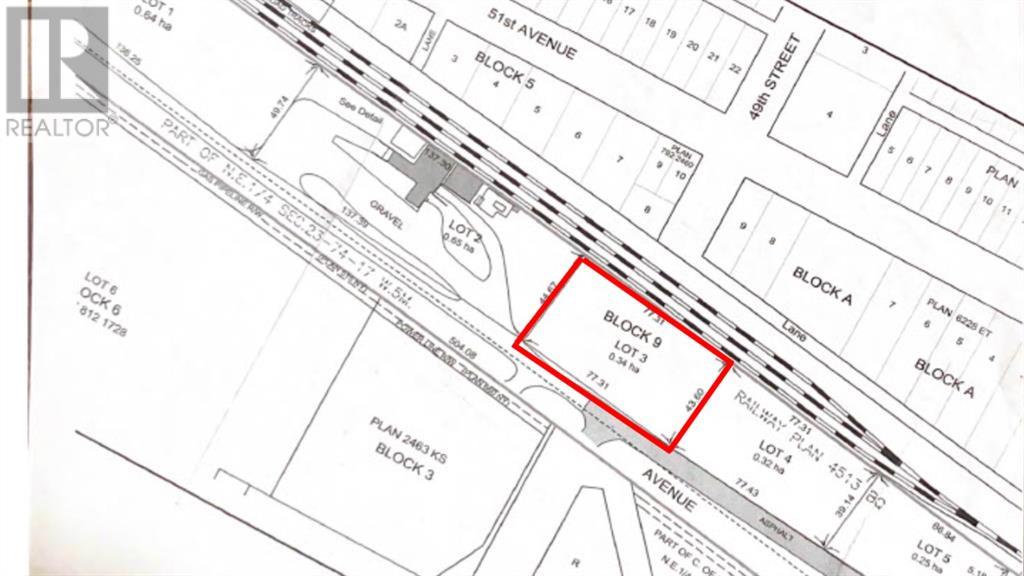 0.84 Acre lot located along the railroad on 50th Avenue in High Prairie. Zoned as Industrial. Call, text, or email today to book your tour! (id:63190)