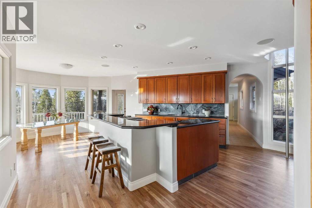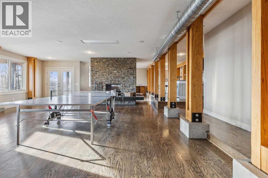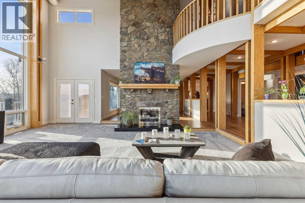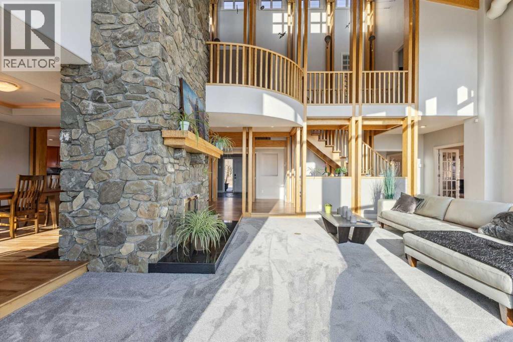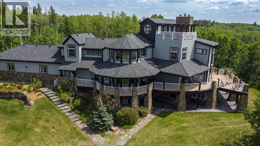 Welcome to the epitome of spacious comfort on this expansive equestrian estate west of Millarville, where lavish luxury living and breathtaking mountain vistas harmoniously blend with a turnkey paradise for the discerning horse aficionado. Set on a remarkable 147.07 acres, this extraordinary estate offers an unparalleled lifestyle. The custom home, spanning 5,521.06 square feet, is a testament to fine craftsmanship and attention to detail. Step inside to discover cathedral ceilings that create an airy and grand atmosphere while the elegant American Cherry hardwood floors add warmth and richness to the living spaces. The spacious kitchen with dine-in island is bathed in natural light, allowing family meals to be enjoyed while taking in the luscious landscapes. A spacious primary suite offers peace and solitude while in floor heating warms the ensuite and runs thoughout the main level. Four fireplaces throughout the home create cozy gathering spots for friends and family. Immerse yourself in the wonders of the night sky with a private rooftop observatory where you can bask fireside in the splendor of a mountain view sunset or simply marvel at the celestial beauty above. Catch the game at your very own sports bar or get into game shape in an exercise room and sports court, there are endless entertainment options for guests. For the horse enthusiast this property provides the ultimate playground. Imagine having your horses right at your back door, with horse stalls available in an indoor heated riding arena set against the backdrop of the Canadian Rockies. The turnkey nature of the equestrian facilities allows for a seamless transition into the equestrian lifestyle. For the hobbyist or craftsman, the inclusion of two heated workshops provides ample space for pursuing your passions and honing your skills. Allow serene moments to wash over you in the shadow of the mountains while relaxing at the water’s edge where your guests can appreciate the quiet of a perso nal cottage. Located minutes from Kananaskis Country, the world famous Spruce Meadows, Bragg Creek & Calgary are a mere 30 minute drive, whie the mountains are a quick 60 min trip, allowing for easy access to city amenities from the comfort of the tranquility of the country. Fall in love with the unparalleled beauty of the mountainscapes that surround this property from the wrap around covered deck. Don’t compromise, with smart-home systems and Starlink internet connection throughout the house, arena and cottage, it is possible to enjoy modern living amongst rustic backdrops. Whether it's sipping a drink in the evening while taking in the majestic views or exploring the vast natural wonders nearby, this estate provides a remarkable setting for relaxation and rejuvenation. Don't miss the opportunity to own this equestrian haven, where every aspect of luxurious living and equestrian pursuits has been carefully considered. Embrace a lifestyle where horseback riding, stunning views, and loving memories await. (id:63190)