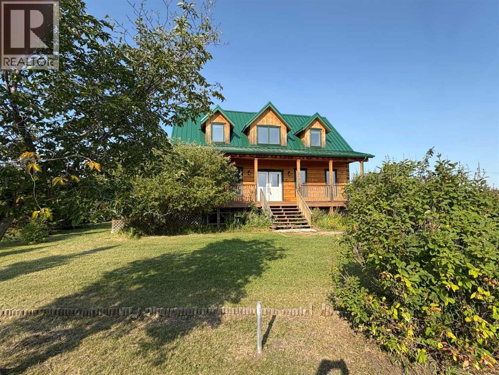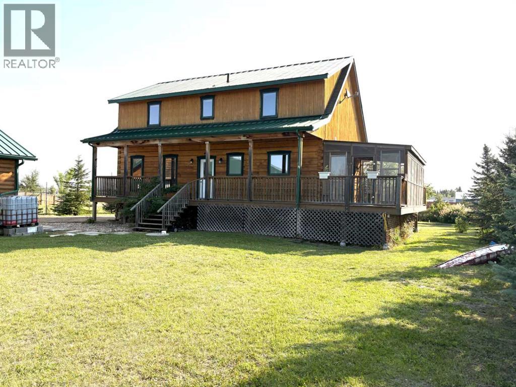 A beautiful log home, walking distance to sandy beaches of Buffalo Lake, serenity of country living, it doesn't get much better than this! This charming log home has the space for any size family, over 1800 sqft. on main and upper floor and a finished basement, you will be impressed the minute you walk in, the main floor features a large living room, cozy fireplace and exposed beams throughout, the spacious dining room is perfect for those family gatherings, with garden doors to covered screened in deck, you will love the kitchen, wood cabinetry, beautiful granite counter tops, gas stove, the island is the perfect place to be when preparing those holiday dinners, convenient 2pc bathroom and laundry area off back door, the upper floor has a spacious primary bedroom with another cozy fireplace, tv and walk-in closet, 5pc Jack and Jill ensuite/ main bath, 2 more good size bedrooms, finished basement has perfect area for games room, extra large family room could be converted into huge sleeping area for family & friends, mechanical room has more than enough storage space, ICF block foundation and in-floor heat will make this a warm and cozy basement, you will spend as much time outside as you do inside, sit on the covered front deck with your morning coffee and watch the sunrise, then watch the sunset on the back deck, the screened in deck has N. gas for bar-bq and N. gas firepit, the 28'x40' garage has all the room to park & store all your lake toys, the 16'x28' addition to the back of the garage was used as a greenhouse, a great place to start your plants for the 6 raised garden beds, all this sits on a large .46 acre lot, you will truly enjoy all four seasons in this picturesque location, Buffalo Lake is the largest lake in central AB. boating, fishing, paddle boarding in the warm months, skating, sledding, cross country ski, ice fishing in the winter months, what a beautiful place to create your family memories (id:63190)