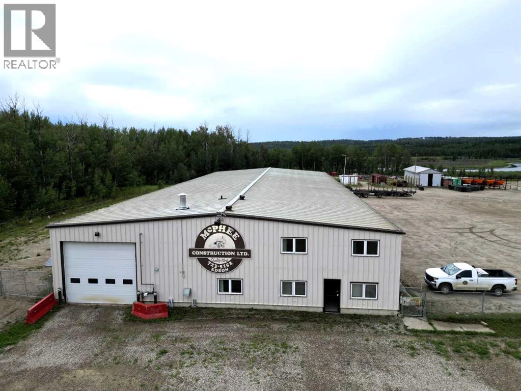 14,000+- sq/ft Commercial/Industrial Building on 26 acres located on the West side of the Town of Edson, 2 klms from Downtown with great exposure bordering Hwy 16 East. The property includes a 12,000 sq foot shop space consisting of 6 - 24x50 BAYS w/ 14ft doors, 16ft ceiling height at the doors and 19 in the center, plus an additional 19x168 drive through back bay. In addition to the shop, there are 4 offices, a front reception area, lunchroom, 3 bathrooms and a large open boardroom area on the 2nd level with a separate office and mezzanine area! This property is securely fenced with plenty of parking, power outlets along the back of the building, used oil containment available, overhead radiant heat and has a 26 acre well packed gravel yard space to accommodate heavy trucks and equipment. This property also houses a 1994 3-bedroom, 2-bathroom mobile home set up to accommodate surveillance for the maintenance, security and safety of the primary establishment. (id:63190)