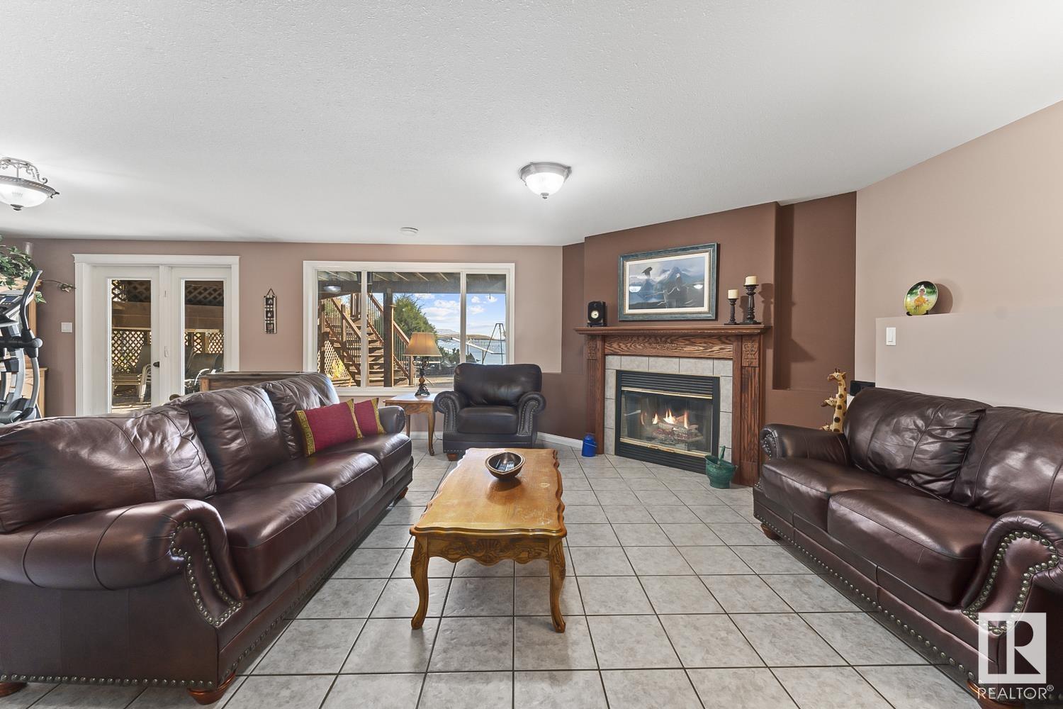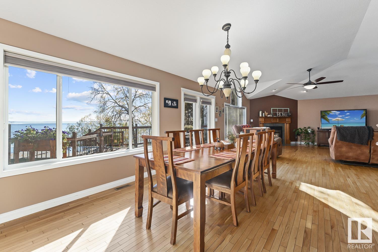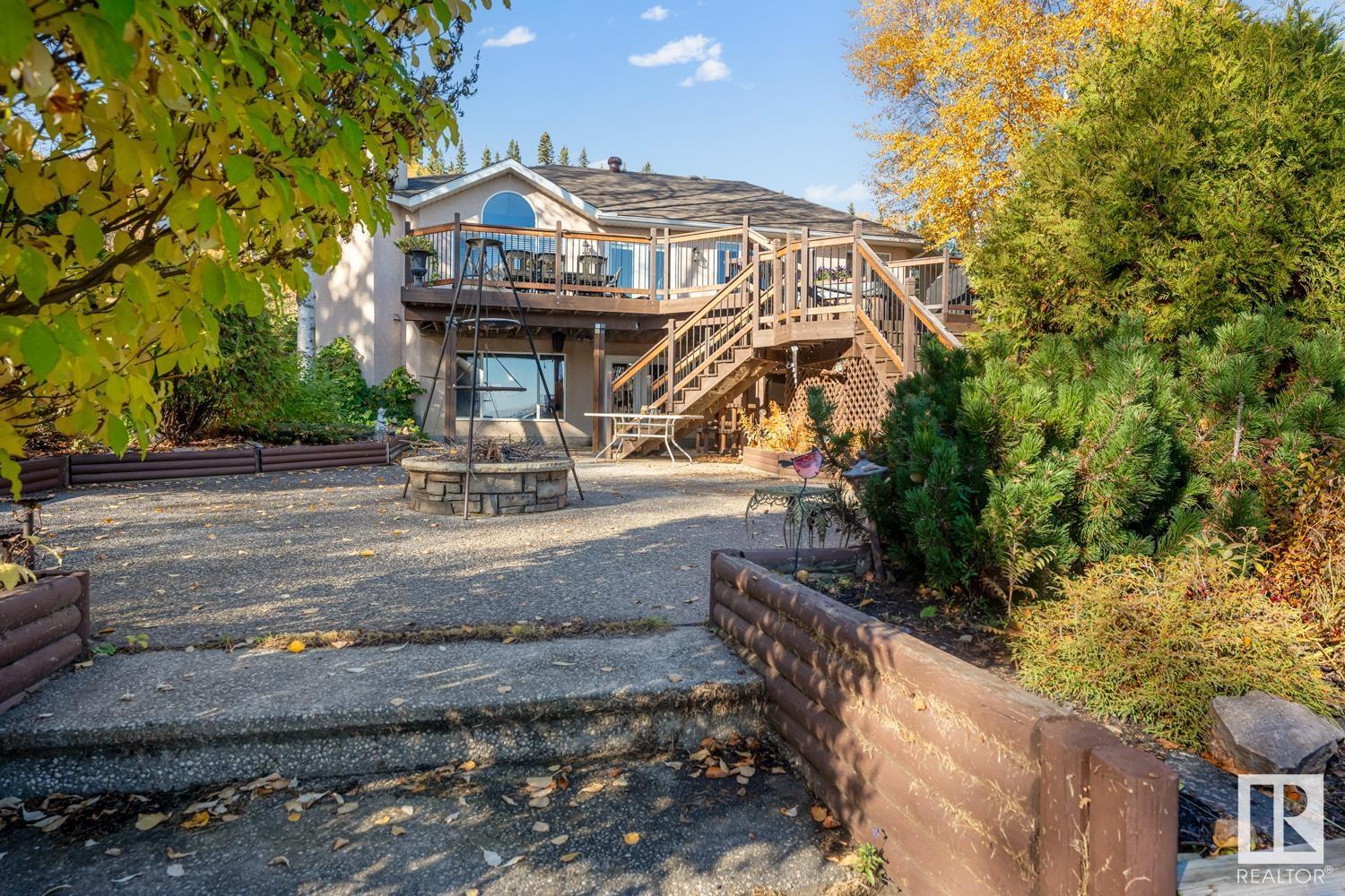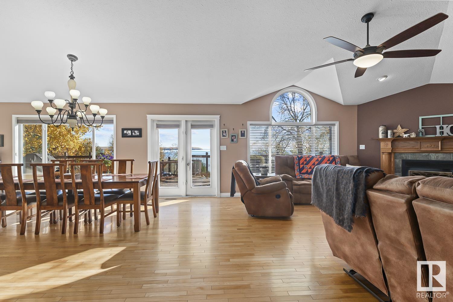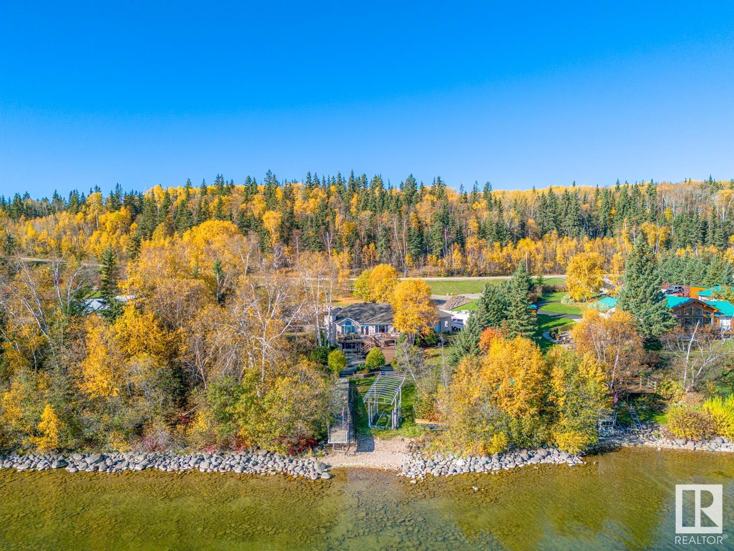Lakefront Paradise! This incredible property is a rare find, just 100 feet from the water! This bungalow features a convenient walk-out design and offers over 2,250 sqft on each level. The home is adorned with ceramic tile and hardwood flooring, complemented by in-floor. You'll find four spacious bedrooms, including a grand primary suite with an beautiful ensuite. Both the kitchen and dining areas are generously sized. Enjoy stunning lake views through the tall windows spanning the kitchen, dining, and living rooms. Step outside through the double doors to the expansive 28' x 38' deck, or down to the 38' x 50' aggregate concrete pad, which includes a fire pit and cozy sitting area. The heated garage features a workbench, full fridge, and plenty of storage for tools and accessories. Additionally, there's a charming 10' x 12' guest cabin and a separate quad shed with an overhead door. Your dream home awaits you on the shores of Cold Lake - where you will be met with peace, tranquility and privacy (id:63190)