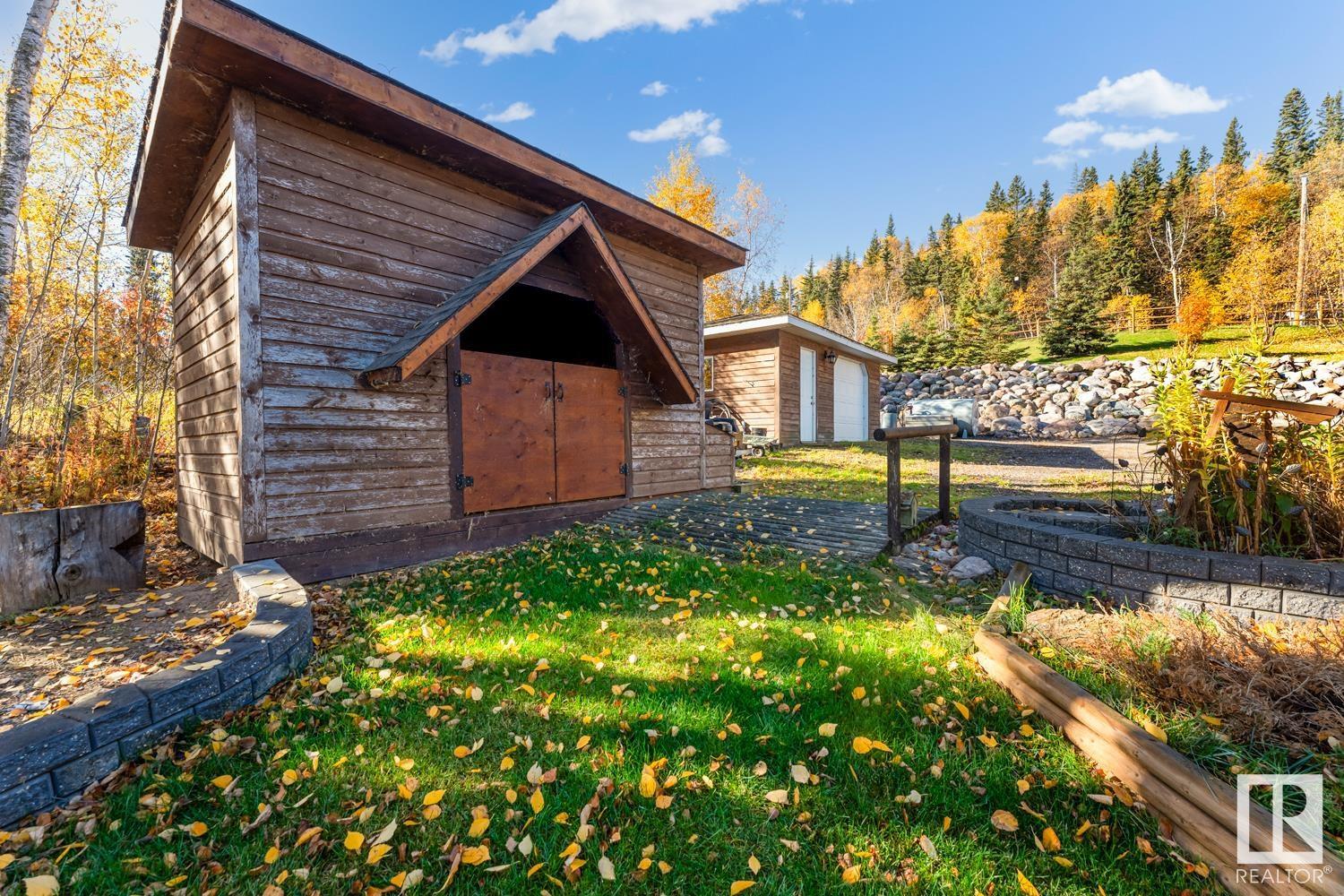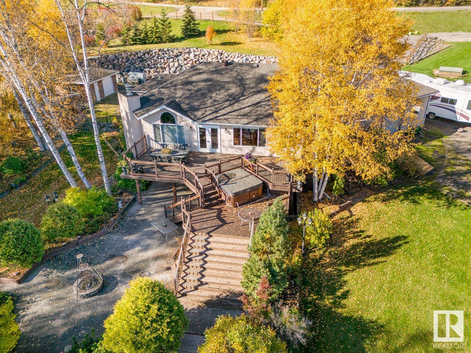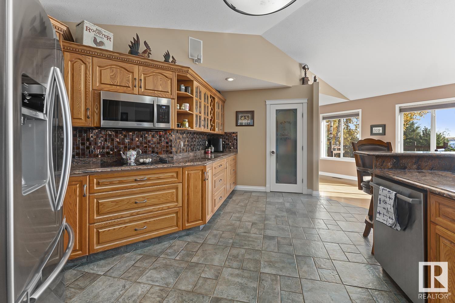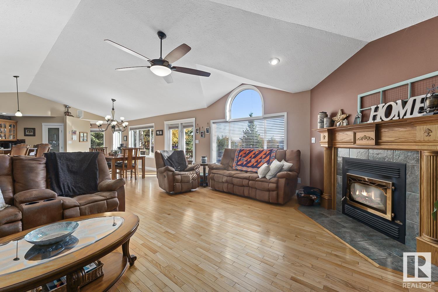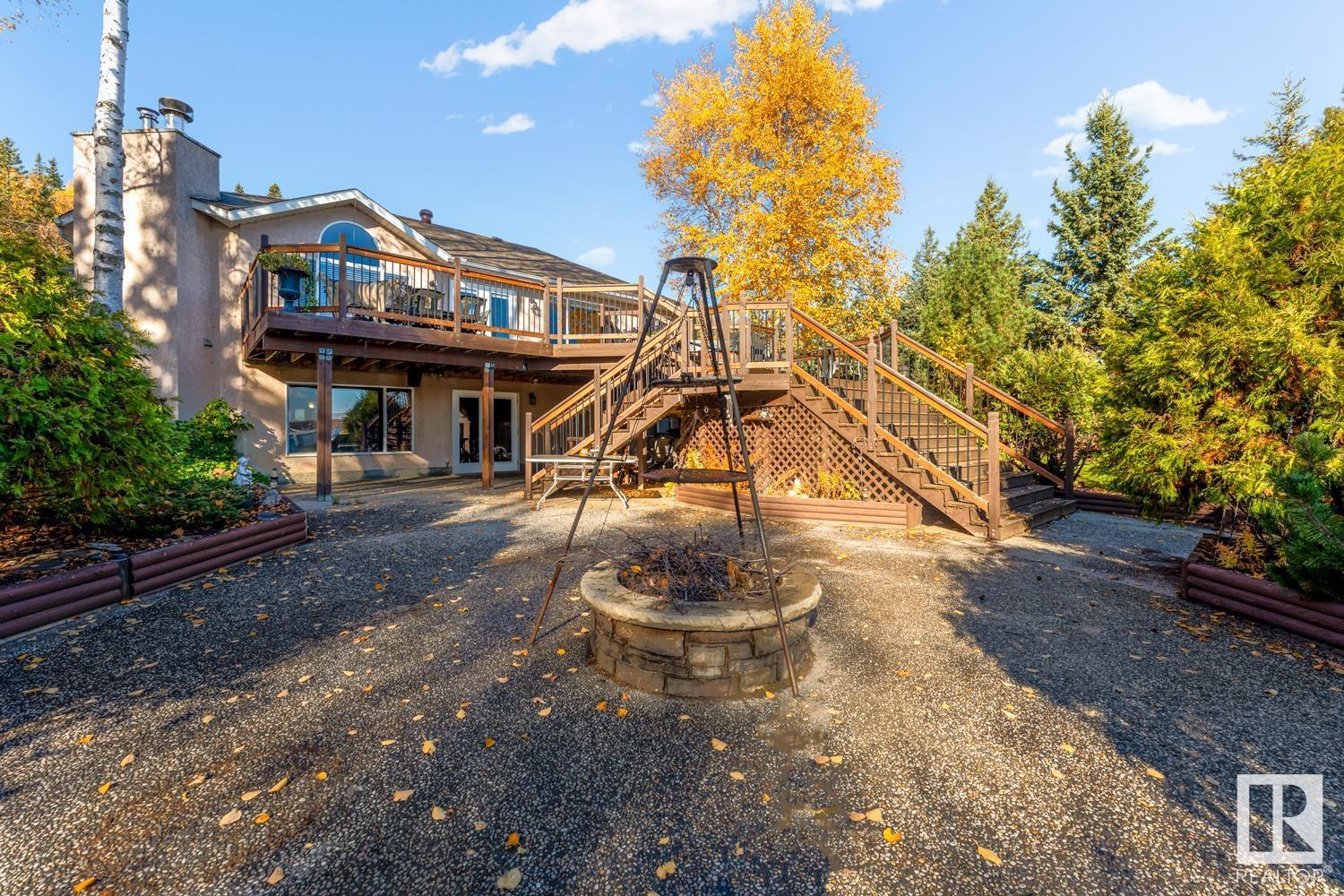 Lakefront Paradise! This incredible property is a rare find, just 100 feet from the water! This bungalow features a convenient walk-out design and offers over 2,250 sqft on each level. The home is adorned with ceramic tile and hardwood flooring, complemented by in-floor. You'll find four spacious bedrooms, including a grand primary suite with an beautiful ensuite. Both the kitchen and dining areas are generously sized. Enjoy stunning lake views through the tall windows spanning the kitchen, dining, and living rooms. Step outside through the double doors to the expansive 28' x 38' deck, or down to the 38' x 50' aggregate concrete pad, which includes a fire pit and cozy sitting area. The heated garage features a workbench, full fridge, and plenty of storage for tools and accessories. Additionally, there's a charming 10' x 12' guest cabin and a separate quad shed with an overhead door. Your dream home awaits you on the shores of Cold Lake - where you will be met with peace, tranquility and privacy (id:63190)