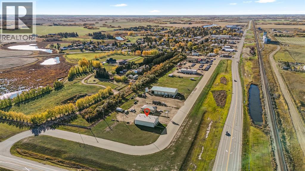 Introducing an opportunity to acquire a property in Killam that offers a well appointed shop, show room space, office, storage, and plenty of graveled yard space. The building is wood framed on a concrete foundation with maintenance free steel cladding on the walls and roof. New windows for the showroom are energy efficient and allow plenty of light into the space. The shop interior is fully finished, with in-floor heat, has a 17'-4" ceiling height, a 12'x14' overhead door, and 532 sq.ft. of mezzanine space. There is over 375 sq.ft. of freshly painted show room space, that could also be used for storage or additional offices. There is already a front office, upper office/board room, and a 12'-2 x 23'-5" main floor space off the shop that could be used for storage, a paint booth, or offices. This property is in an excellent location with full access and visibility to both Hi-ways 13 and 36. The building is ready for a new business or for personal use. (id:63190)