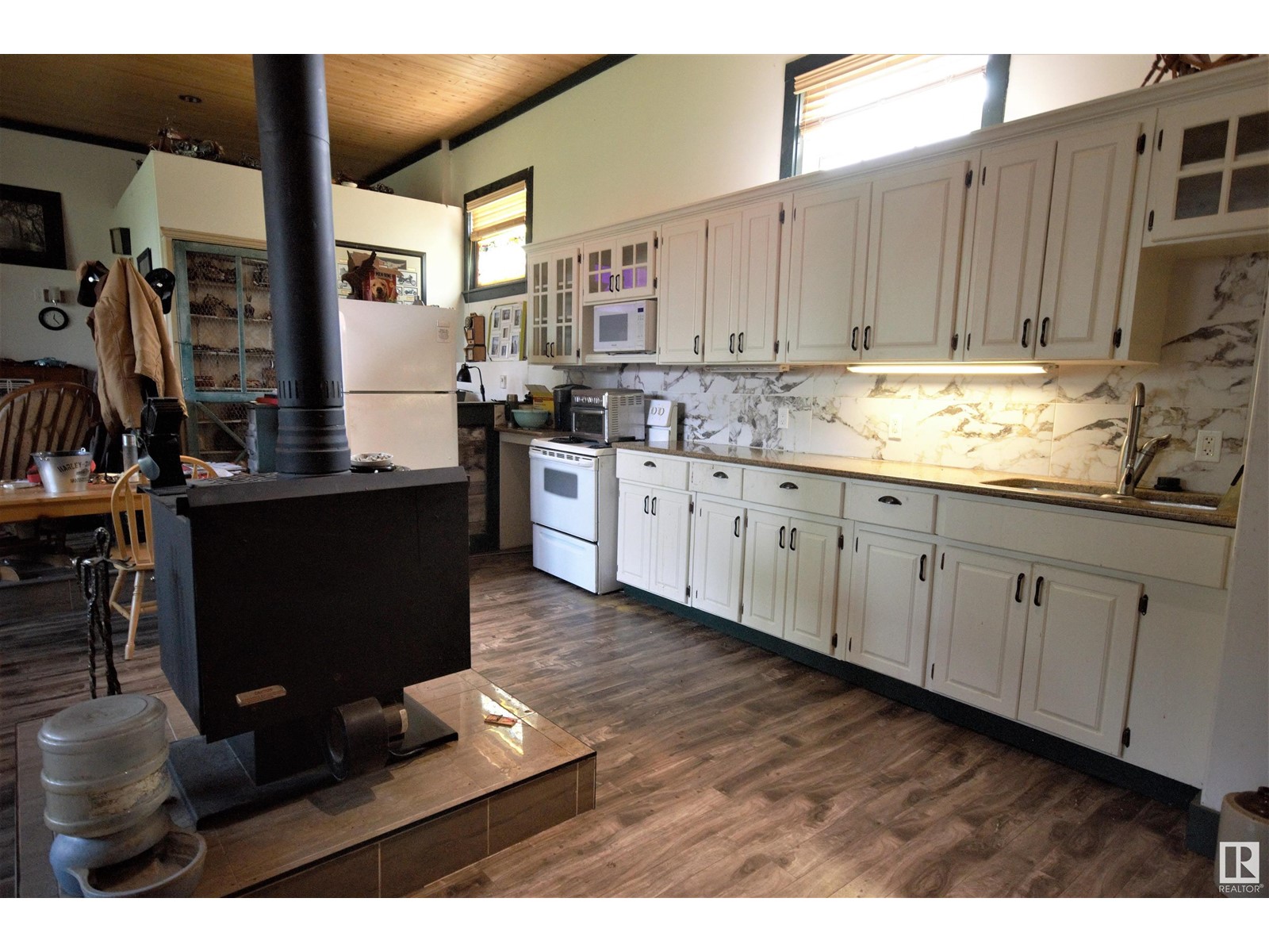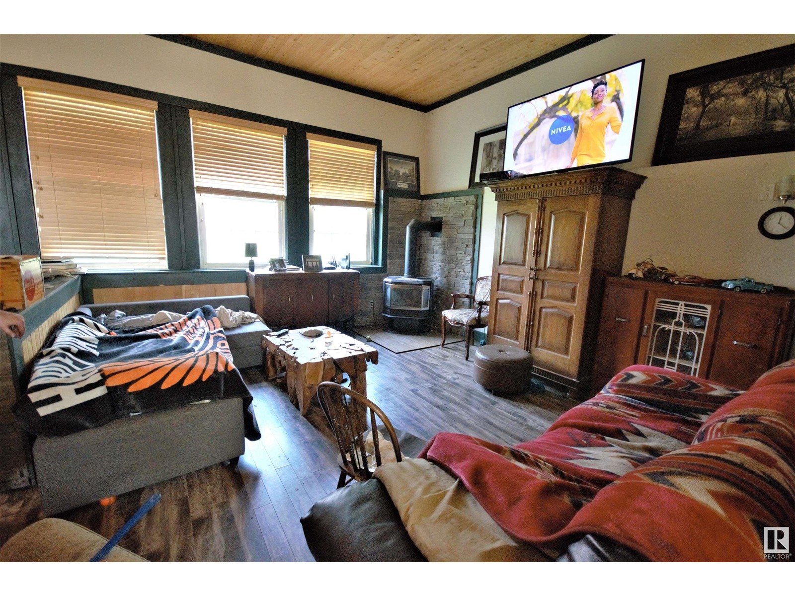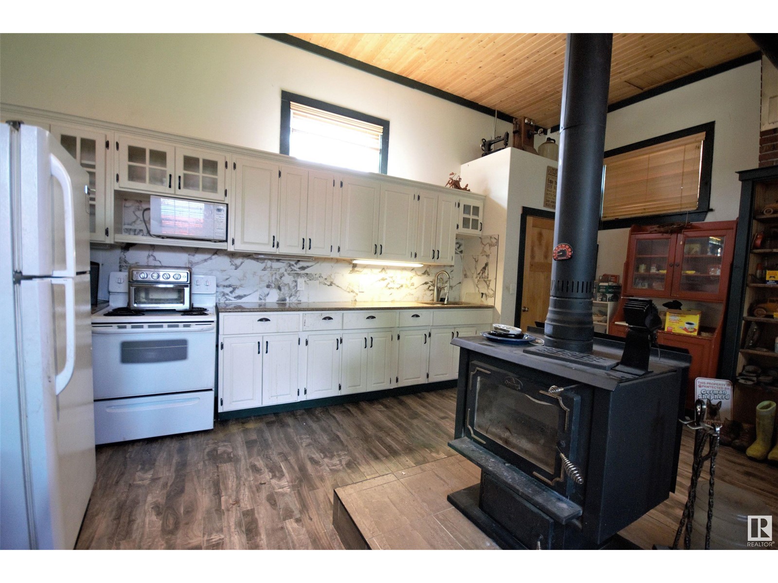 Let Nature Surround You! Two acreages for the price of one! Over 3 acres combined located just 1 1/2 miles from Manatokan Lake. Own a piece of history with this 1940s school converted to a year round home. Completely renovated throughout! This open concept living space includes solid wood kitchen cabinets, cozy wood stove, laminate flooring and laundry hookups. Raised living room has gas stove and large windows. 3 pc bath offers an oversized stand up shower. 40' X 50', 2013 shop is heated and includes a 16' overhead door, concrete floor, water/sewer, separate approach and driveway. Yard is partially fenced and includes 3 sheds and a treed, private RV parking area with power hook ups. Close to boating, fishing and easy commuting to oil activity. Invest Today! (id:63190)