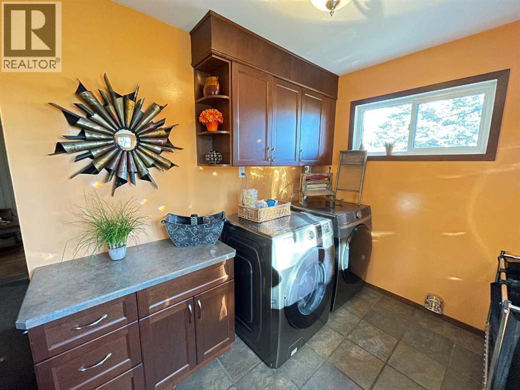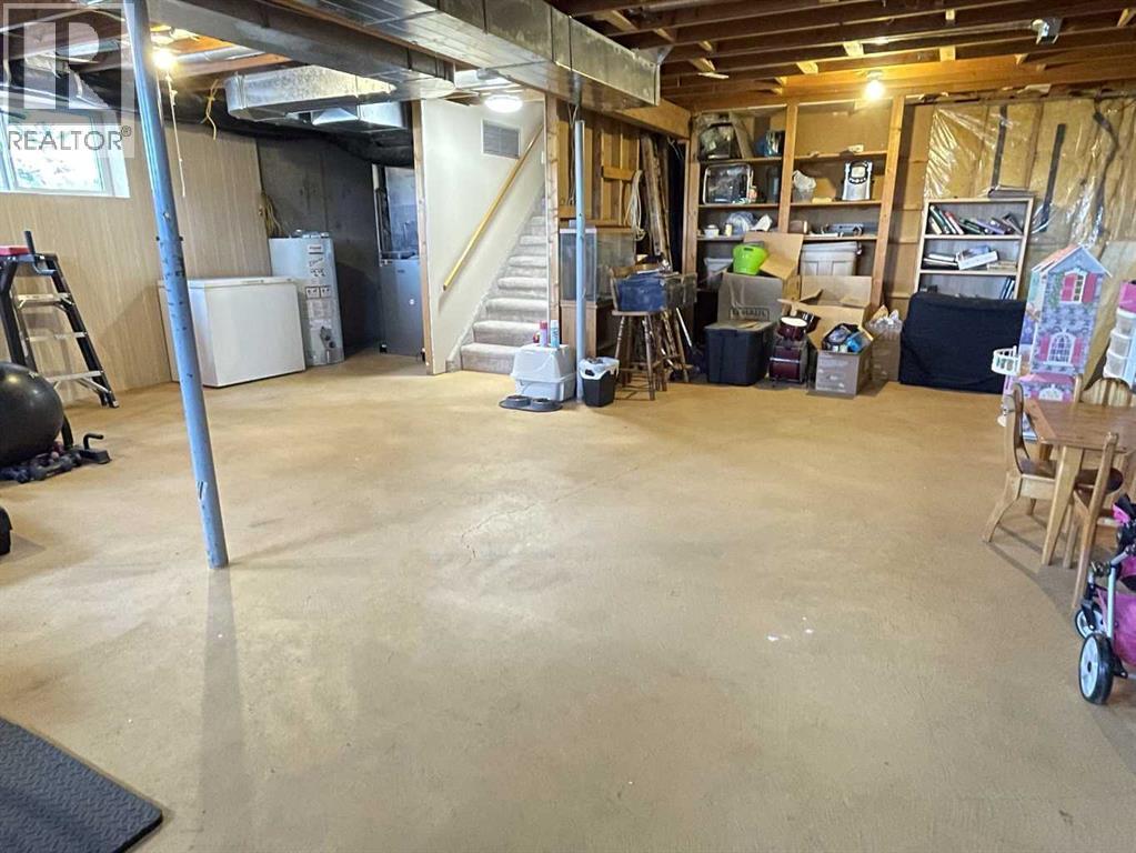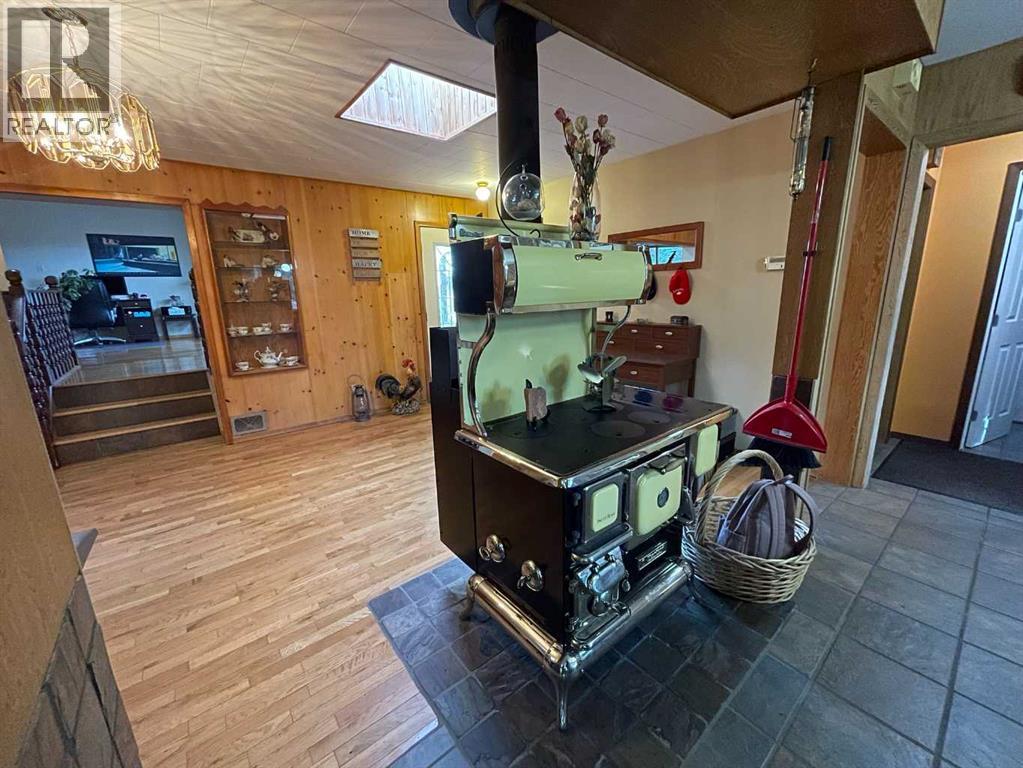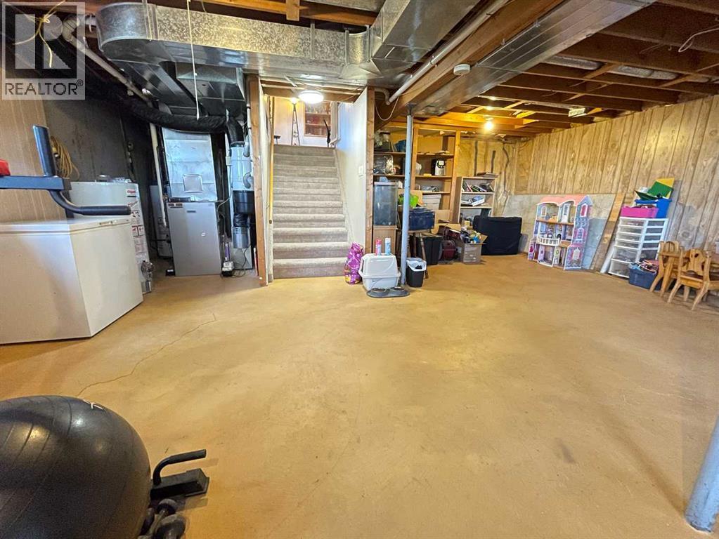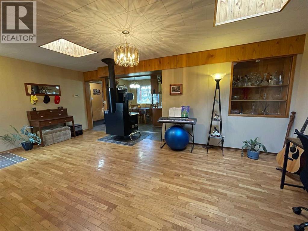 This 5 bedroom, split-level acreage home, with a 36’ x 46’ shop, sits on over 2 acres of fenced land right in town! Many updates have been done over the years including some flooring, windows & paint inside & out. The kitchen has brand-new, stainless-steel appliances & plenty of oak cabinets for storage. A functional wood fired cook stove, sits just off the kitchen & breakfast nook, providing turn of the century, rustic warmth & style. There is multi function space off the kitchen that can be used as a formal dining room or family entertaining. The master bedroom features attractive hardwood flooring & a convenient 2 pc ensuite. 2 additional bedrooms, a 4 piece bathroom & laundry with new washer & dryer complete the main level. The upper level offers a spacious living room that provides lots of natural light & access to the outside deck & patio area. 2 more bedrooms on the upper floor add extra space for the growing family. The lower level is partially finished with a large open area, utility room with high efficiency furnace & plenty of storage. Loads of parking for general vehicles & RV, an attached carport at the side of the house & a playground area for the kids are added bonuses for the family. The heated, insulated shop, with 12’ x 10’ garage door, has 220 wiring with 2 sub-panels, mezzanine, storage shelves & a 2pc bathroom. The property has option to be further sub-divided, subject to town review & approval. Situated within walking distance to all shopping, walking trails & Mary Reimer Park. (id:63190)