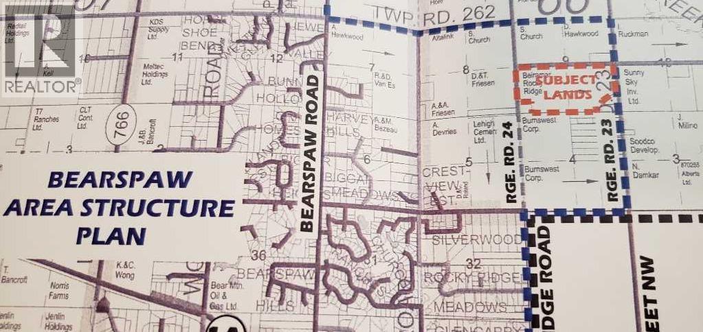 Sellers would look at vendor financing (VTB). This area is being identified as a future residential growth area between Calgary and Bearspaw, Currently zoned AG, Prime development location. This property provides an excellent opportunity for a developer/investor.281 ACRES of land. It is inside the Bearspaw Area Structure Plan. .Located 1/4 mile north of the Calgary city limits near the northwest Calgary community of Rocky Ridge Ranch. Between Rocky Ridge Road and Range Road 23. .- This land is extremely well situated to benefit from the continuing expansion around it. With each major announcement, the land becomes more valuable. The MD of Rocky View has set records for development to meet strong real estate demand in the surrounding areas. This property a minute from Calgary.. This property is located within an approved Area Structure Plan in Rocky View County (id:63190)