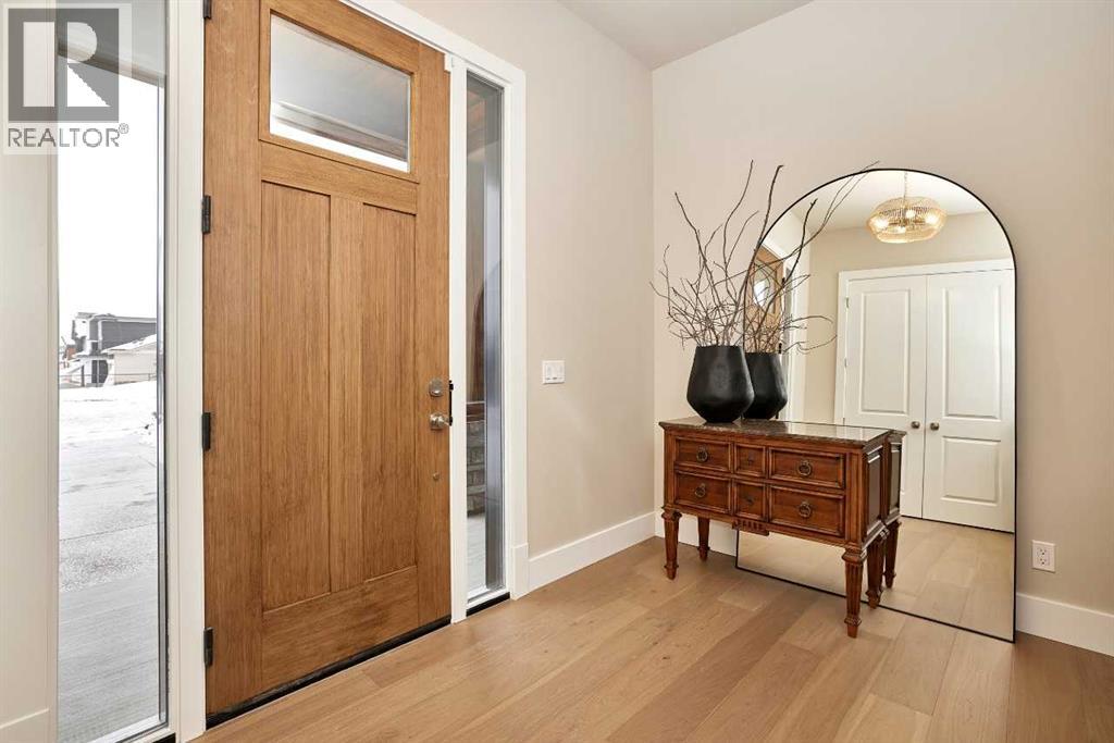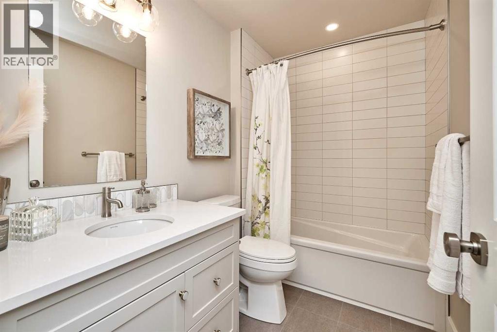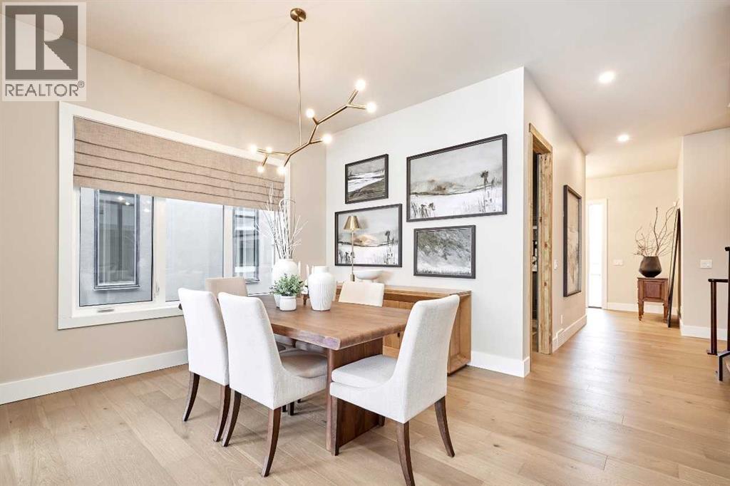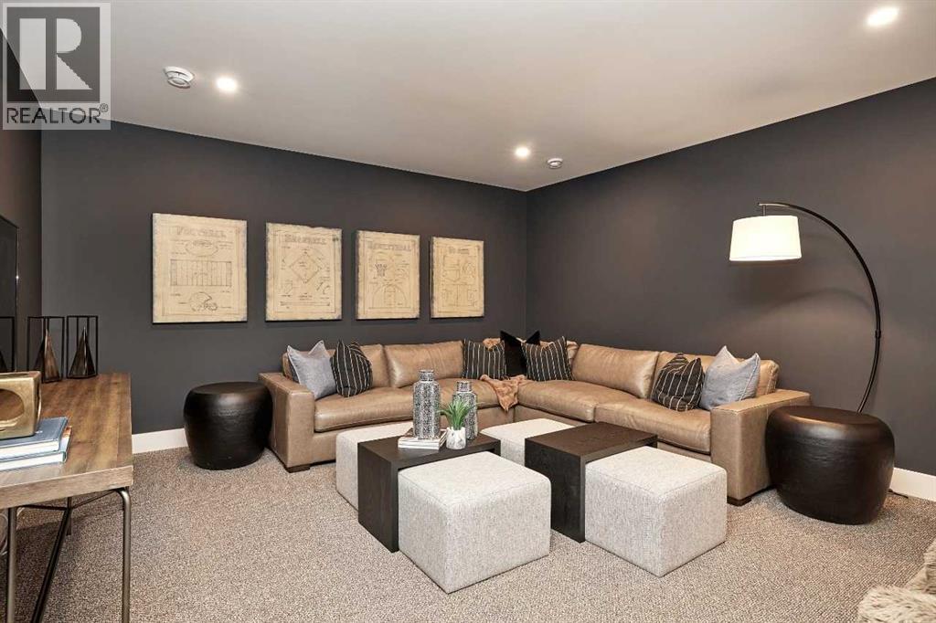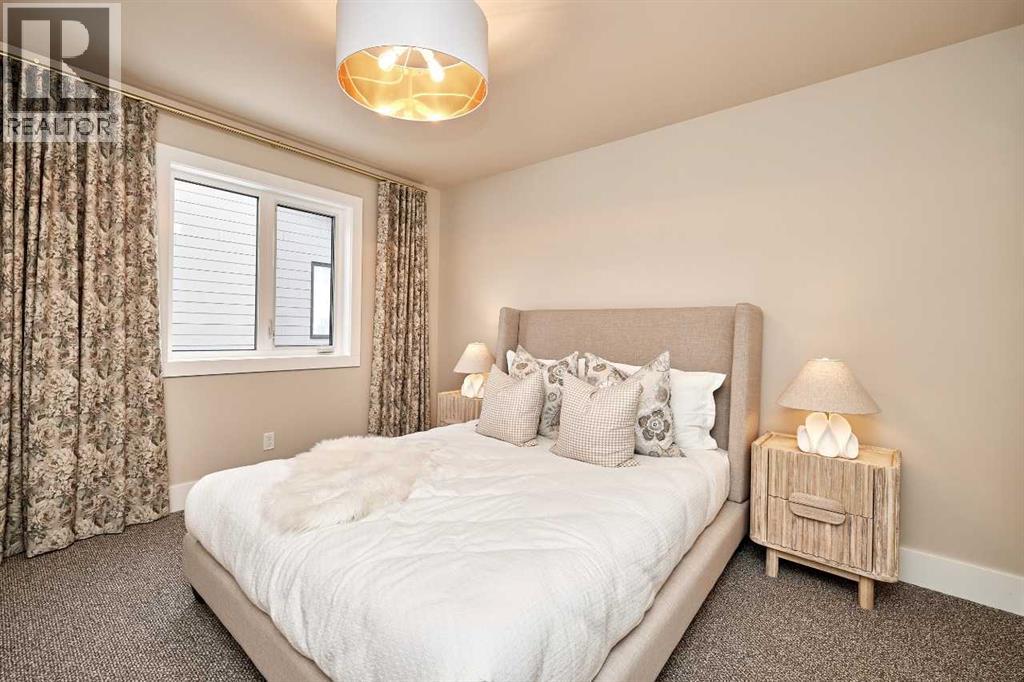 Welcome to the Dorchester by Crystal Creek Homes. This stunning home combines luxurious features with thoughtful design, starting with a CHEF'S KITCHEN that boasts high-end appliances, custom cabinetry, and a spacious layout perfect for culinary creativity. The open-concept great room showcases impressive open beam VAULTED CEILINGS, creating a grand and airy atmosphere ideal for both relaxing and entertaining. A second story LOFT space offers the flexibility of a second bedroom and bathroom, providing added privacy and convenience. The finished basement is an entertainer’s dream, complete with a stylish BASEMENT BAR featuring quartz countertops and custom cabinets, along with a home gym for ultimate comfort and functionality. Step outside on your back deck, offering a seamless transition between indoor and outdoor living to absolutely stunning views of the BOW RIVER RAVINE. With every detail meticulously crafted, this home offers the perfect blend of elegance and practicality. Photos are representative. (id:63190)