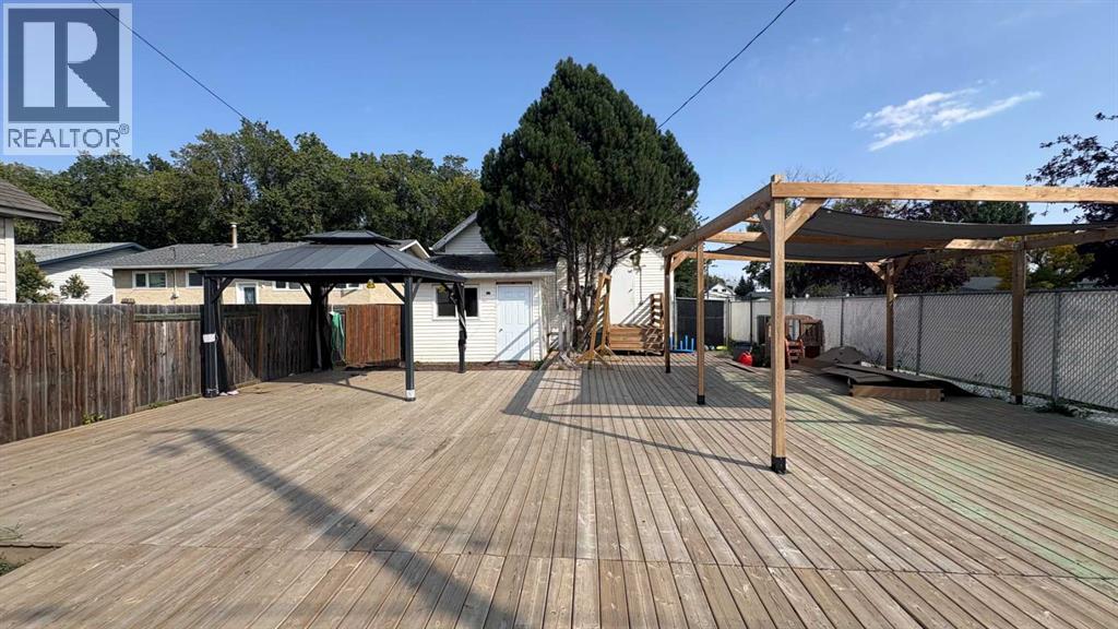 Ready and raring for your business ideas! This private, fully fenced, renovated property offers many business options for the next owner! Whether it's a daycare, games room, event venue for celebrations, wedding, showers, birthdays, concerts, flea market, fitness space for yoga, pilates, rock climbing, 2nd hand store, office variety, or general retail ideas....whew! Inside, the entry is spacious and provides an option to go up or down. With either choice, you'll discover generous open concept spaces. Head upstairs to find a large open area, complete with separated laundry area, washrooms (3 toilets/2 sinks) and additional storage space areas. Downstairs is complete with handy kitchen space, 2 toilet areas, additional large open space with 2 separate rooms for storage or offices! Step outside on the west end, and you'll find a fantastic space for outdoor gatherings, c/w large 40' X 40' deck, playground space or whatever your heart desires! There is also a 12' X 12' attached storage shed with basement access, and supplemental fenced storage space for the extra equipment your business might have! Book your showing today with your favourite realtor! (id:63190)