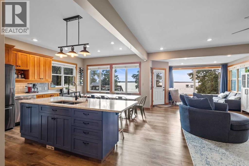 50 Feet of sandy lakefront on the shores of Jarvis Bay. Enjoy breathtaking sunsets, fishing, boating, swimming, snowmobiling, quadding, and make the family memories unforgettable! This Bowood built home has had many updates and it shows! Bright open great room with large windows, wood fireplace(wett certified), expansive island with quartz tops, durable high quality plank flooring, high ceilings, main floor laundry, and a great deck for catching some rays. Upstairs has 4 bedrooms and 2 baths providing room for family and guests. Fully finished basement has acid stained concrete floors with slab heating, another bedroom, a den and an oversized rec/games room. Raspberries and Saskatoons are abundant on this property! Also just a short 10 minute bike ride on paved paths or a nice walk into all the amenities of Sylvan Lake! Don't wait too long to view this beautiful lakefront home! This home has been pre inspected and that is available to any buyer. Wood fireplace has been WETT inspected. (id:63190)