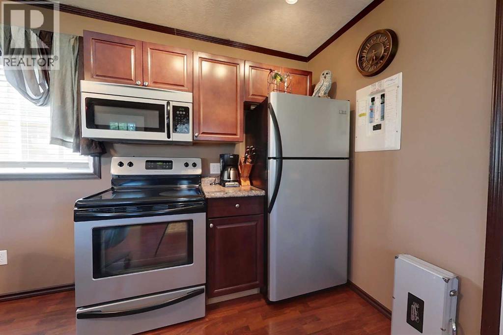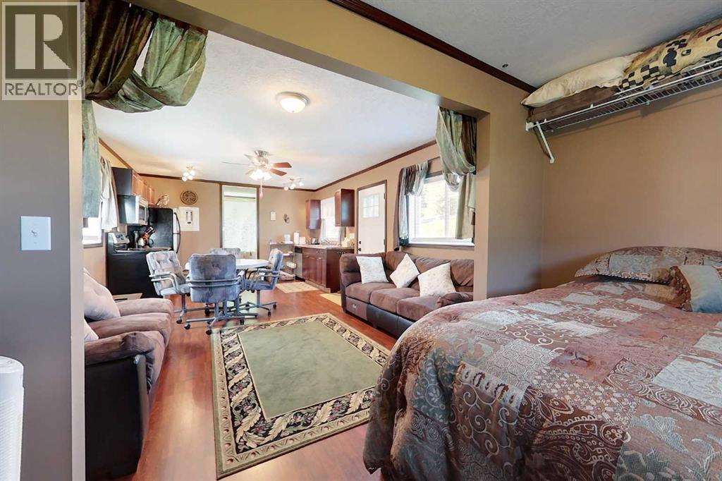 Cute and Cozy Recreational property located just minutes from Spruce Point Park Marina on one of Alberta's nicest lakes where you can enjoy boating, fishing and watching some of the best sunsets!! Inside the cabin, you will find a cozy open concept living space kitchen/dining, bedroom and a 4-pc bathroom with hook ups for washer and dryer. This gem is well maintained and move in ready, complete with all household furnishings. Outdoors has a front deck, a large storage shed featuring overhead door for lots of storage area. Underground cistern is 1000 gallons and septic tank is 1000 gallons. The large lot is nicely landscaped with plenty of space for company to park RV's for the family camp outs!!! (id:63190)