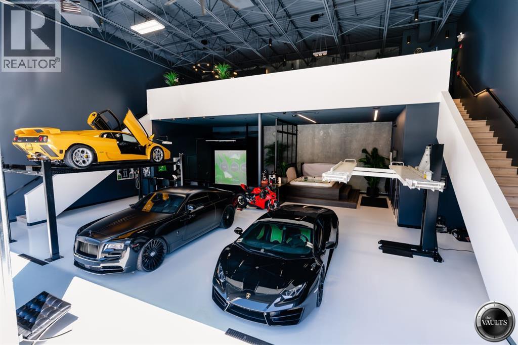 Welcome to the epitome of luxury storage and entertainment: the finest vault ever conceived. Double the size of its counterparts, With storage for up to 8 cars and or RV space. But it's not just the size that sets it apart; the meticulous attention to detail and luxury finishes genuinely set it apart. As you step inside, the lower level greets you with sleek epoxy floors, complemented by two car lifts for effortless maneuvering. Indulge in relaxation within the 8-person hot tub, with a 3-piece bathroom for convenience. A top-of-the-line GC Hawk golf simulator is perfect for practicing golf all winter, promising endless entertainment and refinement. Venture upstairs via one of two staircases to discover an entertainment haven like no other. Here, a fully equipped kitchen boasting Bosch appliances and a sprawling center island beckons culinary creativity and social gatherings. Whether it's fight night or a weekend retreat, unwind in the comfort of a living room adorned with a state-of-the-art big-screen TV. Should the mood strike, engage in a spirited game of poker, complemented by a dedicated space and a convenient two-piece bathroom. Throughout this extraordinary space, cutting-edge technology seamlessly integrates audio, visual, and security systems, ensuring convenience and peace of mind. If that wasn't enough, there is also a car wash and owners-only exclusive clubhouse for events. For those yearning the pinnacle of luxury living. Contact us today to schedule a private tour and see everything the Vaults offer. (id:63190)