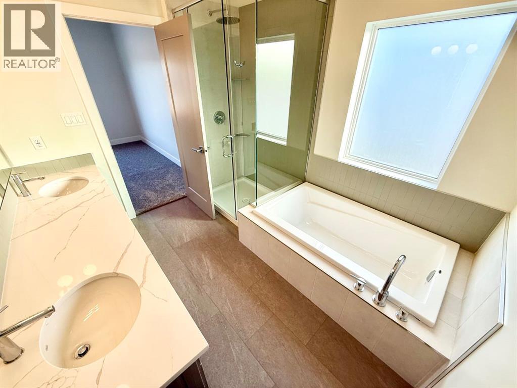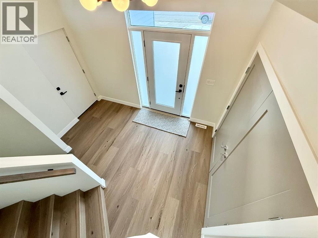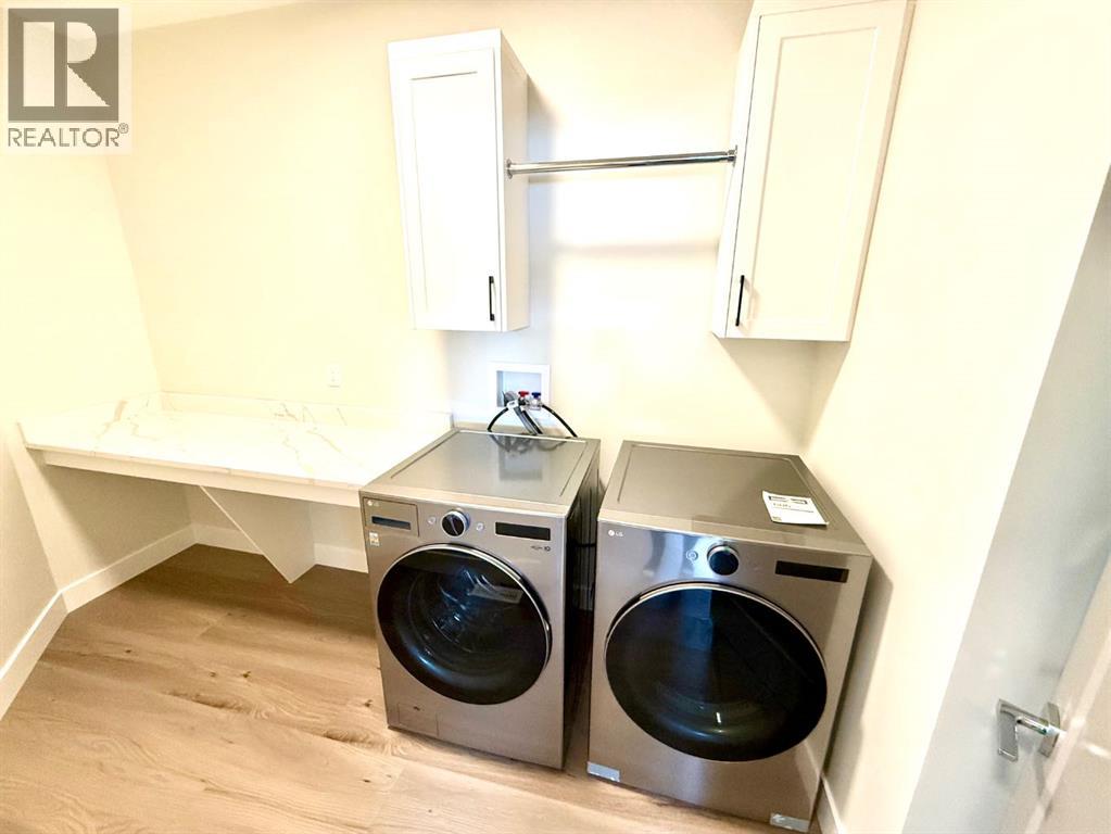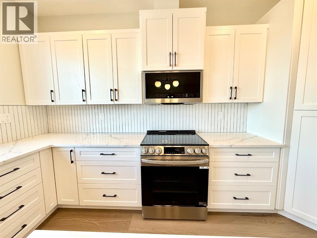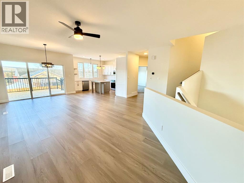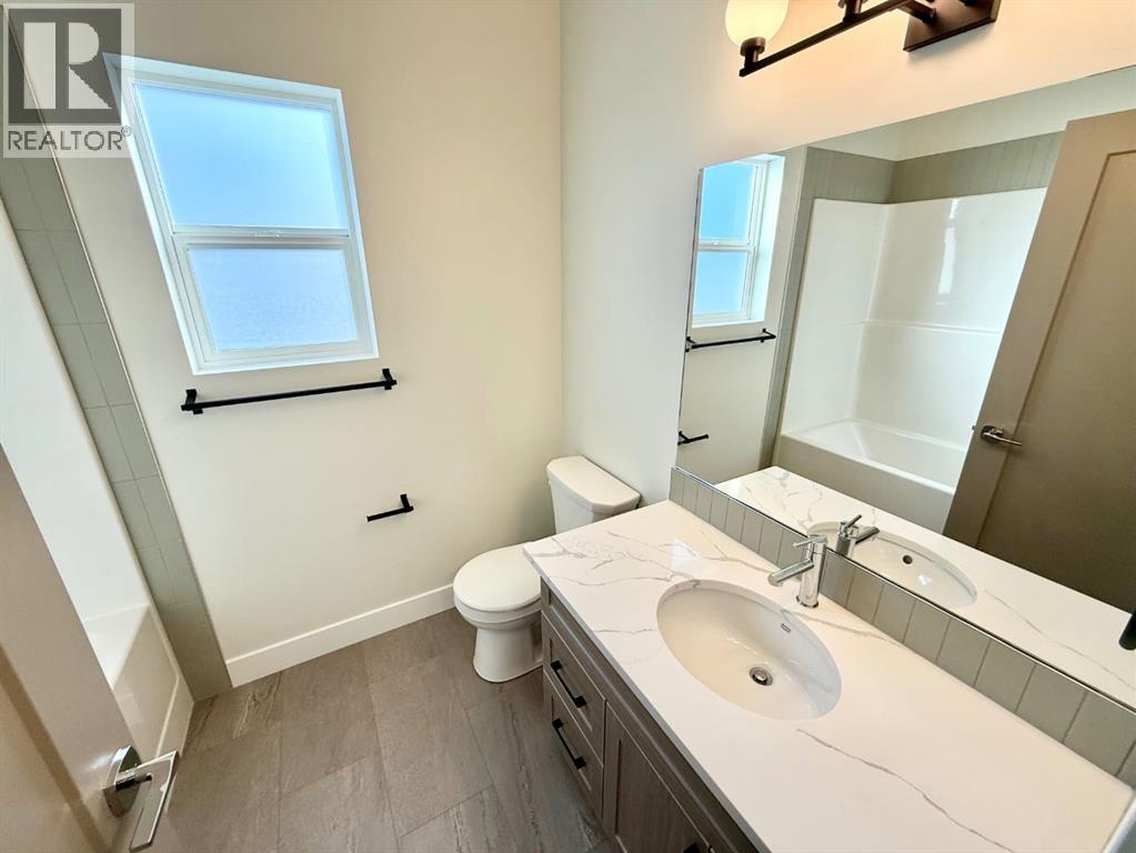 Brand new 2,817 square foot modified Bi-Level built by Hall-E-Wood Construction is ready! Walking in the front door you are welcomed with a huge entryway, and luxury vinyl plank flowing through the main areas. The open concept kitchen, dining and living areas are modern and functional. The kitchen features Quartz countertops, corner pantry, island with an eating bar, and stainless steel appliances. Patio door off the dining room bringing you to a deck and access to the fully fenced and landscaped yard. The primary bedroom is found on the main floor and has a huge walk in closet with additional storage, and a 5 piece ensuite with a soaker tub and separate shower. Upstairs you will find 2 more bedrooms, another full bathroom, mountain views, and a large laundry room with shelving. The developed basement features in floor heat throughout, a media room, 2 more bedrooms, a third full bathroom, and even more storage. No space wasted! Adding on to this exceptional home is a double attached garage with in floor heat, huge concrete driveway, RV parking along the side with the convenience of your own sani dump, quick possession and new home warranty! Now is your chance to upgrade! (id:63190)