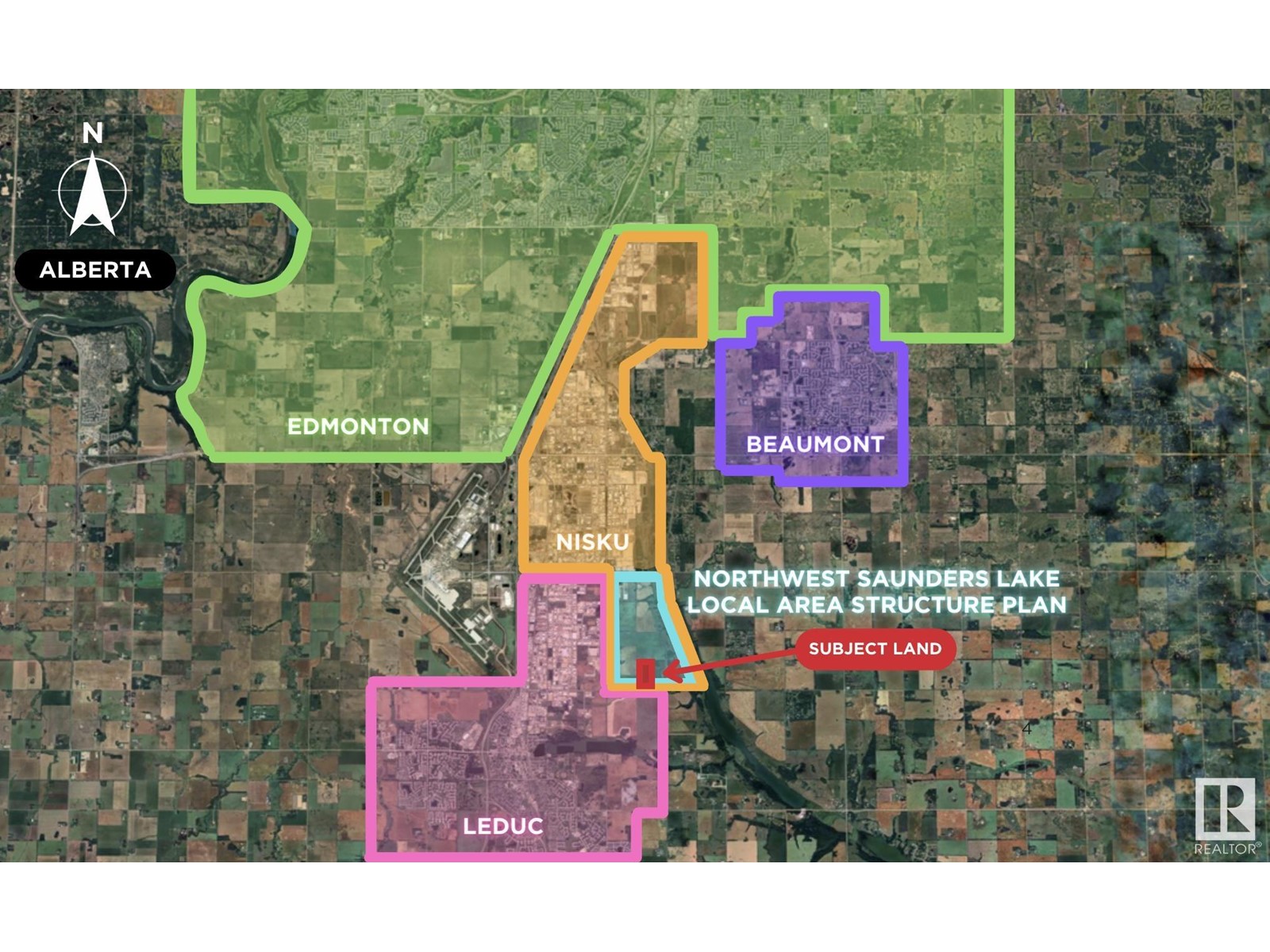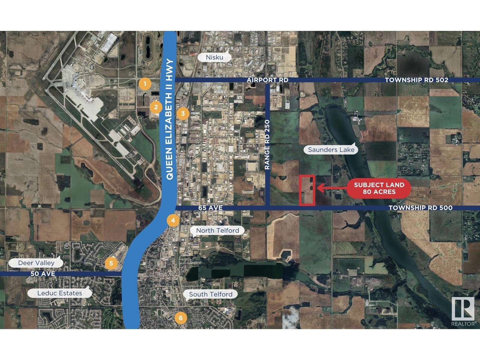 80 Acres. Located in the Northwest Saunders Lake Local Area Structure Plan (LASP).Great proximity to water pipeline, 240V Transmission Lines and three (3) phase power. Artificial Intelligence, Datacentre, Crypto Mining potential with possible access to nearby transmission lines. Located south of Nisku Business Park Five minute drive to Edmonton International Airport, and adjacent to Leduc city limits. Municipality: Leduc County, Alberta, Short Legal: 4,24,50,6 SE: Zoning: AG (Agriculture). Selling land value only. Buyer's to confirm information during their due diligence. (id:63190)