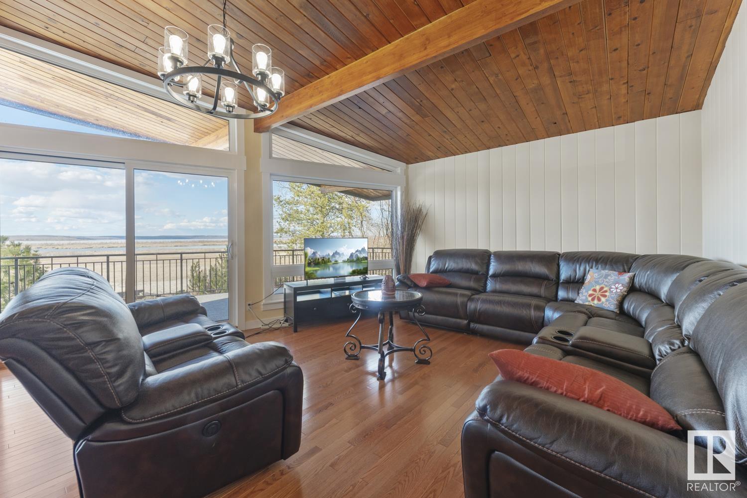 Custom built 1728 sq. ft. bungalow sitting on just over 1/2 an acre Lakefront Muriel Lake. This year round home has 3 bedrooms 2 bathrooms an open concept A frame style, which enhances all views of the lake. Property upgrades include 2 new bathrooms, new triple pane windows, new siding, new deck, fresh paint, new electrical and more.....Relax and enjoy sights and sound of the lake on the huge wrap around deck or enjoy the sandy beach. (id:63190)