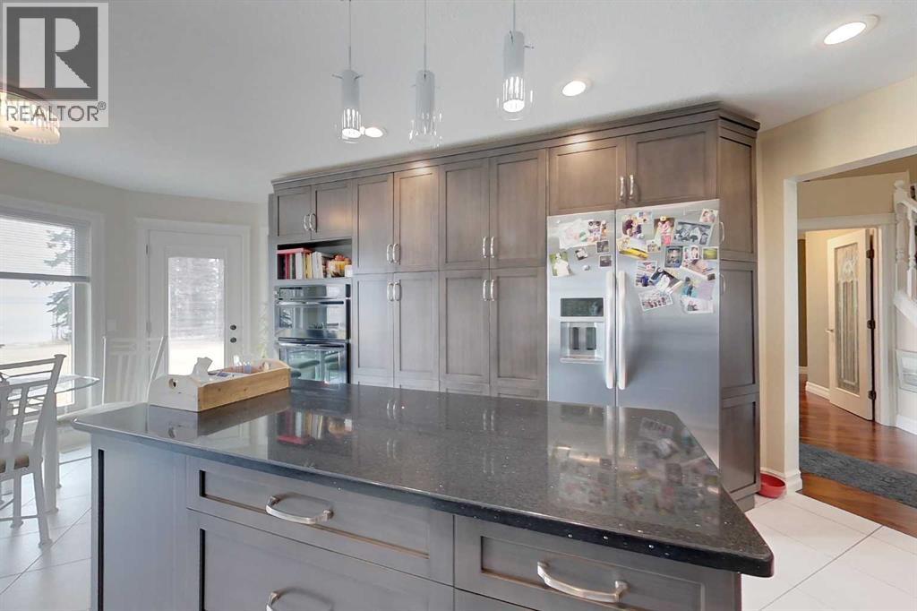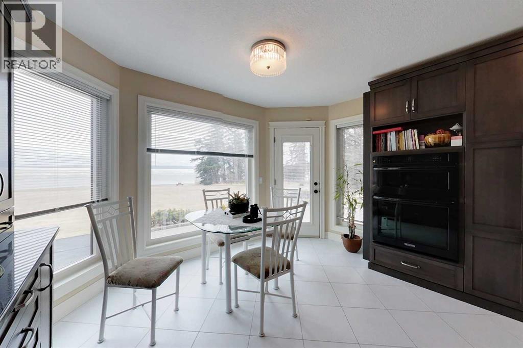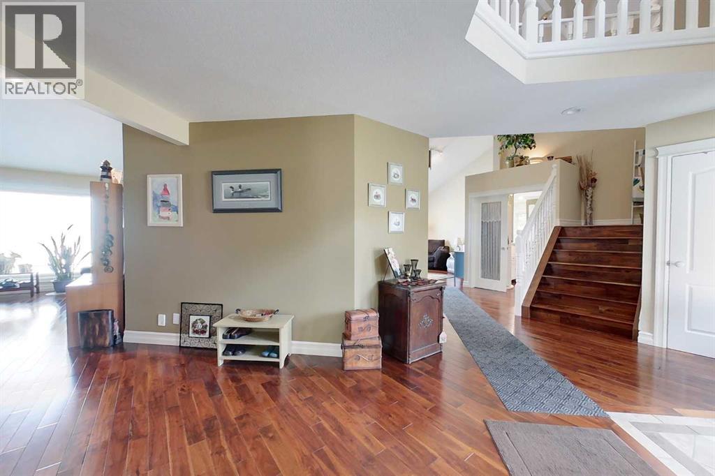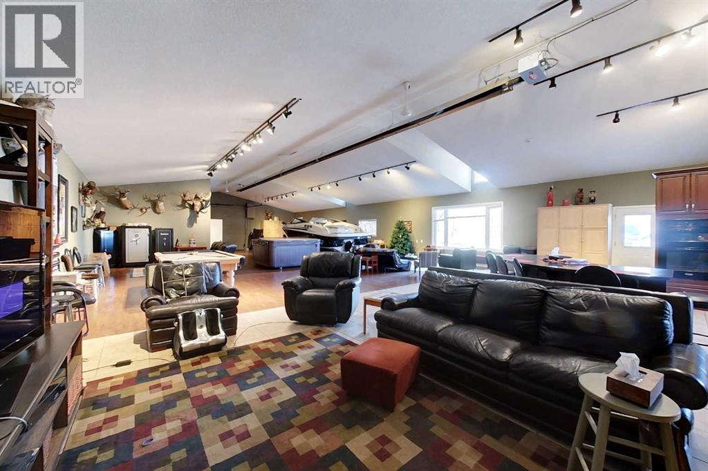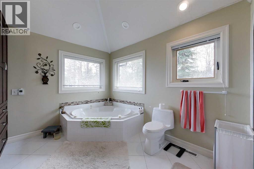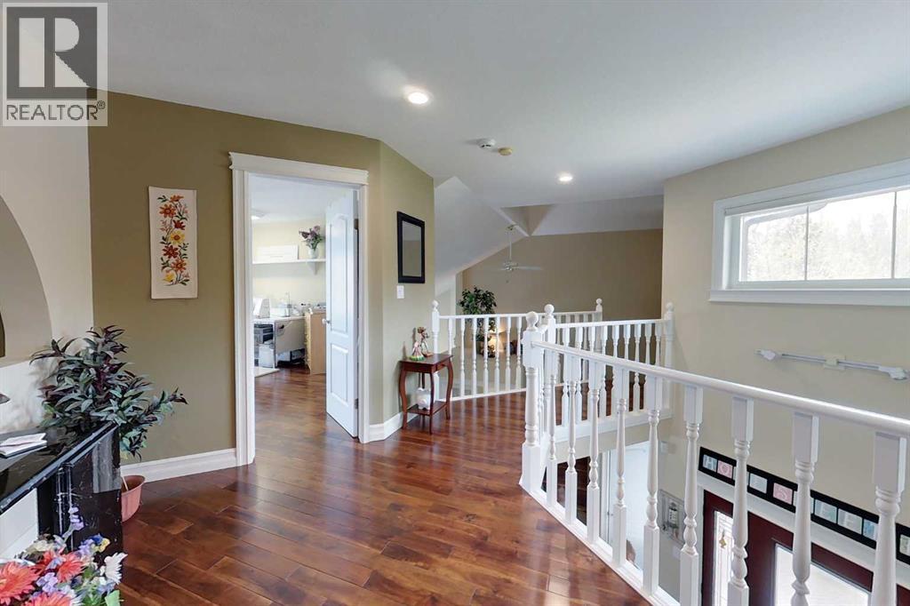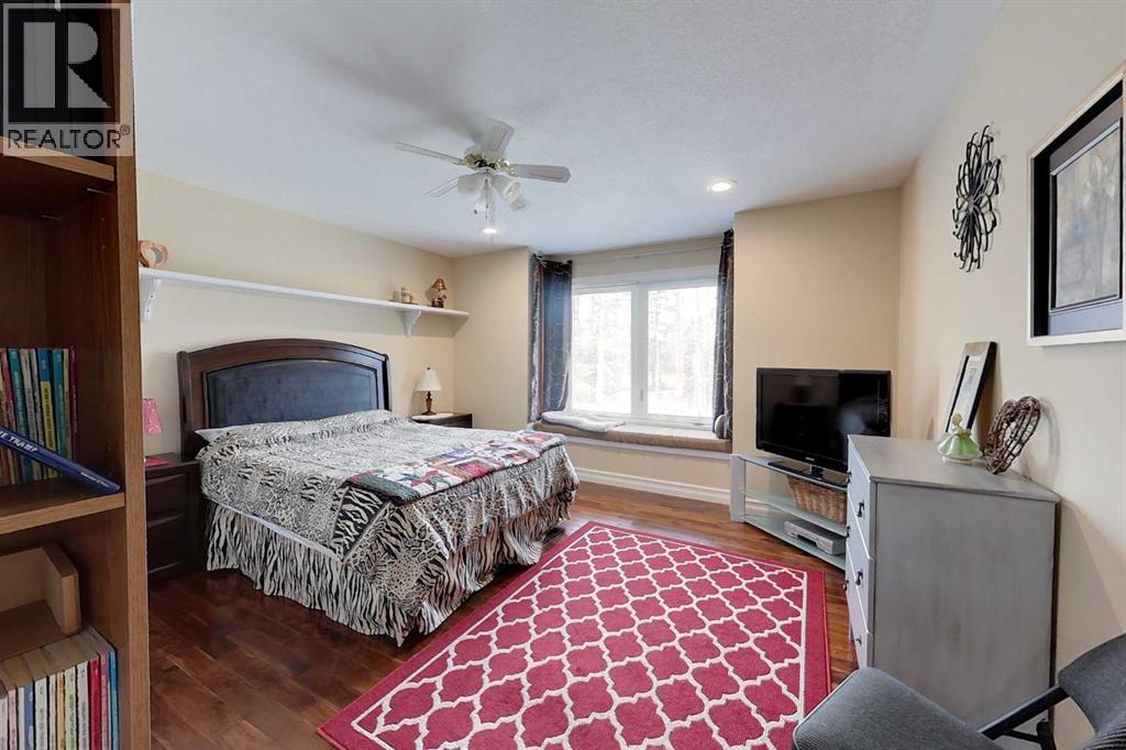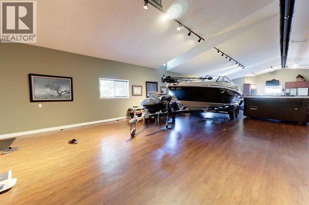 Yowza! Executive Lakefront Living with Every Feature You Could Dream Of – And More! This extraordinary 3700+ sqft estate in Executive Estates, Canyon Creek is truly one-of-a-kind. Nestled on a breathtaking lakefront 3.8-acre lot, this property combines luxury, functionality, and outdoor adventure like no other. The main home offers 4 bedrooms and 4 bathrooms, including a spacious primary suite with hardwood floors, soaker tub, stand-up shower, and stunning lake-facing windows. The chef’s kitchen is a showstopper with rich dark walnut cabinetry, granite countertops, built-in oven, microwave hood fan, countertop stove, and a sunny breakfast nook overlooking the lake. A four-season sunroom adds to the charm and provides year-round relaxation. The original attached garage has been thoughtfully converted into a bright and expansive family room, complete with porcelain tile flooring, large windows, and a cozy pellet stove. Also on the main floor: a home office with built-in cabinetry, laundry room, and a 3-pc bath with a built-in sauna. Head upstairs to find three more generously sized bedrooms and a full bath, all connected by a unique hallway cut-out feature that overlooks the main level. The basement boasts an additional bedroom, a 4-pc bathroom, and a large recreation room—perfect for family movie nights or guests. Outside, this property is an entertainer’s dream: "Toyshop" building with full kitchen, bedroom, and room to park your RVs, quads, or snowmobiles—plus a covered patio for BBQs and gatherings; Detached double garage; a Massive 4-bay woodshop with a walk-in cooler and hooks for the hunting enthusiast; Asphalt driveway leads to all buildings, offering convenience and a clean aesthetic; Backup generator for peace of mind; Rubber shingles on all buildings for uniformity and function, the hot tub on the deck for ultimate relaxation; Underground sprinkler system with 100% coverage of the entire property. Whether you're a hobbyist, entertainer, nature lover, or a ll of the above, this property delivers luxury, space, privacy, and functionality in equal measure. This is more than a home—it’s a lifestyle. You have to see this property, and experience the unmatched value of this Canyon Creek gem! (id:63190)