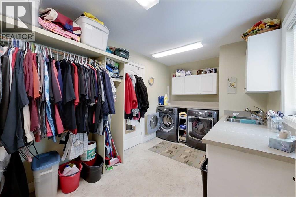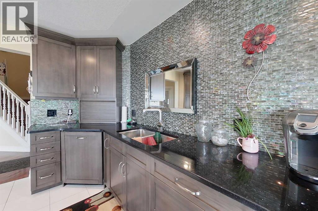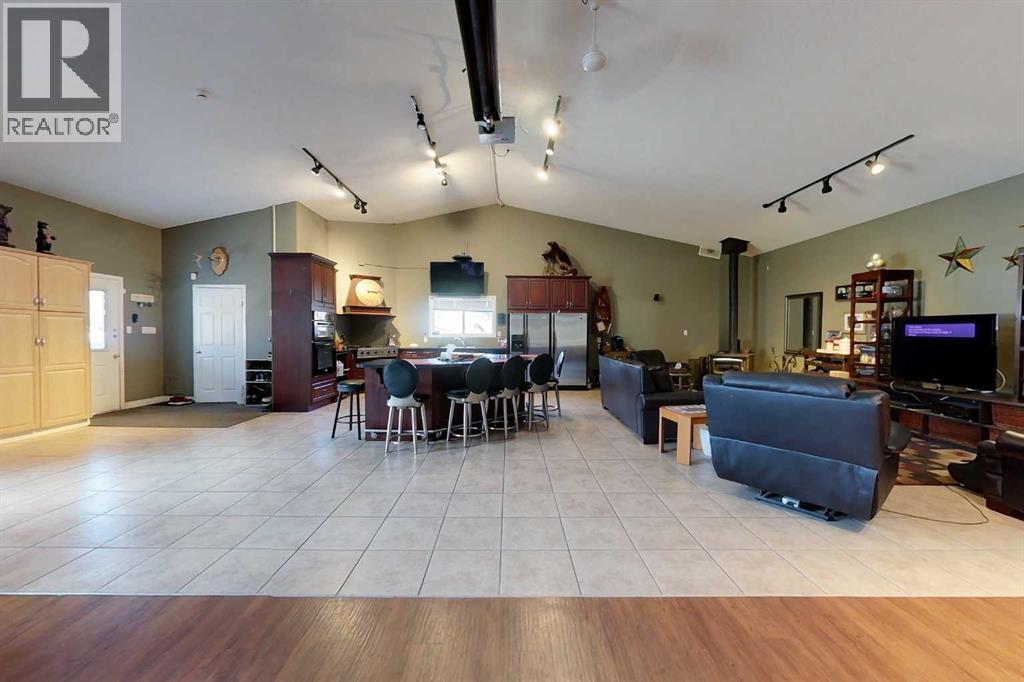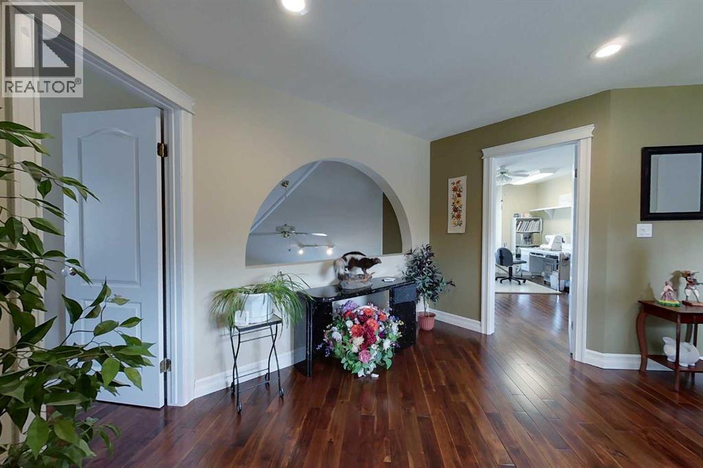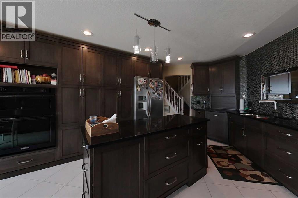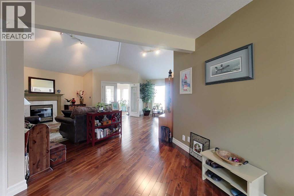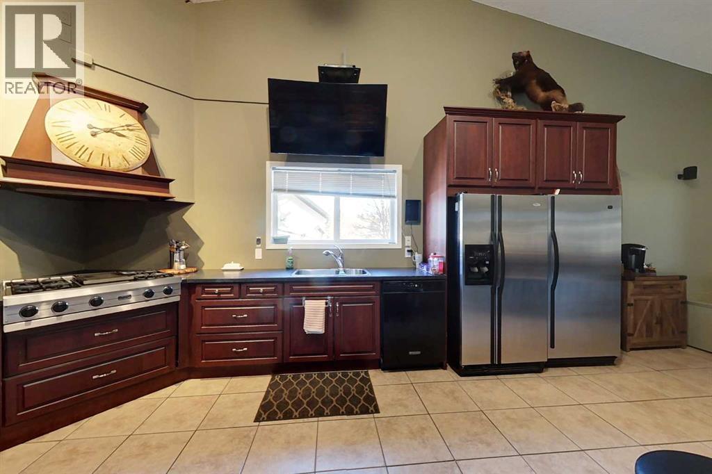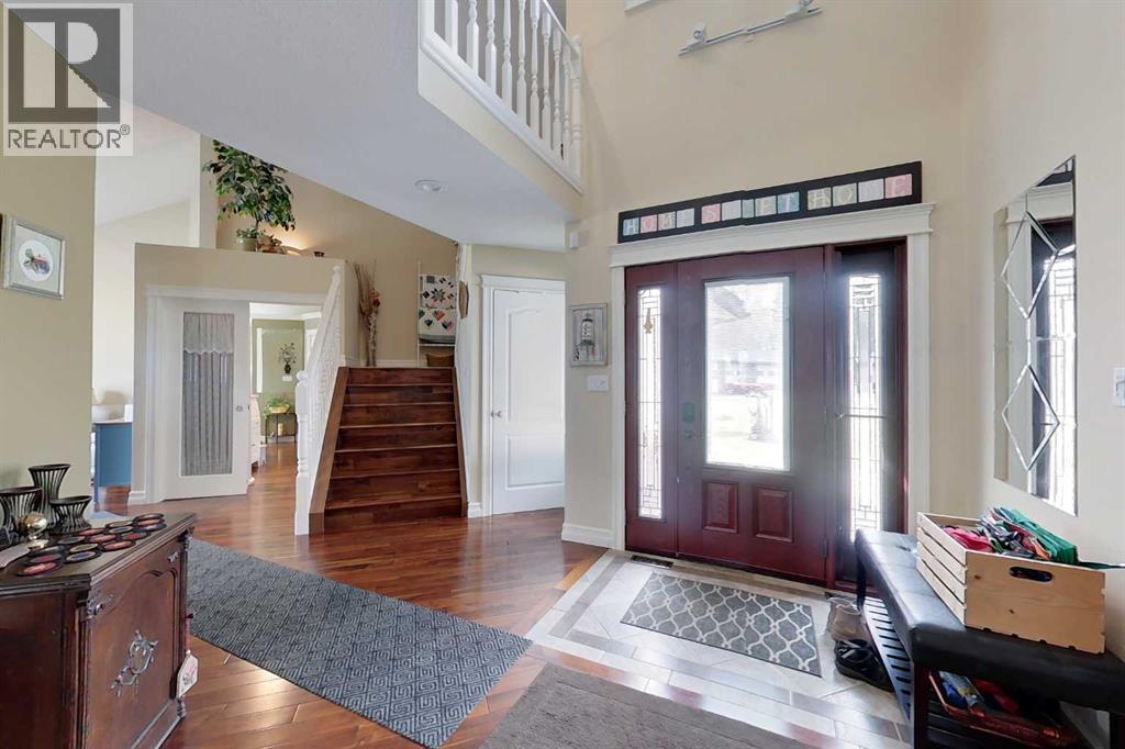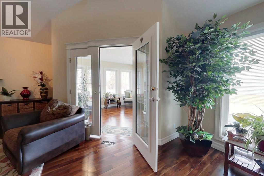 Yowza! Executive Lakefront Living with Every Feature You Could Dream Of – And More! This extraordinary 3700+ sqft estate in Executive Estates, Canyon Creek is truly one-of-a-kind. Nestled on a breathtaking lakefront 3.8-acre lot, this property combines luxury, functionality, and outdoor adventure like no other. The main home offers 4 bedrooms and 4 bathrooms, including a spacious primary suite with hardwood floors, soaker tub, stand-up shower, and stunning lake-facing windows. The chef’s kitchen is a showstopper with rich dark walnut cabinetry, granite countertops, built-in oven, microwave hood fan, countertop stove, and a sunny breakfast nook overlooking the lake. A four-season sunroom adds to the charm and provides year-round relaxation. The original attached garage has been thoughtfully converted into a bright and expansive family room, complete with porcelain tile flooring, large windows, and a cozy pellet stove. Also on the main floor: a home office with built-in cabinetry, laundry room, and a 3-pc bath with a built-in sauna. Head upstairs to find three more generously sized bedrooms and a full bath, all connected by a unique hallway cut-out feature that overlooks the main level. The basement boasts an additional bedroom, a 4-pc bathroom, and a large recreation room—perfect for family movie nights or guests. Outside, this property is an entertainer’s dream: "Toyshop" building with full kitchen, bedroom, and room to park your RVs, quads, or snowmobiles—plus a covered patio for BBQs and gatherings; Detached double garage; a Massive 4-bay woodshop with a walk-in cooler and hooks for the hunting enthusiast; Asphalt driveway leads to all buildings, offering convenience and a clean aesthetic; Backup generator for peace of mind; Rubber shingles on all buildings for uniformity and function, the hot tub on the deck for ultimate relaxation; Underground sprinkler system with 100% coverage of the entire property. Whether you're a hobbyist, entertainer, nature lover, or a ll of the above, this property delivers luxury, space, privacy, and functionality in equal measure. This is more than a home—it’s a lifestyle. You have to see this property, and experience the unmatched value of this Canyon Creek gem! (id:63190)