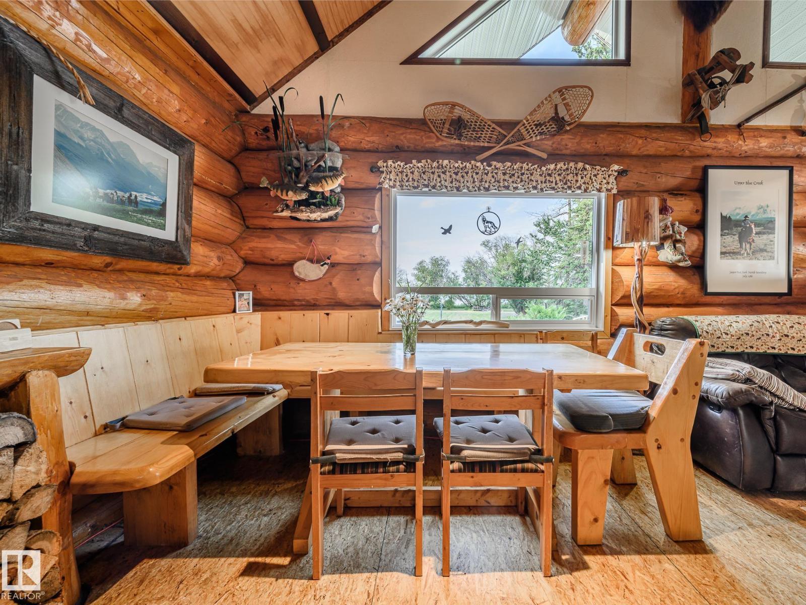Kehiwin Lake Ranch, a beautiful 42 acres with an abundance of trees, a quarter acre of meadow that produce's hay, over 3000 feet of private waterfront, right to the water! Only once in a lifetime does something like this come available. Be the owner of the ONLY lakefront home on this lake. A dream for any outdoorsman, this land is home to deer, moose, bear, elk and many more beautiful animals. Kehiwin Lake is spring fed, you'll enjoy fishing for Jack, Perch, Walleye and white fish right out your front door. The countryside surrounding this property is breathtaking, with rolling hills and thick forest. The log home is built on a 10 reinforced concrete slab, covered in breathtaking timbers, features custom hand crafted handles, railings, tables, chairs and more. Enjoy a large upper primary bedroom, main floor second bedroom, high efficient wood stove with thermostat capability, wood finished floors, a three piece washroom and a beautiful view of the lake. This is the real meaning of ONE OF A KIND! (id:63190)