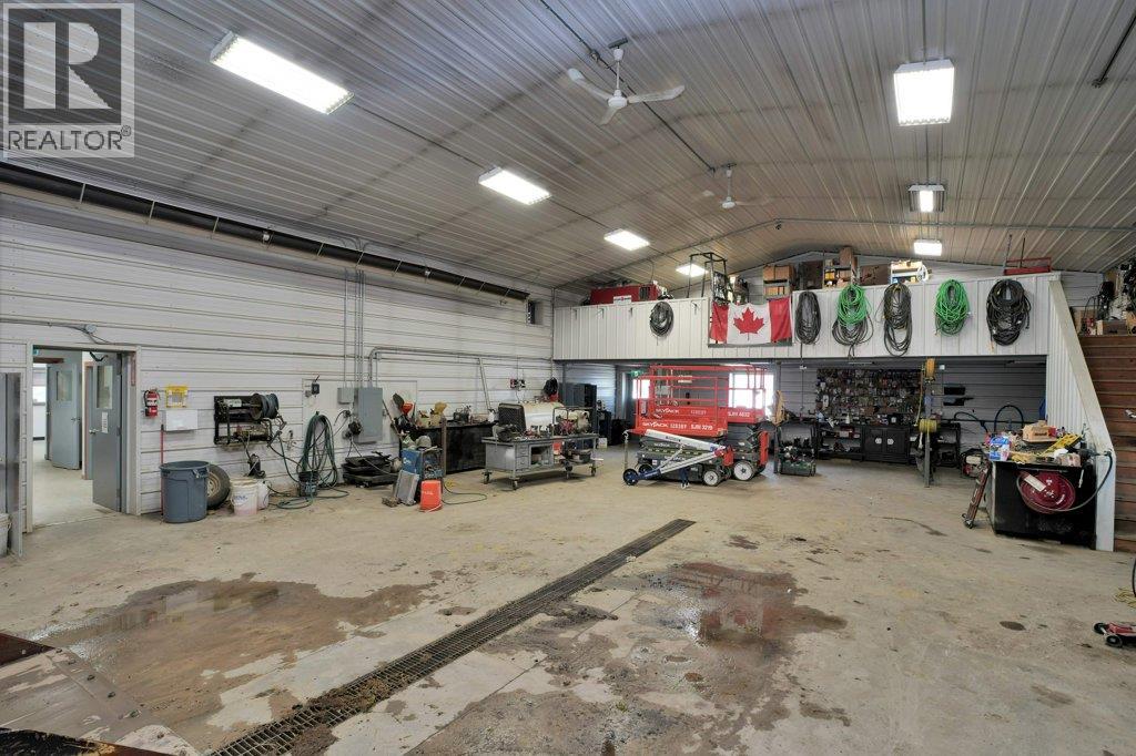 Excellent Industrial Property with Storefront, Offices & Shops on Over 2 Acres! Great Opportunity to Own this Well-Equipped Industrial Property Featuring a Spacious, Fully Fenced Lot and a Versatile Layout Ideal for a Variety of Operations. Situated on Just over 2 acres, this Property Offers a Storefront with Offices, Multiple Shop Spaces, and Extensive Yard Space for Equipment, Storage, or Future Development. The Storefront Area Includes a Welcoming Front Desk and Two Private Offices Behind, Perfect for Administrative Functions. The First Shop/Storage Area Measures 31'4" x 35' and Features an Additional Office and Bathroom. Between the Two Shop Sections, You'll Find a Kitchen Area, Washrooms, and a Dedicated Meeting Room, Offering Convenience and Functionality for Staff or Clients. The Larger Shop Spans 38' x 70'6" and Includes a Mezzanine Level, Adding Valuable Storage or Workspace Options. With Ample Power, Accessibility, and Room to Grow, this Property is Ideal for Trades, Fabrication, Fleet Operations, or as an Investment Opportunity. Don’t Miss this Opportunity to Secure a Functional and Flexible Industrial Property with Plenty of Room to Expand! (id:63190)