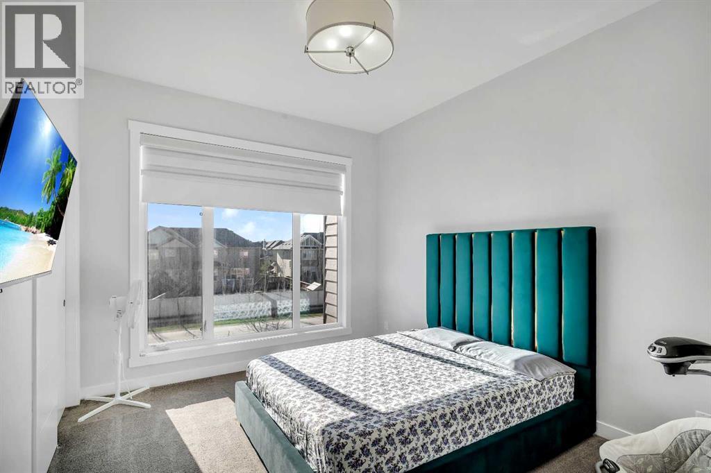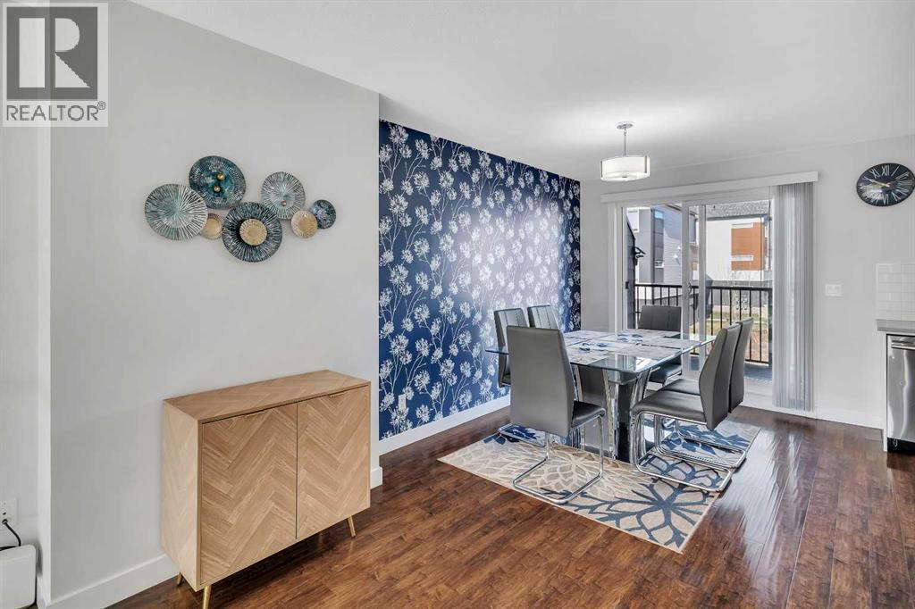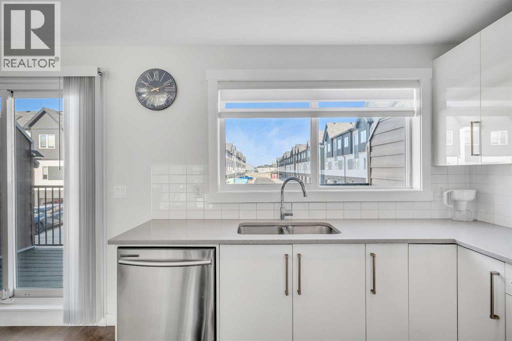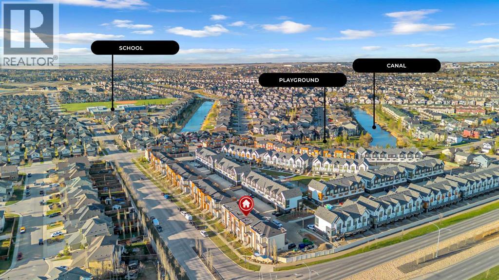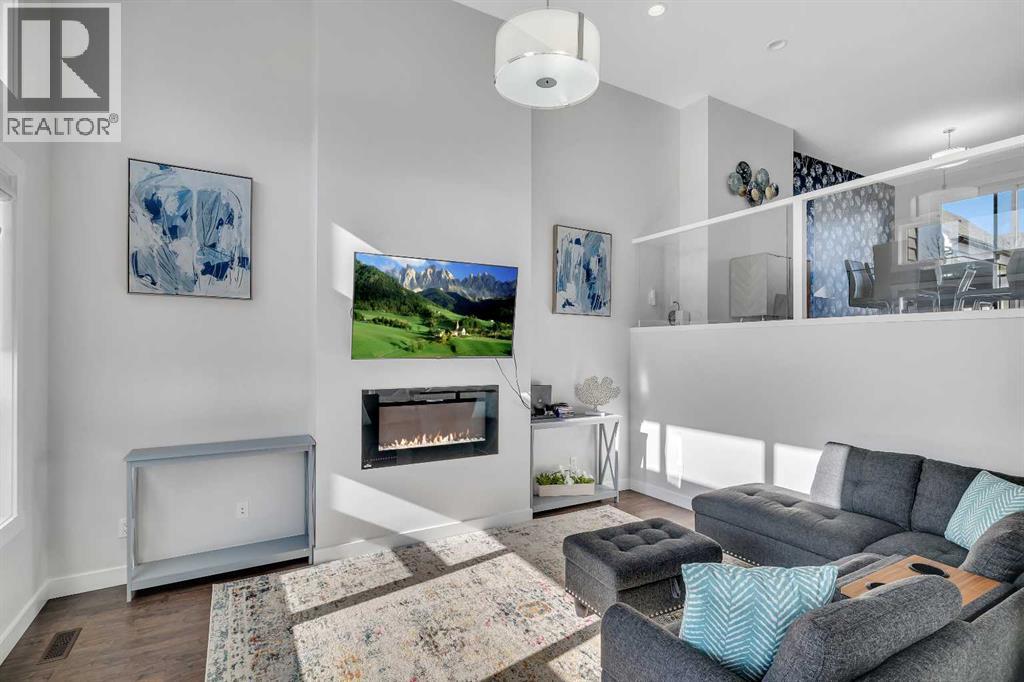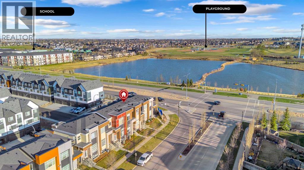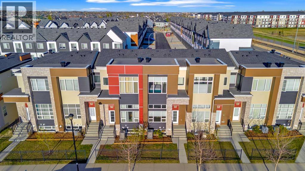 Your Airdrie haven awaits at 404-1530 Bayside Ave SW, a delightful townhouse nestled within the highly desirable Bayside community. Featuring 3 BEDS|2.5 BATHS| DOUBLE ATTACHED GARAGE| AIR CONDITIONER| FENCED FRONT YARD| EXTENDED BALCONY| GLASS RAILINGS| HIGH CEILINGS| OPEN TO ABOVE|, this home offers a wonderful living experience.Step inside to discover a perfectly designed main level, where the living room boasts an impressive open-to-above concept and soaring windows, bathing the space in warm natural light. For those moments of quiet relaxation, an electric fireplace adds a touch of cozy ambiance while you read or watch television.Ascend to the split-level upper floor, thoughtfully designed for all your daily dining needs. The open kitchen, complete with intelligently placed cabinetry offering ample pantry storage, is equipped with sleek stainless steel appliances to inspire your cooking needs. The adjacent dining space provides generous room for hosting large family meals and gatherings.Extend your living space outdoors onto the substantial balcony, enhanced with modern railings and offering a pleasant side view of the lake – a perfect spot to enjoy your afternoon tea with a smile. A convenient powder room completes this level.The upper floor also features a stacked laundry area with a contemporary washer and dryer unit for added convenience. Your primary bedroom serves as a true retreat at the end of the day, boasting an ensuite washroom with double vanity sinks. Two additional well-proportioned bedrooms on this floor can easily accommodate queen-size beds, and a full bathroom caters to the needs of a growing family.Benefit from the convenience of a double attached garage, along with an additional parking pad, providing space for up to four vehicles. The unfinished basement offers exciting potential for customization – envision a home office, a cozy den, or any other space to suit your unique lifestyle.Don't miss the opportunity to truly experience the ch arm of this wonderful townhouse. Book your personal showing today and take the first step towards making 404-1530 Bayside Ave SW your new address.Check 3D tour. (id:63190)