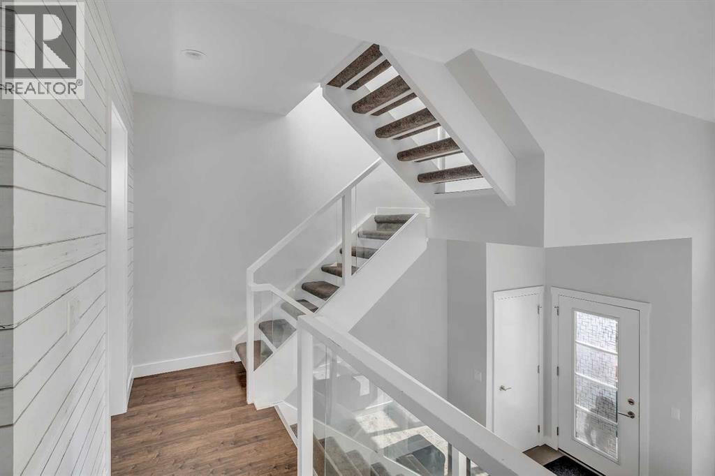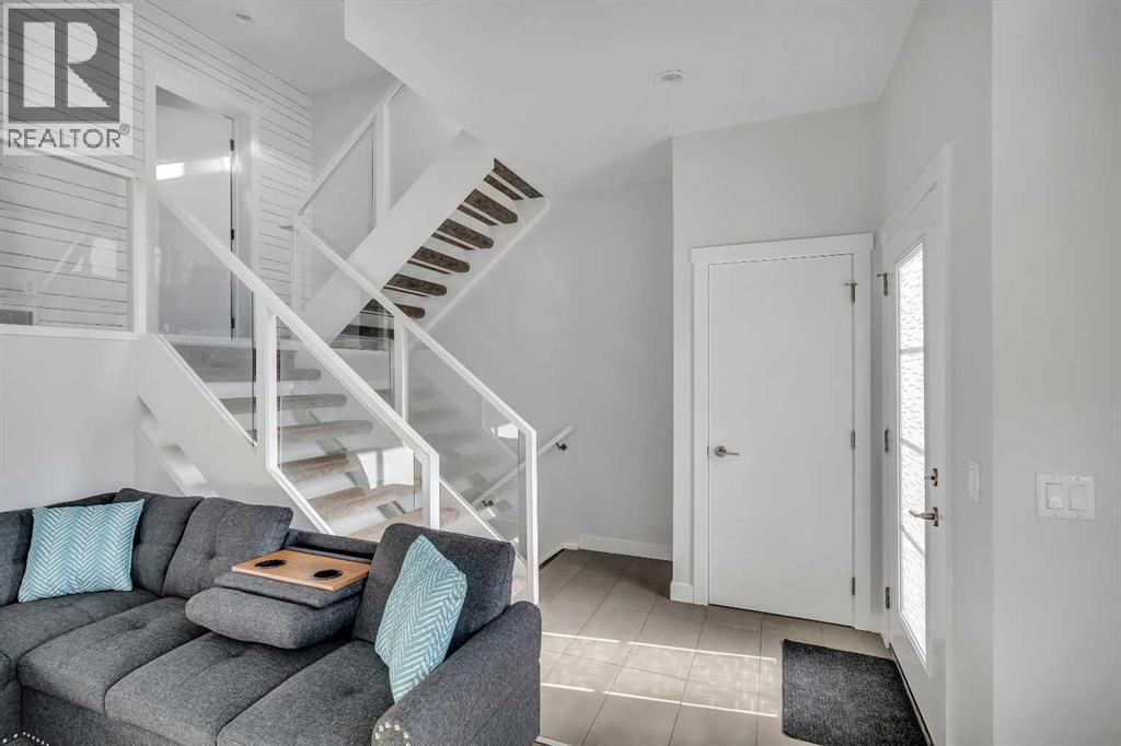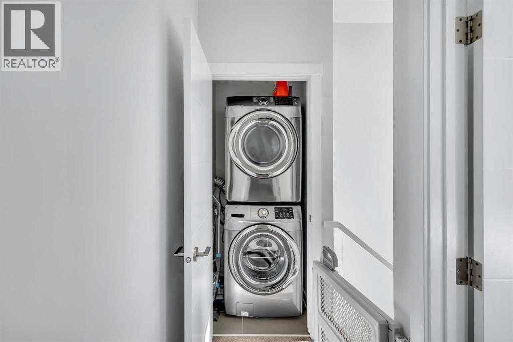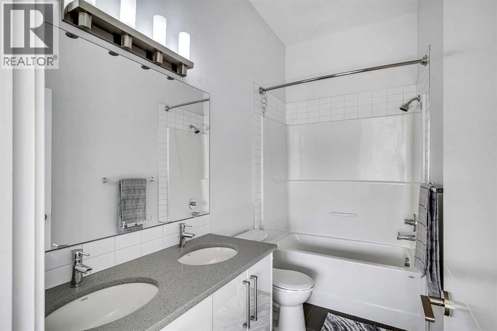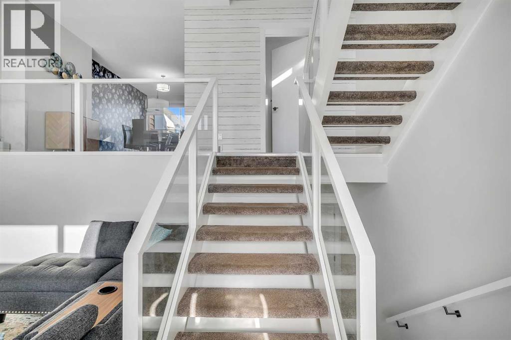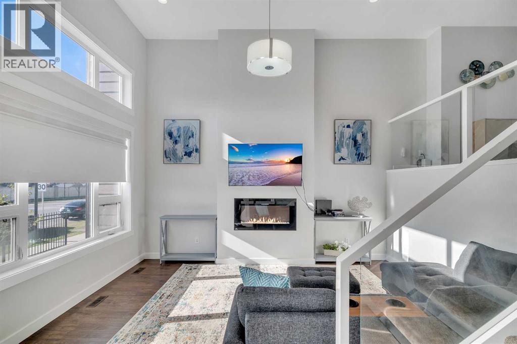 Your Airdrie haven awaits at 404-1530 Bayside Ave SW, a delightful townhouse nestled within the highly desirable Bayside community. Featuring 3 BEDS|2.5 BATHS| DOUBLE ATTACHED GARAGE| AIR CONDITIONER| FENCED FRONT YARD| EXTENDED BALCONY| GLASS RAILINGS| HIGH CEILINGS| OPEN TO ABOVE|, this home offers a wonderful living experience.Step inside to discover a perfectly designed main level, where the living room boasts an impressive open-to-above concept and soaring windows, bathing the space in warm natural light. For those moments of quiet relaxation, an electric fireplace adds a touch of cozy ambiance while you read or watch television.Ascend to the split-level upper floor, thoughtfully designed for all your daily dining needs. The open kitchen, complete with intelligently placed cabinetry offering ample pantry storage, is equipped with sleek stainless steel appliances to inspire your cooking needs. The adjacent dining space provides generous room for hosting large family meals and gatherings.Extend your living space outdoors onto the substantial balcony, enhanced with modern railings and offering a pleasant side view of the lake – a perfect spot to enjoy your afternoon tea with a smile. A convenient powder room completes this level.The upper floor also features a stacked laundry area with a contemporary washer and dryer unit for added convenience. Your primary bedroom serves as a true retreat at the end of the day, boasting an ensuite washroom with double vanity sinks. Two additional well-proportioned bedrooms on this floor can easily accommodate queen-size beds, and a full bathroom caters to the needs of a growing family.Benefit from the convenience of a double attached garage, along with an additional parking pad, providing space for up to four vehicles. The unfinished basement offers exciting potential for customization – envision a home office, a cozy den, or any other space to suit your unique lifestyle.Don't miss the opportunity to truly experience the ch arm of this wonderful townhouse. Book your personal showing today and take the first step towards making 404-1530 Bayside Ave SW your new address.Check 3D tour. (id:63190)