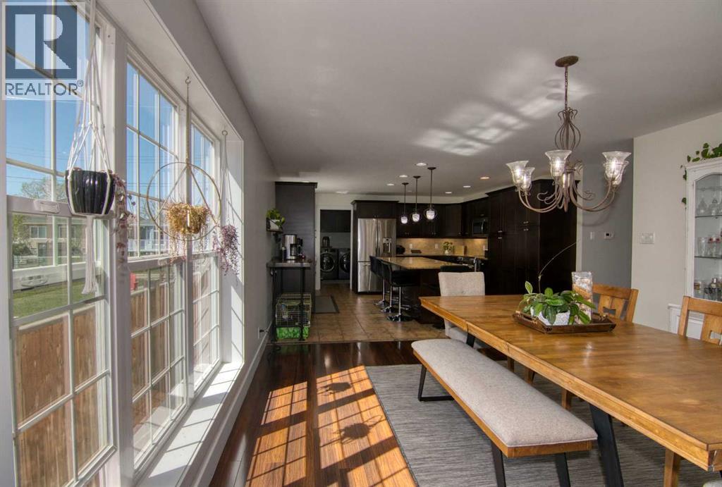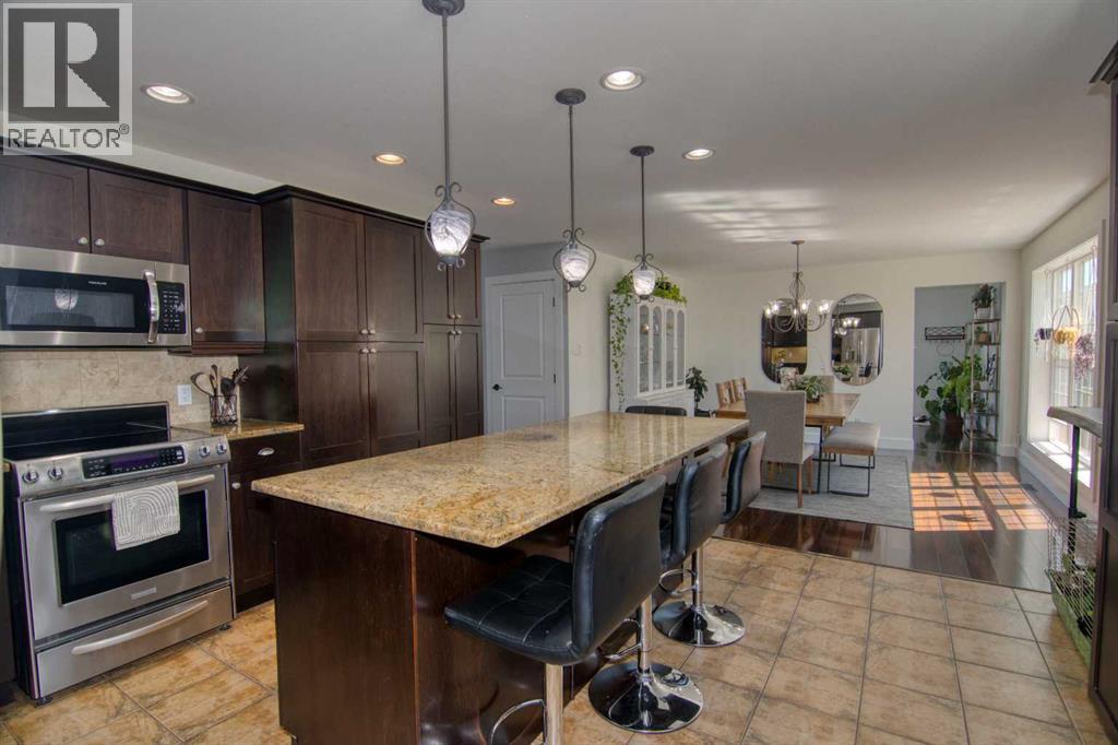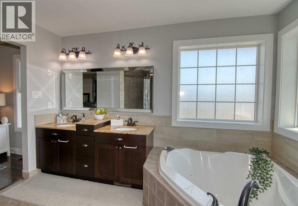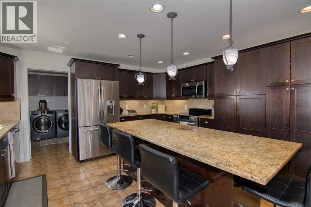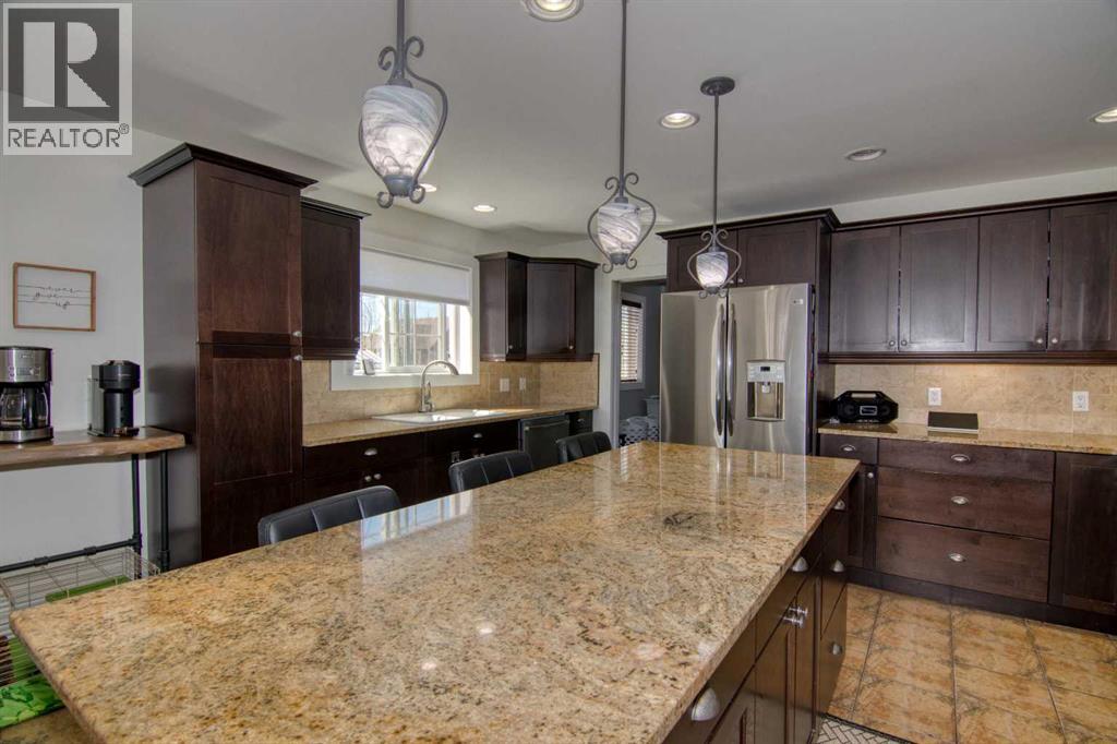 This stunning two-story residence offers the perfect blend of space, comfort, and style with over 2,600 sq. ft. of thoughtfully designed living space, plus a fully developed 1,200+ sq. ft. basement. With 6 spacious bedrooms, 4 full bathrooms, and a half bath, this home is ideal for growing families or those who love to host. Step through the vaulted front entry and feel immediately at home. The main floor features a private home office, a cozy living room, a bright plant or piano room, and a convenient laundry area. At the heart of the home is a beautifully appointed, expansive kitchen that flows effortlessly into the sunlit dining and living areas—perfect for entertaining. Outside, the fully landscaped double lot is a true oasis. Enjoy mature trees, a stone patio, a fully fenced yard, and a hot tub for ultimate relaxation. Whether it’s summer barbecues or quiet evenings under the stars, this backyard is built for making memories. Practicality meets luxury with an attached oversized heated double garage, ample parking, an exterior RV power outlet, central A/C, and a storage shed for added convenience. This exceptional property offers the perfect combination of small-town charm and modern living. Don’t miss your chance to make this stunning Magrath home yours! (id:63190)