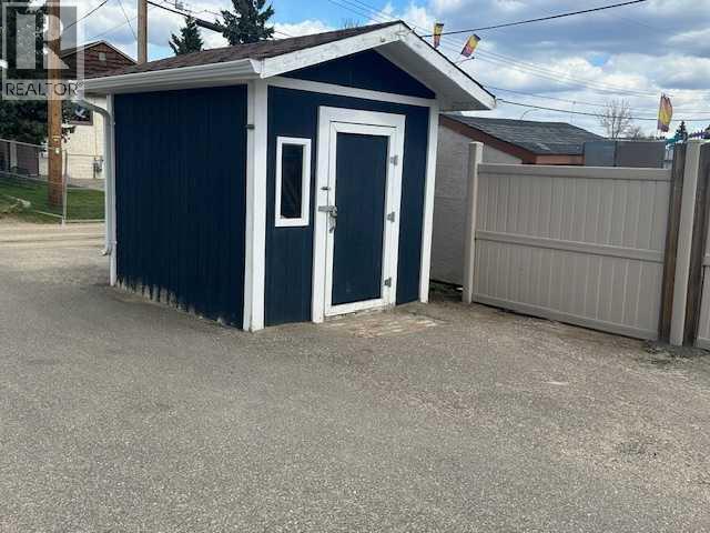Turnkey Commercial Building in Prime Whitecourt Location.Fully renovated with an effective age of 2017, this 1,190 sq. ft. commercial property is ideally located on one of Whitecourt’s main streets, offering high visibility and easy access. Zoned for business or retail use, the building features two self-contained units—perfect for running multiple businesses or generating rental income.The main floor includes four spacious rooms, a 2-piece bathroom with laundry hookups, a staff kitchen with an Italian tile backsplash, and durable tile flooring throughout. The welcoming entryway features garden doors and the original chimney, preserved to add unique character. Central air conditioning, excellent natural light, and plenty of storage complete this stylish and functional space.The fully finished basement suite includes two rooms, a kitchen, a 2-piece bathroom, and a large meeting or common area. It’s finished with vinyl plank adhesive dry core commercial-grade flooring for durability and easy maintenance. The utility room also features a backup preventer system.Additional features include:wheelchair-accessible ramp,large parking lot at the rear,storage shed,back alley access,located next to a park.Tastefully updated and move-in ready, this property offers an exceptional opportunity in the heart of Whitecourt for business owners or investors alike. Renovations include: Shingles (2015), front foyer addition, side addition, rear addition (entry to Unit B) & composite decking (2017), new wall insulation, new doors, CAT 6 wiring, lights and electrical upgraded, flooring throughout, newer framing (2x6), new drywall, new trim & plumbing (2017). Also in 2017: Exterior - Hardy Board siding, exterior windows, rear deck and ramp, gas line meter upgraded, shingles on additions, AC, ducting, HWT, nat. gas furnace and sewer back up preventer, stamped concrete and pavement. In 2018: Basement unit: drywall and T&G wood, plumbing, flooring and drycore, electrical, insulation, framing (2x6), doors, lighting, CAT 6 wiring, refurbished cabinets, ceiling (insulated and T&G wood). (id:63190)