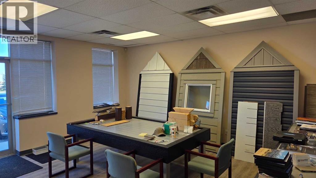 Affordable and practical industrial/ warehouse bay located in the riverside heavy industrial park. Current use is siding contractor, tenant since early 2021. Oher Tenants in building include plumber, flooring company, HVAC contractor and coffee services company. Open front office/ display area approx. 500 SF and 1000 SF of warehouse; with open mezzanine above office area. two washrooms (one shop and one office area). space was mostly repainted in 2021. Warehouse-hi Bay halide lighting 14 x 12 overhead door, radiant tube heater in warehouse area. Front paved parking, back yard area is partially paved, remaining yard is graveled. Office area is air conditioned, vinyl plank flooring ideal for open office and or display. 2 x4 recessed florescent tube lights in t bar Ceiling grid. Common area costs estimated for 2026 at $5.50 per square foot. ($656.00 per month) Tenant has own electrical and gas meter, Telus is service provider for phone and internet. (id:63190)