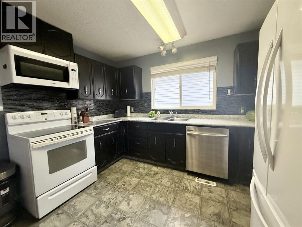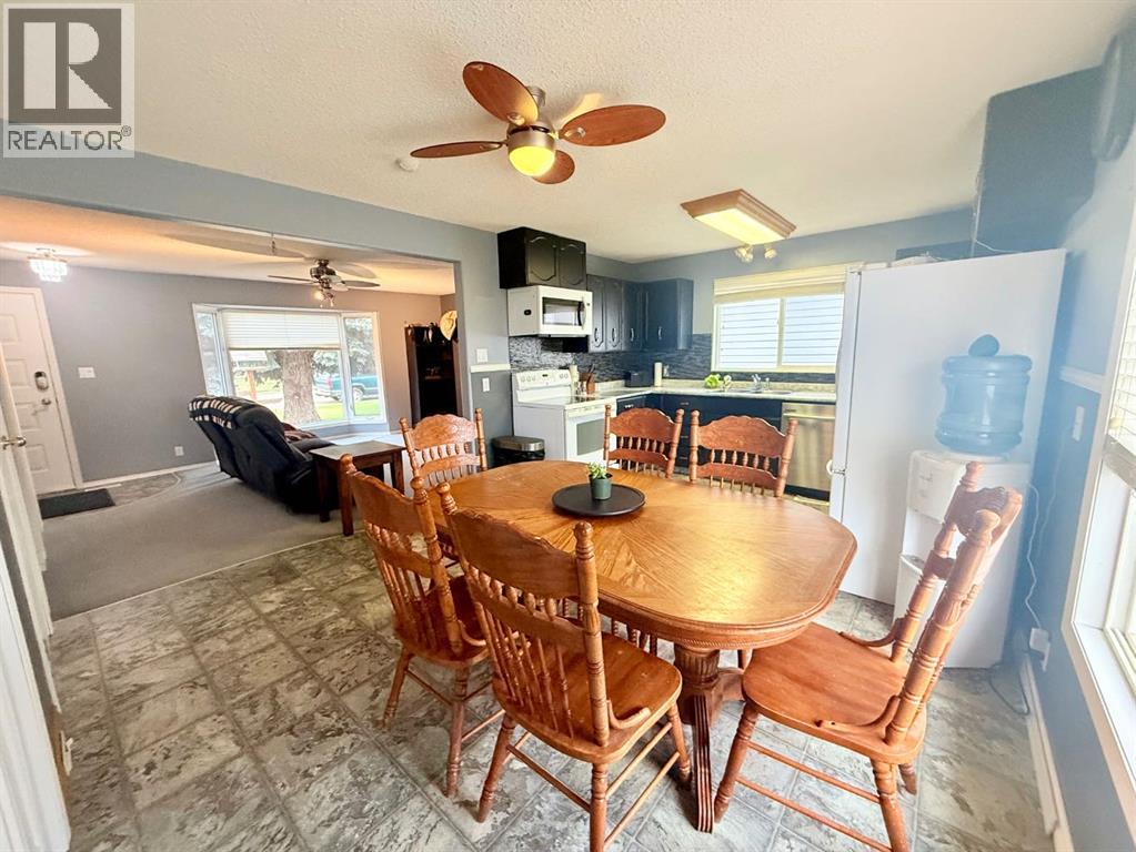This well-maintained 3-level split in Viking offers incredible value and space for the whole family. As you approach the home, you're greeted by a beautifully front yard featuring a mature evergreen, a lush lawn, and a convenient roadside sidewalk. Step inside to a welcoming entry that flows into the spacious living room, complete with a large bay window that floods the space with natural light—perfect for enjoying neighborhood views or birdwatching. The main floor also hosts a bright dining area and a spacious kitchen with ample counter space, ideal for family meals and entertaining. A back door off the dining room provides easy access to the large backyard. Upstairs, you'll find a generously sized primary bedroom with a walk-in closet, plus two additional bedrooms—perfect for kids, guests, or a home office. The renovated 4-piece bathroom boasts a fresh, modern look with stylish tile work. The lower level features a huge rec/games room, a beautifully updated 3-piece bathroom, a storage room, and a laundry area within the mechanical room. Need extra storage? The crawl space beneath the main floor is finished with plywood flooring to give you plenty of additional space. Outside, the expansive backyard is built for enjoyment with a cozy firepit, a covered sandbox, and a single parking pad. But the star of the show is the massive 34x24 heated garage—ideal for vehicles, projects, or a workshop. Viking is a vibrant community offering a K-12 school, hospital, golf course, multiplex, and stunning night skies free from city light pollution—perfect for stargazing and catching the Northern Lights. Be sure to check out the 3D virtual tour to fully appreciate everything this fantastic property has to offer! (id:63190)
