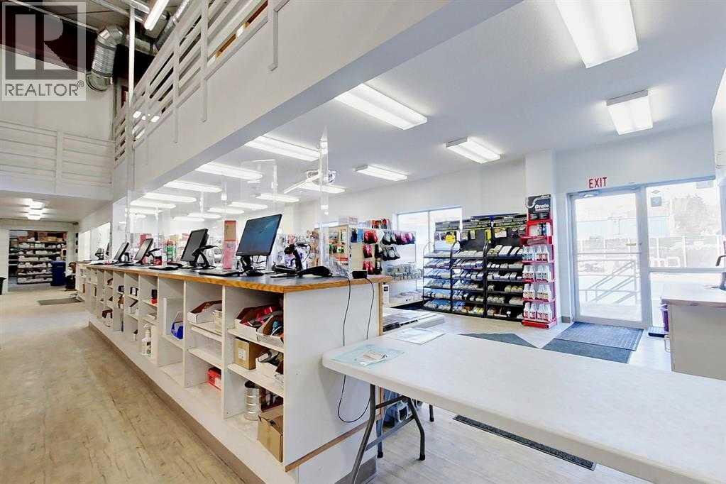 Centrally Located Warehouse with Office SpaceDiscover this exceptional warehouse ideally suited for a distribution center in the heart of Red Deer. Boasting dock-level access and expansive shelving, this facility is tailored for seamless operations. The front area features a customer reception service counter, complemented by a mezzanine offering three offices, a file room, and a staff room. With 20-foot ceilings, the warehouse provides ample vertical space for storage and maneuverability. Outside, a spacious fenced yard accommodates semi trailers, ensuring efficient loading and unloading. Centrally located in Red Deer, this warehouse enjoys convenient access to major transportation routes, enhancing logistical efficiency. Explore the potential of this well-appointed warehouse, perfectly poised to support your distribution needs. (id:63190)