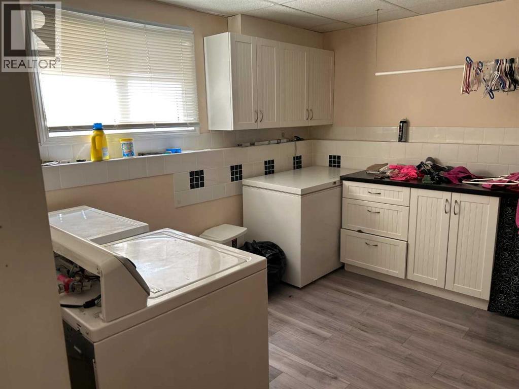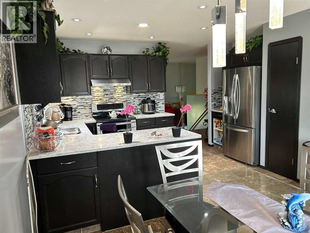 WELL MAINTAINED HOME 1111 LARGE CORNER LOT. Great Tile Floor Entrance leading to great living room and impressive open Kitchen/Dining area, Peninsula Cabinets with Quartz counter top Mosaic Glass Tile backsplash. Pantry. Large Maintenance free Deck and Railing with below deck storage ,Large Master Bedroom with room for King Sized Bed with sliding Mirror Doors .Large Family room in Basement with wet bar area and another large bedroom ,also 3 piece bathroom and Laundry room big enough for another fridge or deep freeze .NOTE THE 10X13 Laundry Room Area would be Quite Easy to use as a a4th Bedroom !!! There is infloor heat in Basement and double attached garage .Check Out the Fancy Metal Roof ,good for Many Many years. Seller will supply Title Insurance in LIEU of RPR at closing . (id:63190)