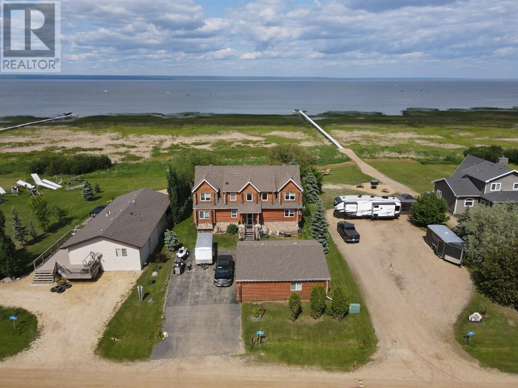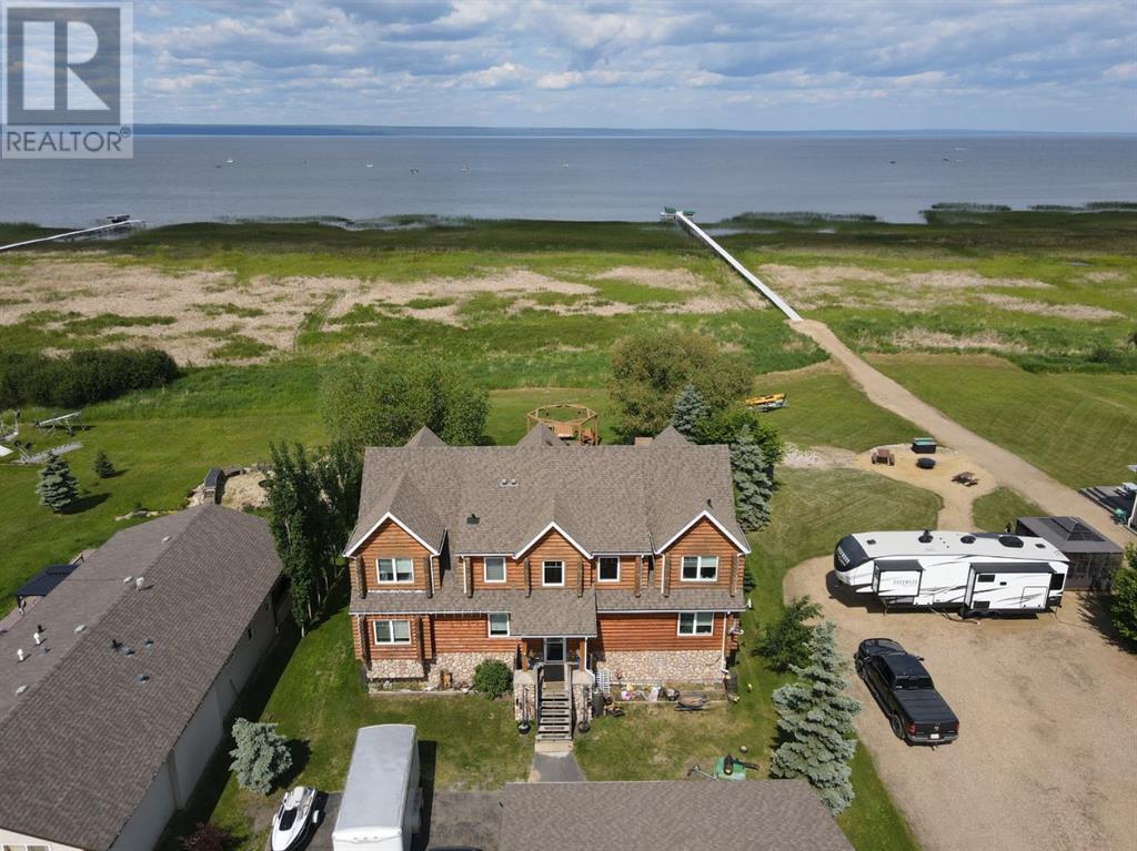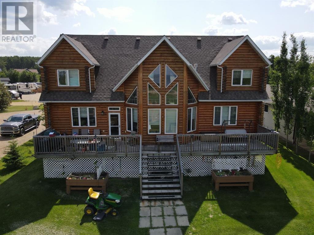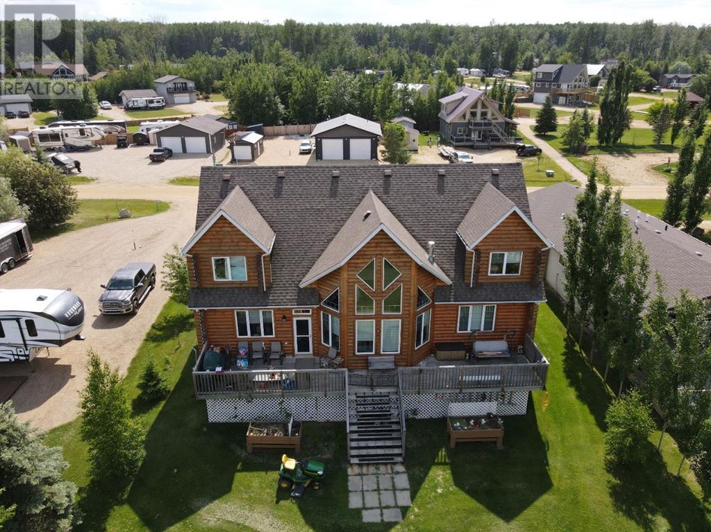 Nestled on the serene South Shores of Lesser Slave Lake, this exquisite Lakefront Log Home offers 2,990 square feet of luxurious living space with breathtaking views. Featuring 5 bedrooms and 4 bathrooms, this home is designed for both comfort and elegance. This stunning main-floor primary retreat features his and her closets flanking the entrance to the luxurious 5-piece ensuite. Enjoy breathtaking, unobstructed views of the lake—a perfect blend of elegance and natural beauty. The vaulted living room ceiling enhances the open-concept space, while expansive windows showcase stunning lake vistas. The gourmet kitchen boasts maple cabinets, stone countertops, and high-end Heartland Appliances: (antique-style stove and fridge). A butler’s pantry off the kitchen includes full laundry facilities, a sink, ample storage, and a full-size window for natural light. Rich hardwood floors flow through the living areas, complemented by a striking stone fireplace facade. The fireplace has two faces, one for the bedroom and one that is the centerpeice for the living area. The fully developed basement offers versatility with a wet bar (complete with cabinets and sink) and space for a pool table, a home theatre, and more, along with a large 3-piece bathroom. Step outside to the 50-foot main-level deck, perfect for soaking in the panoramic lake views. A detached heated garage with a 3-piece washroom. A built-in fire pit and pergola with swinging chairs create an idyllic outdoor retreat, where you can experience lakeside luxury in this crafted log home, where every detail is designed for relaxation and entertaining. (id:63190)