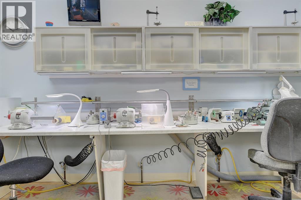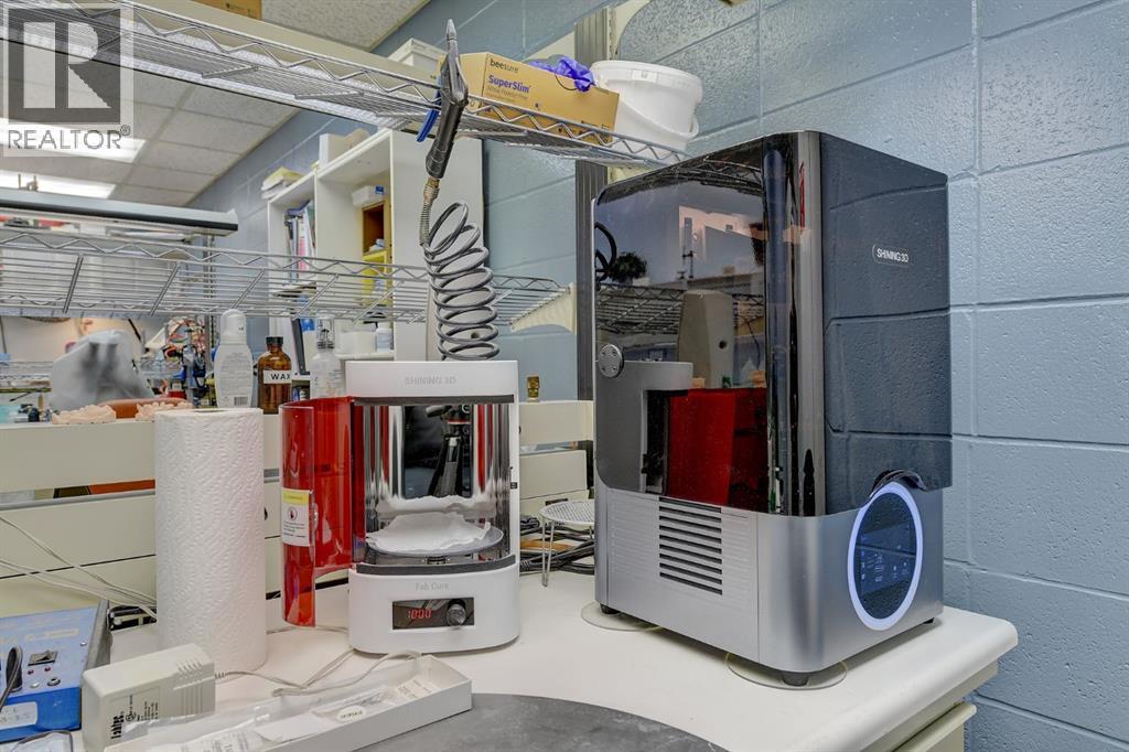 A rare opportunity to own a profitable, well-established dental lab and a centrally located commercial building in Grande Prairie, just steps from the Farmers’ Market. Wireworks Dental Laboratories has been operating since 1999, serving dentists across Canada with custom orthodontic appliances and partial dentures.With four full-time staff and a strong reputation, this niche business is both respected and income producing. The owner is willing to stay on short-term to assist with training and transition, making this a rare turnkey opportunity. The building offers 3,300 sq ft on the main floor, currently divided into two separate units. One is home to Wireworks and includes a front reception area, multiple private offices, kitchen, bathroom, and rear garage. The second unit is leased to a local groomer for $1,575/month (incl. GST), with a lease in place until February 2026. Downstairs, the 1,800 sq ft basement is accessible from both the front entrance and rear garage, offering excellent flexibility for storage, additional workspace, or future development. Included in the sale is a full suite of dental lab equipment and furnishings: a dental chair, four lab workstations, digital scanner and printer, investment system, vacuum mixer, casting equipment, welders, polishing and trimming tools, and more. With everything in place, a new owner can step in with confidence. The building is constructed with concrete block on a concrete foundation, features air conditioning and a flat roof, and was originally designed for a second storey, offering long term development potential. Two dedicated parking spots are included, with ample free public parking directly adjacent and behind the Farmers’ Market. Whether you're a dental professional, investor, or entrepreneur looking for a niche business with real staying power, this property offers strong financials, valuable assets, and room to grow. Call your commercial REALTOR® today to arrange a private showing. (id:63190)