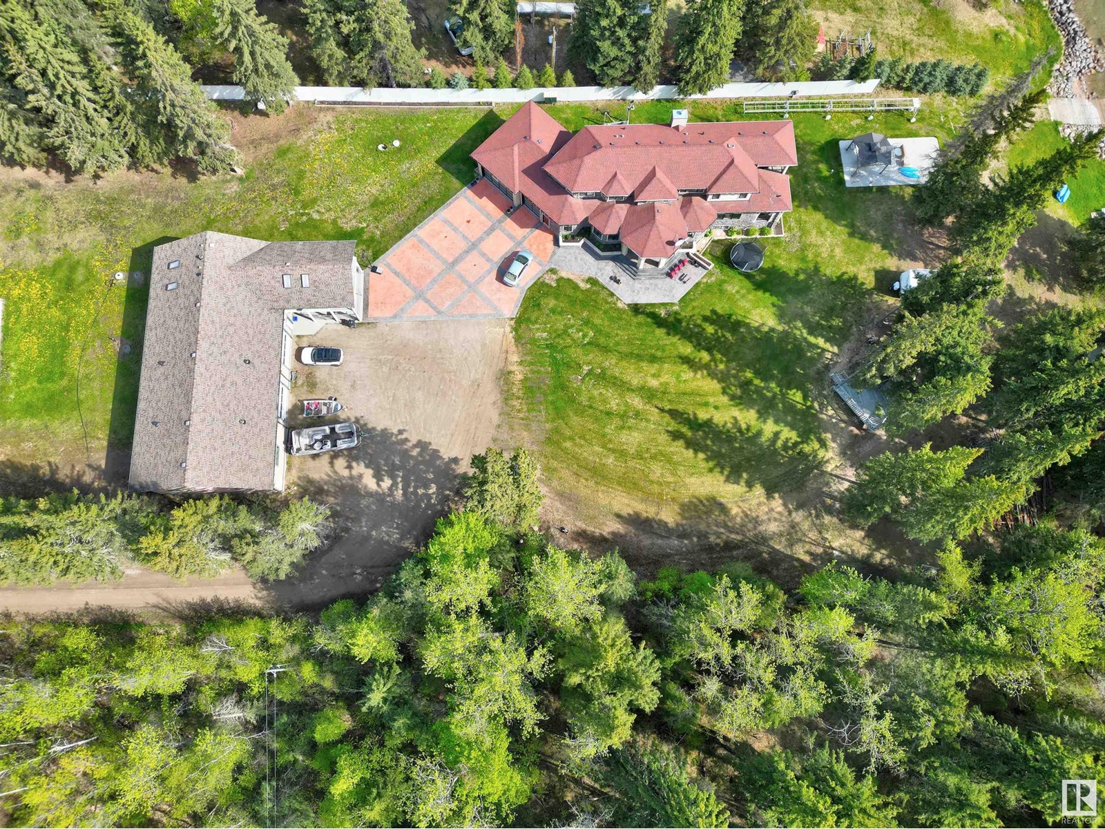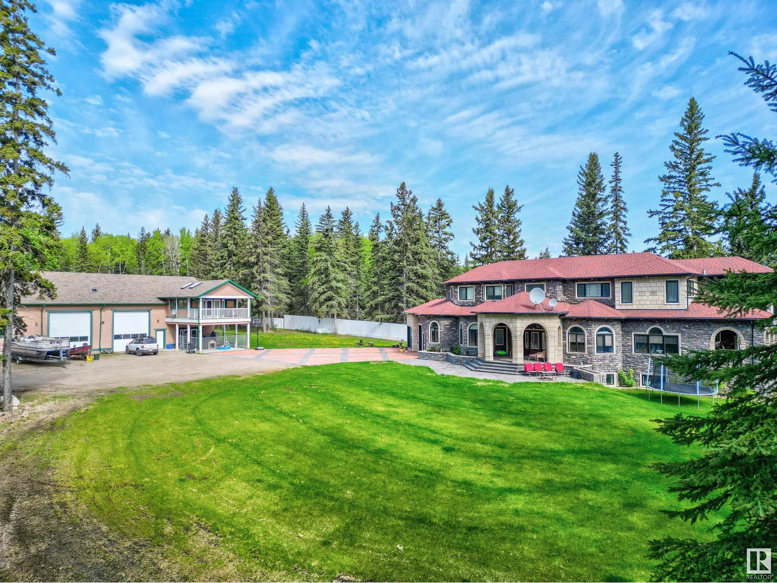 Sacrificial Sale! Build cost over $2 million & another $1 million for the land, plus plus plus!! This property has 2 homes with over 190' of lakefront! The main home on the lake is a mansion, with 6 bedrooms, 6 bathrooms steam showers or tubs, 3 sets of laundry, a massive 17'x23' master bedroom with 12'x13'.6'' deck & a 20' x 8' deck off the dining room, both overlooking the lake! High-end finishing throughout: granite countertops; high-end tile; stamped concrete parking pad; multilevel in-floor heat; two full kitchens; stove top, fridge, & sink in the master bedroom, a corner gas fireplace, Air Conditioning, & 5 piece ensuite. The main floor has a wood fireplace, there is , a separate sitting area, a meeting room, a chef's kitchen, a majestic dining area, surround sound in the home, theatre room, & a thermostat on each floor. The home has a 30'x40' triple car garage, & the original home, with attached shop, is 80' x 40'. There is also a detached 12'x24' single car garage! Over 5000 sqft of living space! (id:63190)