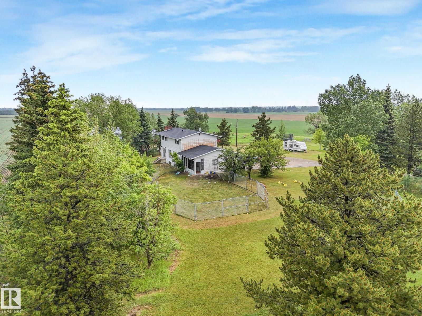 Prime North Edmonton Location – 40 Acres on Pavement Exceptional 40-acre parcel ideally situated on pavement just off 66 Street and Anthony Henday Freeway. The west side features mature trees offering privacy and natural beauty, while the east half is in productive crop. Includes an older two-story home with full services and an older shop. Perfect setting for estate living, a hobby farm, or a home-based business. (id:63190)