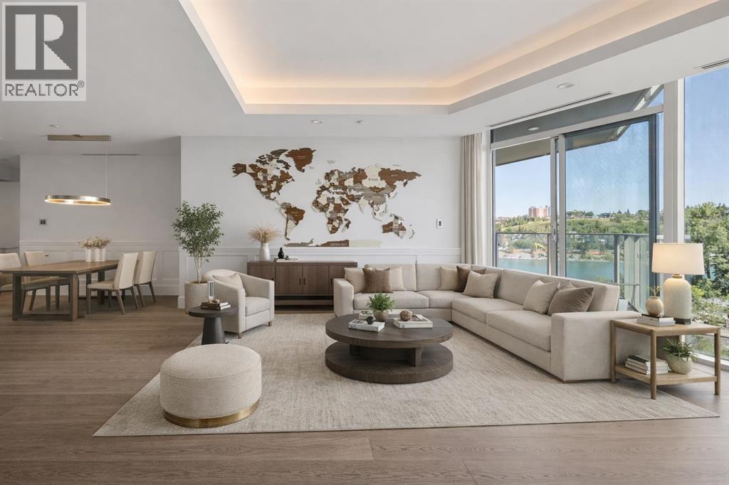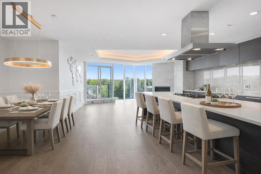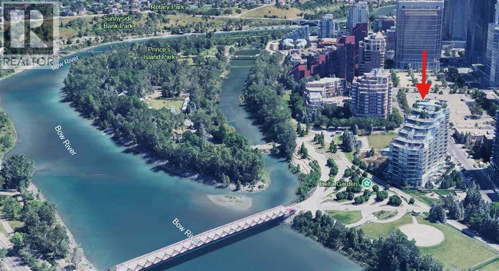 Welcome to The Concord – Calgary’s pinnacle of luxury living, perfectly situated along the Bow River, beside the Peace Bridge and Prince’s Island Park. This iconic residence sets a new standard for refinement, sophistication, and lifestyle. Arrive in style through the secure underground parkade, where your vehicle is pampered with a private wash before settling into your titled, fully upgraded 2-car private garage featuring custom cabinetry, epoxy floors, EV connection, and Wi-Fi connectivity. Take your private elevator directly to your riverfront unit, where floor-to-ceiling windows frame captivating Bow River views. The open-concept living area is adorned with wide-plank hardwood floors, timeless wainscoting, and elegant wallpaper, centered by a sleek gas fireplace. The chef-inspired Poggenpohl kitchen features Bianco Statuario marble, Miele appliances, and an oversized fridge—seamlessly blending into the spacious living and dining area. Step onto the oversized balcony for breathtaking park and river views. The master bedroom offers panoramic views, a custom Poliform walk-through closet, and a spa-inspired ensuite with a 66” freestanding tub, 10mm glass shower, double vanity, and in-floor heating. A second bedroom, marble-clad main bath with soaker tub, and a glass-enclosed den complete the thoughtful layout. Smart home automation, Control4 system, motorized blinds, built-in speakers, security cameras, and designer lighting offer effortless comfort and peace of mind. Exclusive Concord amenities include: Private winter skating rink with Zamboni; Outdoor kitchen with BBQ & firepits; Social lounge with full bar & kitchen; Guest suite; 24-hour concierge; Gym + yoga studio; Car wash bays. Experience riverside luxury living redefined - book your viewing today! (id:63190)
