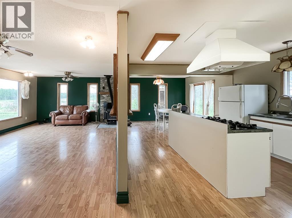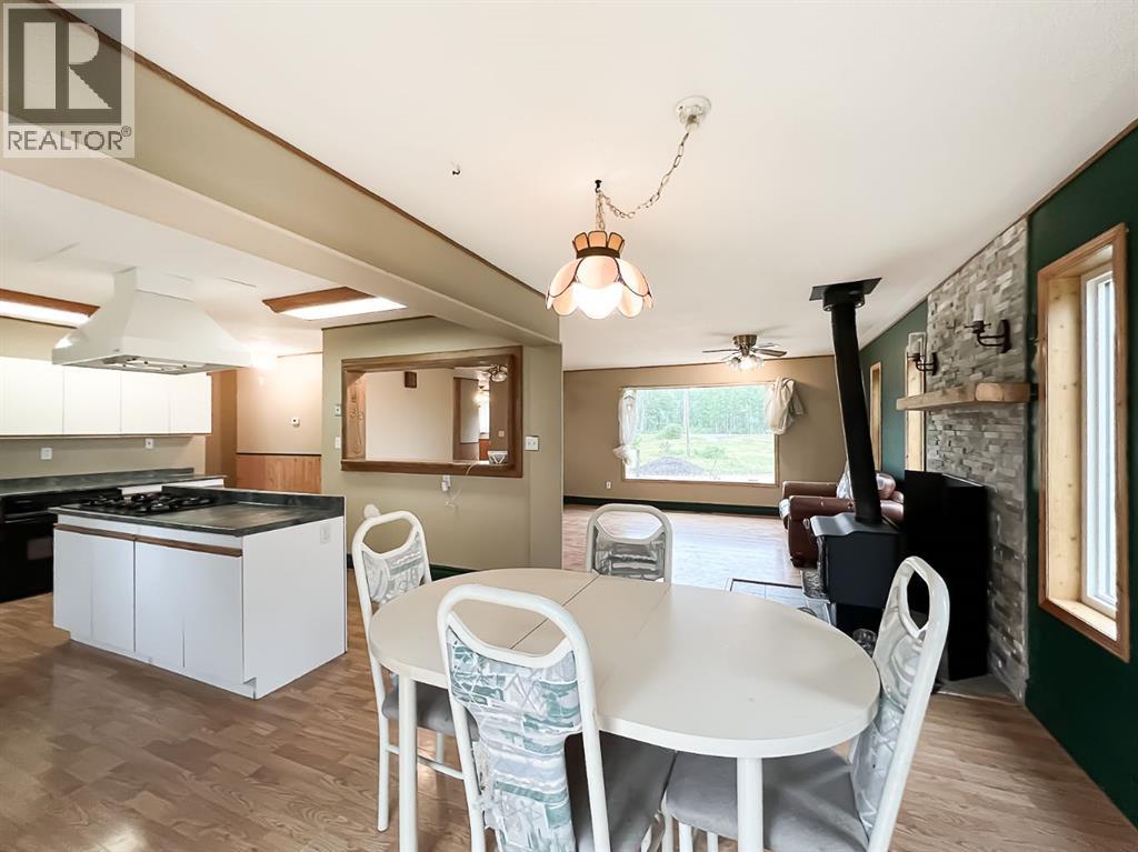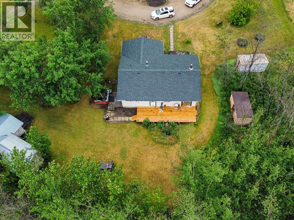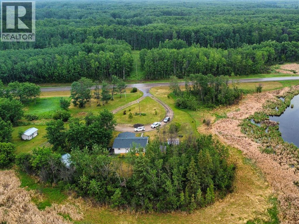 Nestled on 11 private acres of mature trees, this beautifully updated two-bedroom home offers the perfect blend of rustic charm and modern comfort. Step inside to an inviting open-concept layout with a spacious living room that flows effortlessly into the kitchen and dining area—complete with a cozy wood-burning stove to warm up chilly evenings. The kitchen features a central island, ample countertop space, and a generous amount of cabinetry. Sliding patio doors off the dining area open to a brand-new deck, ideal for entertaining or simply enjoying the serene surroundings. The 4-piece bathroom includes a jetted jacuzzi tub for the ultimate relaxation, and a practical laundry area and boot room add everyday convenience. Recent upgrades include new siding, shingles, several new windows, and a wood shed. Two additional storage sheds provide ample space for your tools and gear. Located just 15 minutes from McLennan and only minutes from Winagami Lake, this peaceful property is a dream for outdoor enthusiasts—perfect for fishing, boating, or soaking in the natural beauty. Move-in ready and full of potential, this country retreat is a must-see! (id:63190)