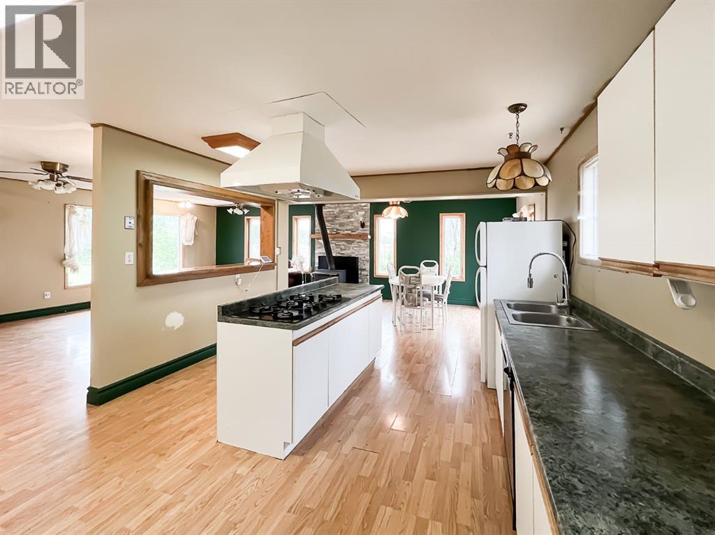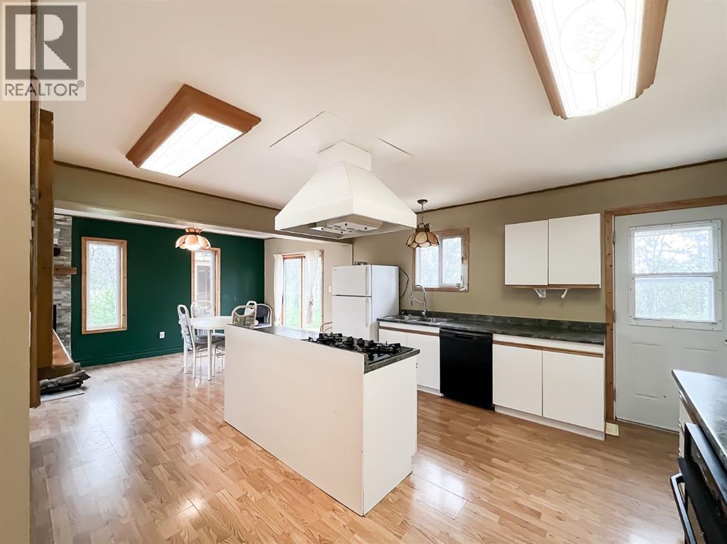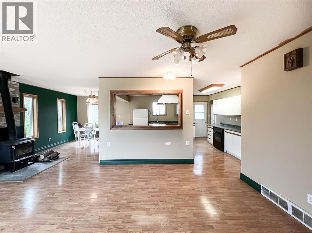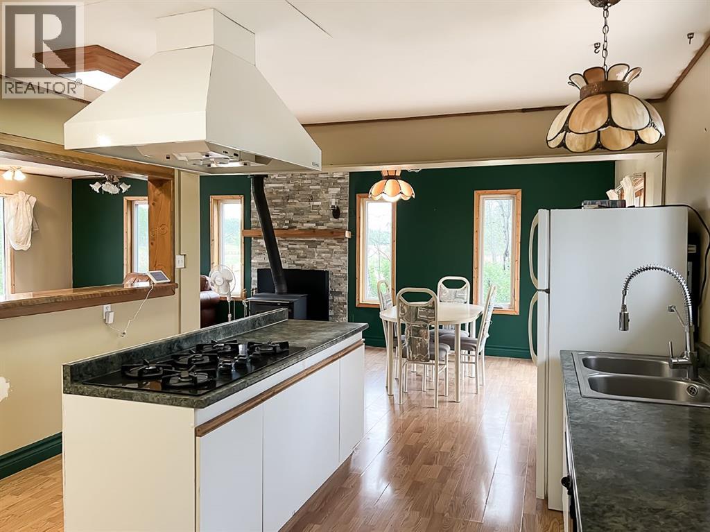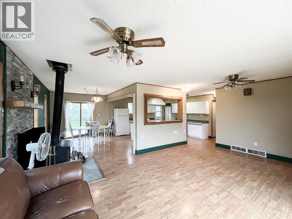 Nestled on 11 private acres of mature trees, this beautifully updated two-bedroom home offers the perfect blend of rustic charm and modern comfort. Step inside to an inviting open-concept layout with a spacious living room that flows effortlessly into the kitchen and dining area—complete with a cozy wood-burning stove to warm up chilly evenings. The kitchen features a central island, ample countertop space, and a generous amount of cabinetry. Sliding patio doors off the dining area open to a brand-new deck, ideal for entertaining or simply enjoying the serene surroundings. The 4-piece bathroom includes a jetted jacuzzi tub for the ultimate relaxation, and a practical laundry area and boot room add everyday convenience. Recent upgrades include new siding, shingles, several new windows, and a wood shed. Two additional storage sheds provide ample space for your tools and gear. Located just 15 minutes from McLennan and only minutes from Winagami Lake, this peaceful property is a dream for outdoor enthusiasts—perfect for fishing, boating, or soaking in the natural beauty. Move-in ready and full of potential, this country retreat is a must-see! (id:63190)