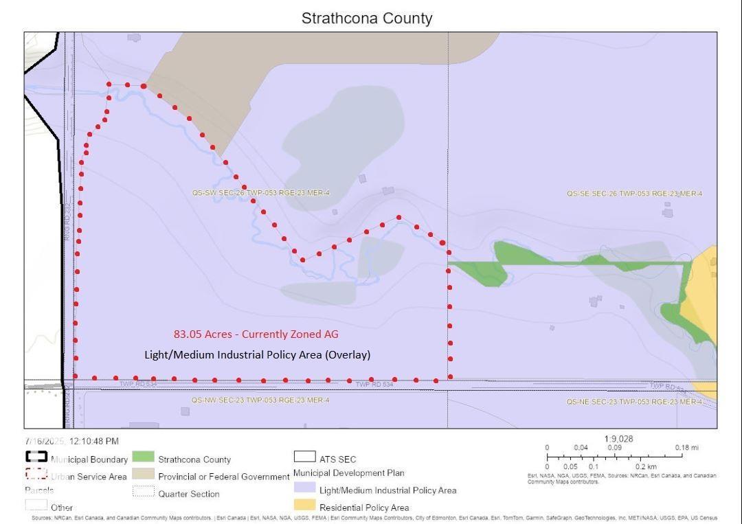 83.05 acres nestled in the heart of Strathcona County's Light/Medium Industrial Policy Area. There is huge potential with this revenue generating property. Annual pipeline revenues from the Heartland Pipeline corridor that runs along the NW edge of the property generate over $15,000 annually. Currently zoned Agricultural General (AG), there is potential for rezoning to Direct Control, Light or Medium Industrial for many permitted and discretionary uses. Located north of Aecon Infrastructure and at the corner of TWP 534 and Sherwood Drive, this is a prime location! (id:63190)