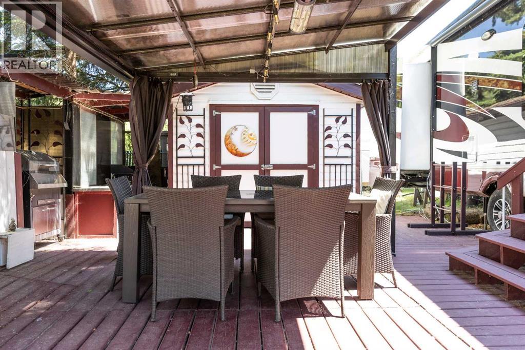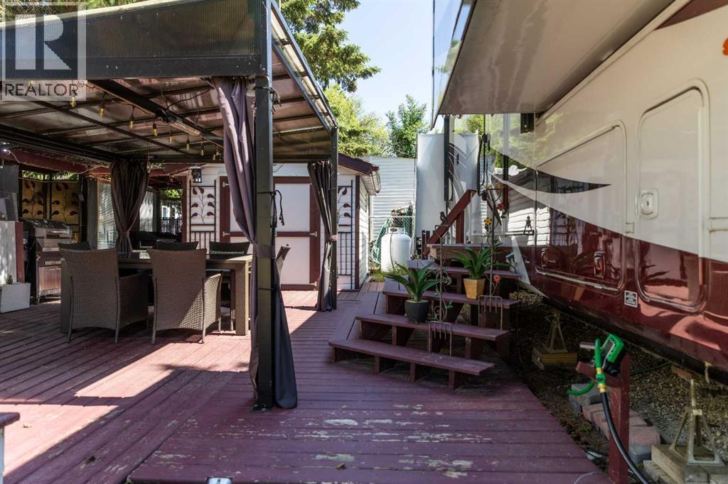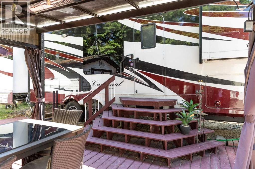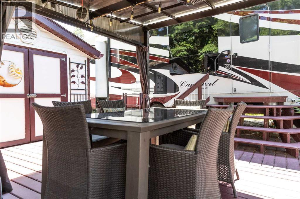 Imagine, a short relaxing drive; enjoying the scenery on your way to your very own summer oasis. Turning off the highway and taking in big, beautiful lake views and then arriving at this tranquil haven – completely turn key and ready to melt your stresses away. Low maintenance and ready to enjoy when you are, the massive deck is the perfect blend of sunshine and shade. Turn on the patio lights and grill your favourite dishes in the well designed outdoor kitchen space. The multi-purpose shed features power, ventilation and lighting; ready for you to make it your own. Enjoy a glamping style retreat? Step into the luxurious Cardinal by Forest River with tall ceilings, full sized fridge, gas stove, spacious living room, cozy fireplace and big screen tv. The 3 piece bathroom off the bedroom with comfortably sized walk in shower truly makes it feel like home. Steps from the marina, beach, playground, local community events at Jorgy’s Hot Spot and more - #3 RV Heaven is where your lakeside story begins! (id:63190)