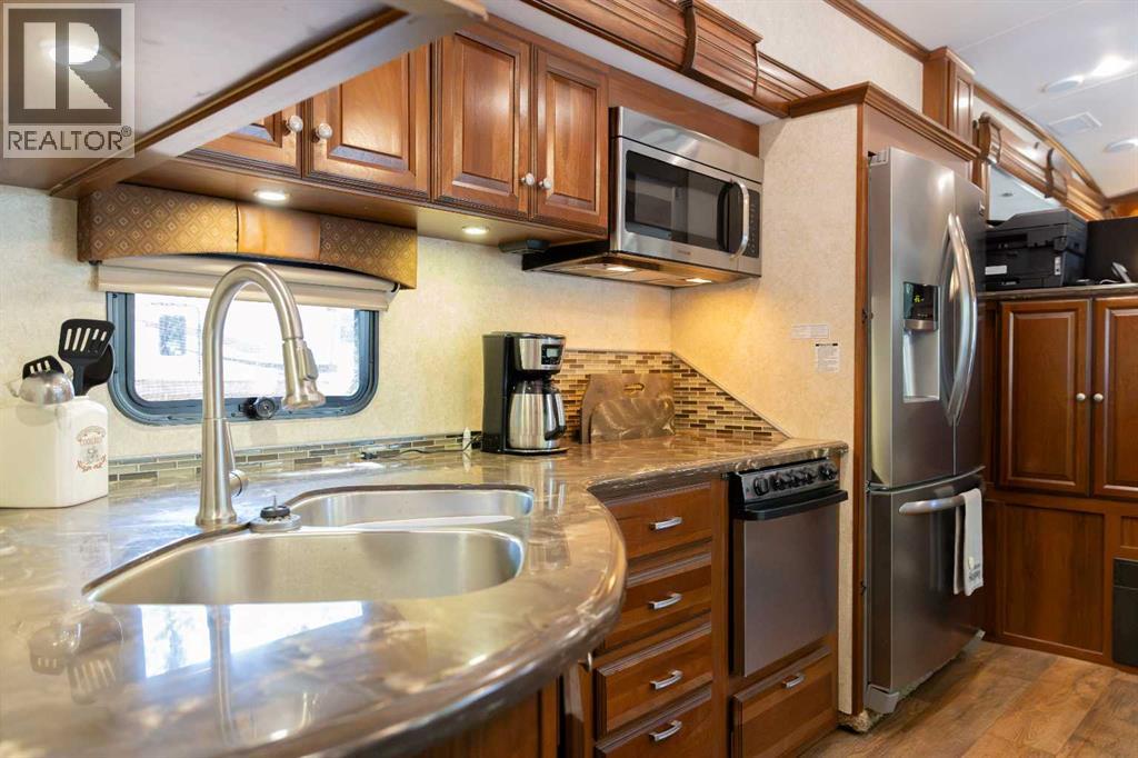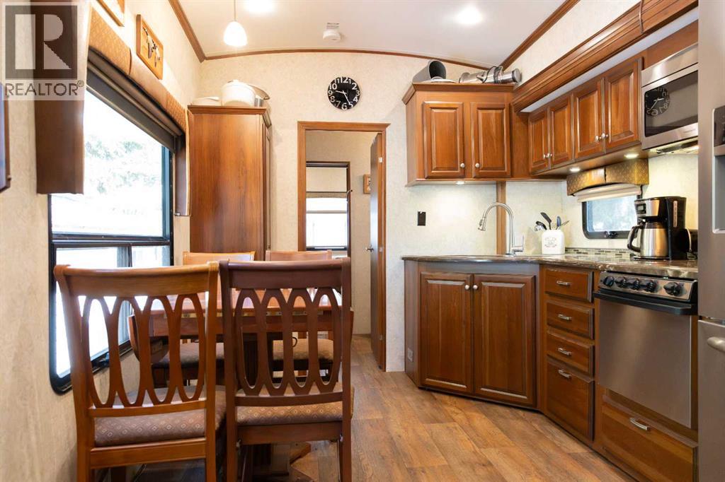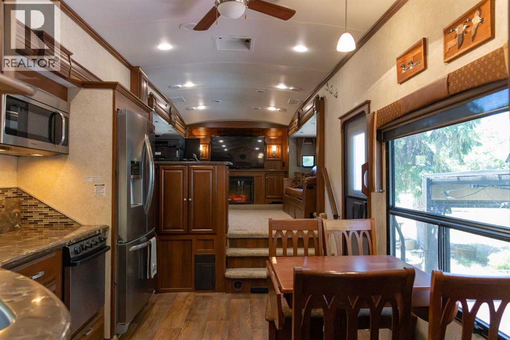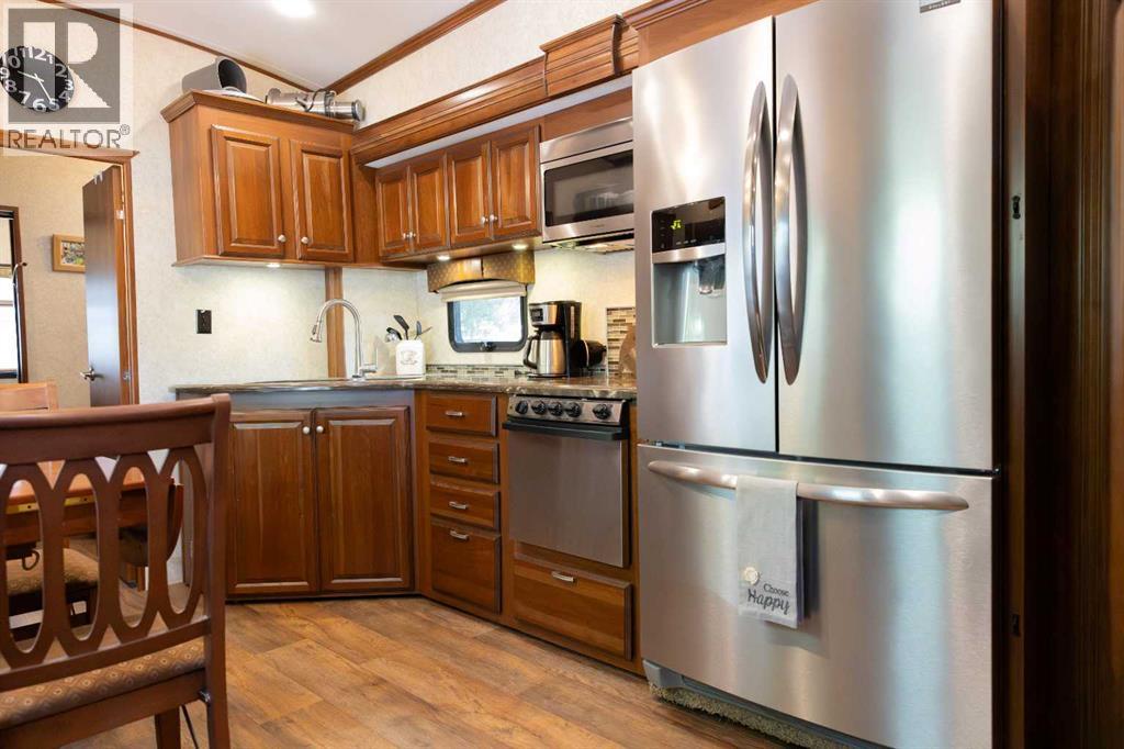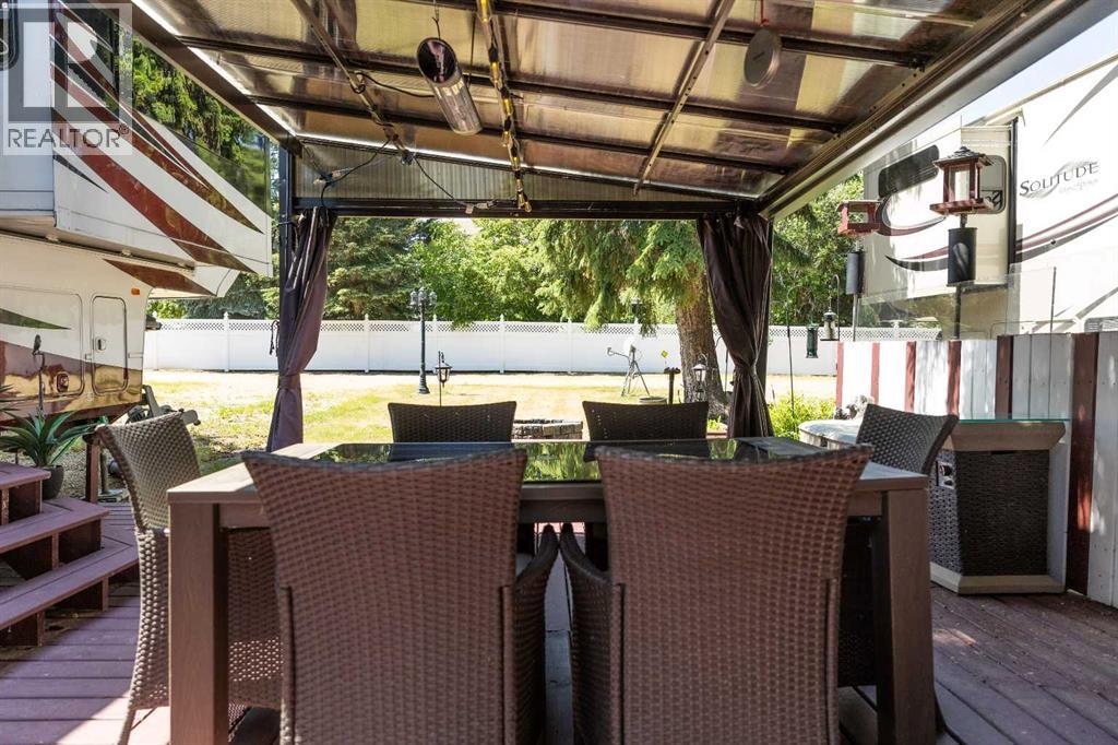 Imagine, a short relaxing drive; enjoying the scenery on your way to your very own summer oasis. Turning off the highway and taking in big, beautiful lake views and then arriving at this tranquil haven – completely turn key and ready to melt your stresses away. Low maintenance and ready to enjoy when you are, the massive deck is the perfect blend of sunshine and shade. Turn on the patio lights and grill your favourite dishes in the well designed outdoor kitchen space. The multi-purpose shed features power, ventilation and lighting; ready for you to make it your own. Enjoy a glamping style retreat? Step into the luxurious Cardinal by Forest River with tall ceilings, full sized fridge, gas stove, spacious living room, cozy fireplace and big screen tv. The 3 piece bathroom off the bedroom with comfortably sized walk in shower truly makes it feel like home. Steps from the marina, beach, playground, local community events at Jorgy’s Hot Spot and more - #3 RV Heaven is where your lakeside story begins! (id:63190)