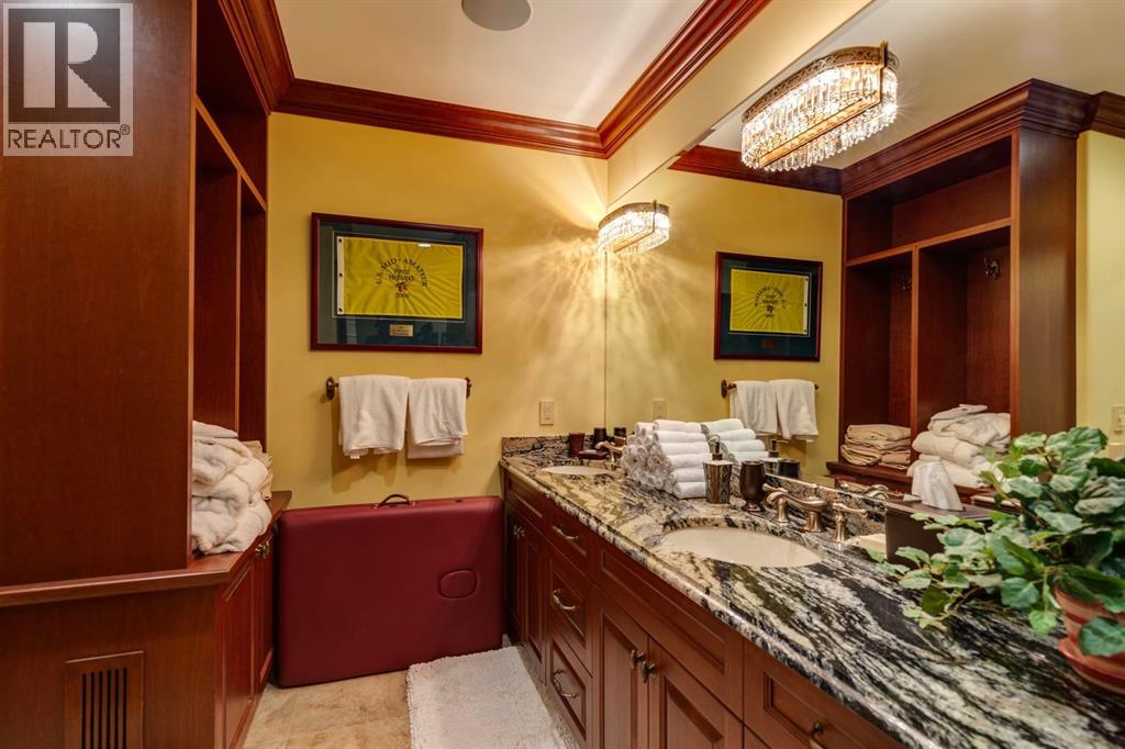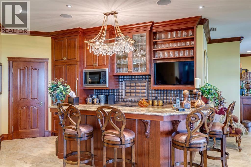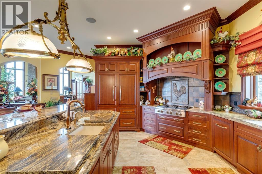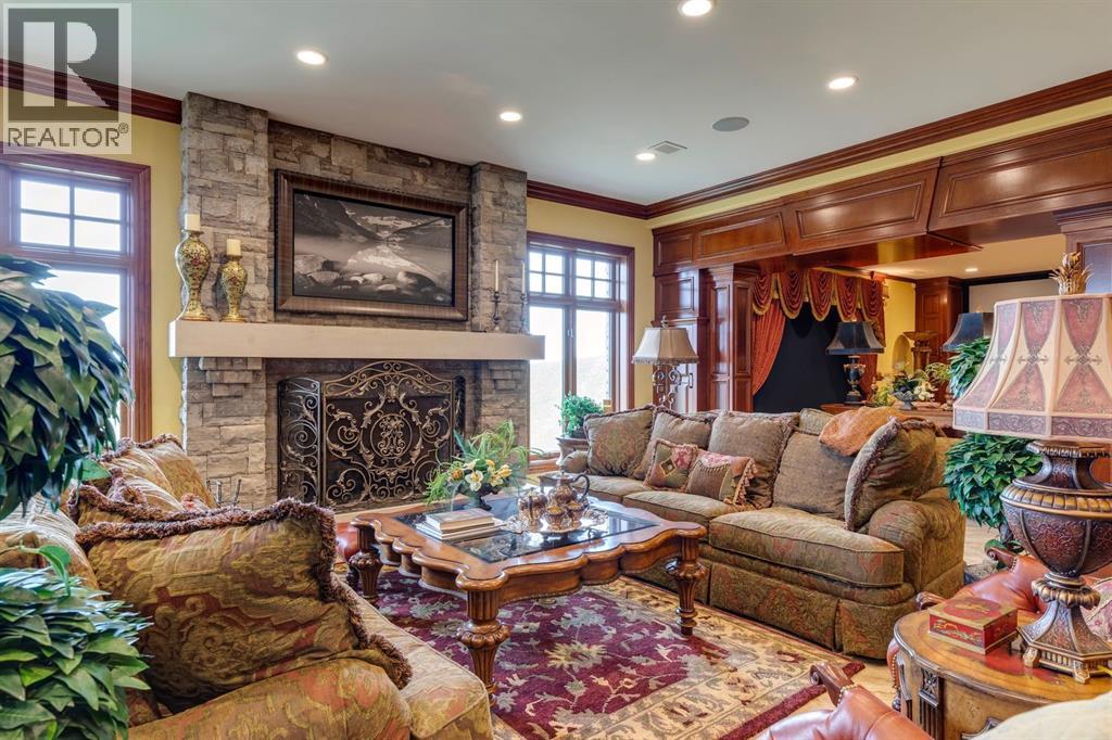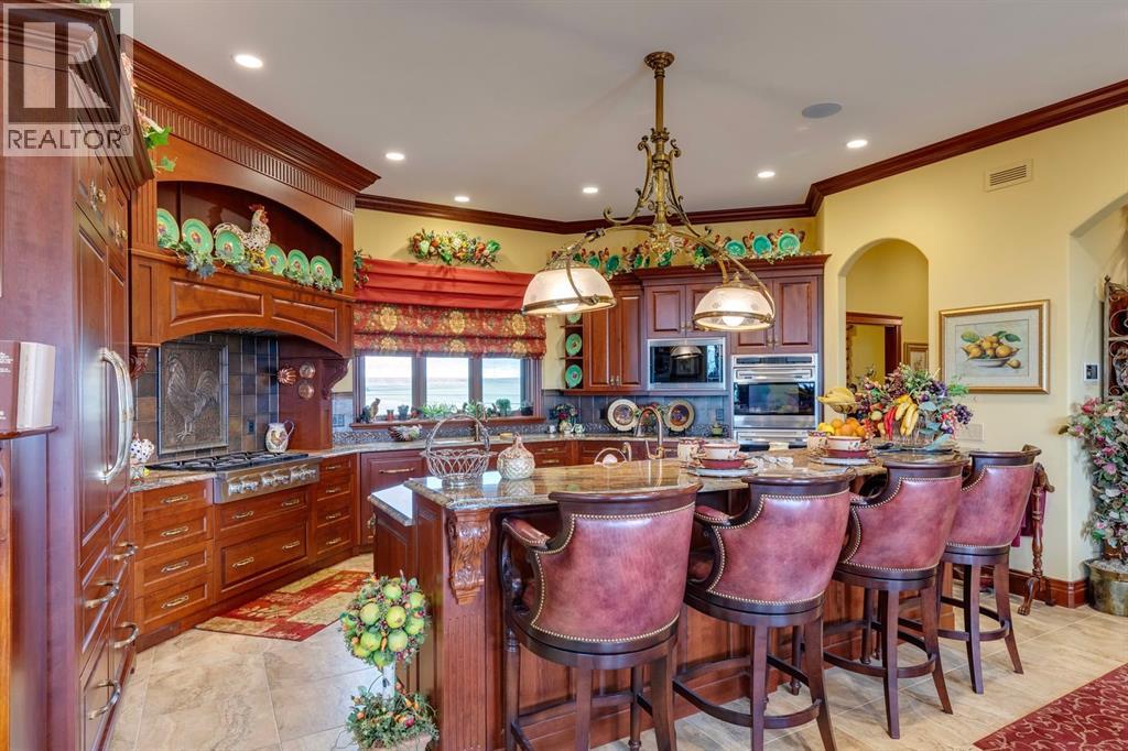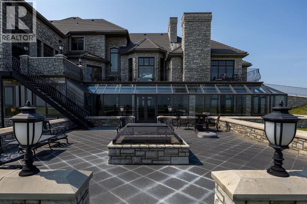 The Sophistication of Beverly Hills meets the Majesty of the Alberta Prairie. Experience the pinnacle of prairie elegance on this extraordinary 160-acre estate in the heart of Alberta’s Kneehill County. Located under an hour from Calgary and YYC International Airport, this stunning property offers a rare fusion of timeless craftsmanship and the quiet majesty of the West. At the core of this sanctuary is a magnificent 13,000-square-foot stone-clad manor, masterfully built with uncompromising attention to detail and a "custom everything" philosophy. From the rich cherry oak moldings and bespoke cabinetry to the exquisite Cheryl Wagner gold hardware and fixtures, every finish has been curated to the highest standard of excellence. The main residence is defined by a beautiful, intuitive flow, where grand architectural transitions lead you through spaces that are as majestic as they are inviting. Illuminating the home are multiple custom chandeliers that serve as brilliant focal points, casting a warm glow over the artisan-crafted interiors. The layout is designed for both grand-scale entertaining and intimate family life, featuring seven sprawling bedrooms and fourteen luxurious bathrooms. An integrated elevator provides seamless access across all levels, ensuring effortless mobility throughout the home. For the automotive collector, the estate features an attached three-car garage, complemented by a secondary detached garage uniquely connected to the manor via a private underground tunnel. For the cinematic or sports enthusiast, the residence boasts two theaters designed for a world-class viewing experience. The atmosphere is further enhanced by soaring ceilings and seven gas-lit wood-burning fireplaces that anchor the living spaces. Modern convenience is effortless through fully integrated Crestron smart technology. Culinary excellence is achieved in the main chef’s kitchen—a showpiece featuring top-tier appliances, granite countertops, and a large center island—suppo rted by a butler’s pantry and a secondary main-floor mess kitchen. Thoughtful flexibility is provided by a dedicated nanny or in-law suite, ensuring privacy for staff or guests. The lower level is a masterclass in leisure and entertainment. In addition to the private wellness retreat—complete with a professional-grade gym, steam room, and spa—this level features a stunning library, wine room, and third full kitchen. Outdoor living is an immersive extension of the home, featuring a newly built year-round enclosed solarium, expansive terraces, outdoor kitchen, and a private courtyard to enjoy Alberta’s wide-open skies. Meticulously designed for self-sufficiency and security, the estate includes a private helicopter landing pad, 22,000 gallons of water storage, a CAT D80-2S backup generator, and a secondary 3,000-square-foot guest house. A 180x80 machine shop offers limitless potential as an equestrian center or car gallery. This 160-acre luxury masterpiece is a generational opportunity not to be missed. (id:63190)
