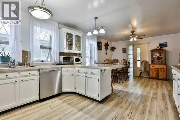 2-Storey Character Home on a Corner Lot in Taber, ABDiscover the charm of small-town living in this 2-storey character home on a corner lot. This home was built in 1912, and has 2,076 sq. ft. Step onto the wraparound front porch, perfect for enjoying morning coffee or relaxing in the evening. Inside, the main floor boasts a spacious kitchen with ample cabinets, generous counter space, and an eating bar—ideal for entertaining or casual meals. The adjoining dining room features large windows that fill the space with natural light, while the oversized living room has a cozy gas fireplace and an elegant bay window. A convenient half bathroom completes the main floor.A spiral staircase leads to the upper level, where you’ll find three generously sized bedrooms and a full bathroom. The primary bedroom has hidden laundry chute and plumbing to add a sink in the built-in vanity, along with more plumbing beside the vanity to start your ensuite reno. The fully developed basement offers even more living space, with a large family room, a fourth bedroom, a 3-piece bathroom, laundry area, and a dedicated storage room. Thoughtful features include two furnaces—one dedicated to the upper floor and one for the main and basement levels—as well as two laundry chutes for added convenience.Outside, enjoy a landscaped yard with a garden area. Parking and storage are no issue with both a double attached garage and a double detached garage.This one-of-a-kind home offers character, space, and functionality—all within a quiet, friendly community. Don’t miss your chance to make it yours! (id:63190)