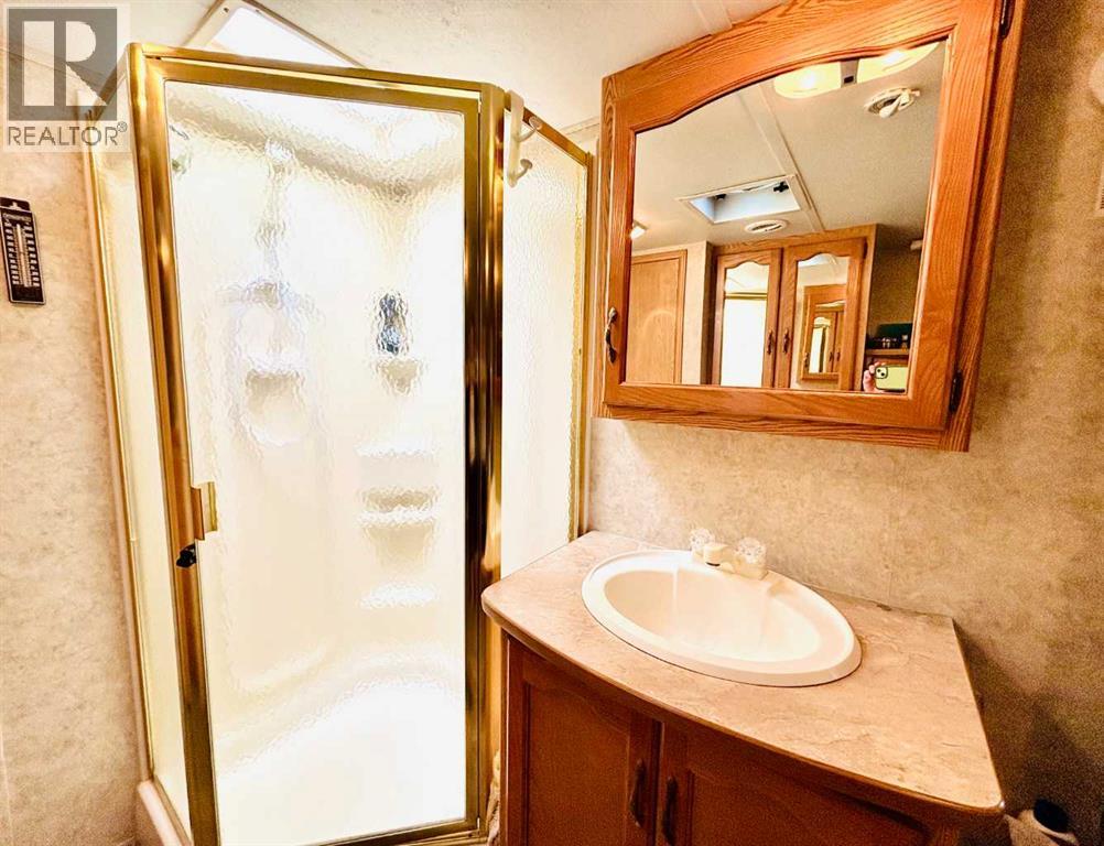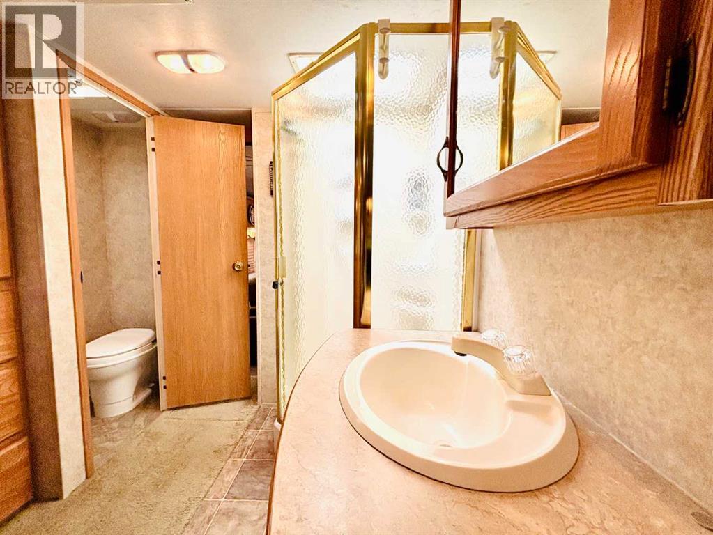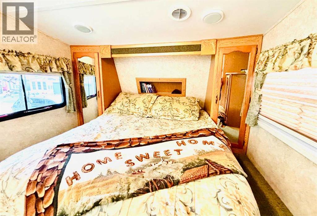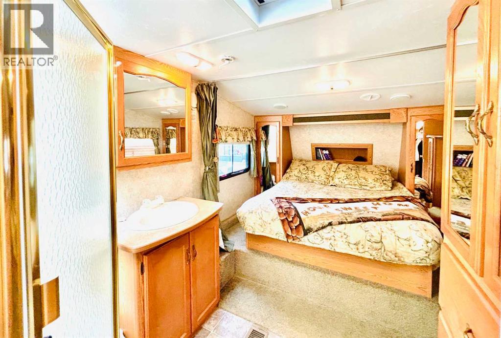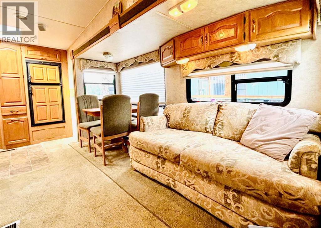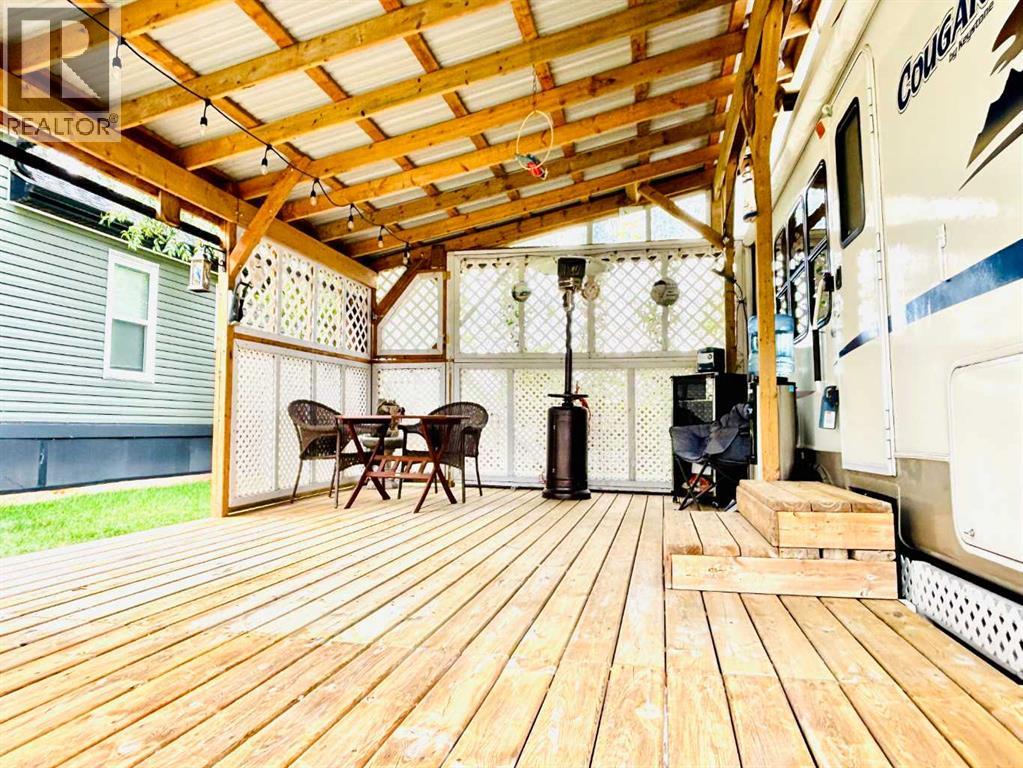 An affordable retreat - all summer long!! Perfect for the solo escape or the outdoorsy couple who want to relax at the lake. Just pack your bag and send your troubles away. In a friendly gated community, only steps to the beach, social events and walking trails; relaxing serenity awaits your arrival. This well designed lot features an upgraded shed with fridge and storage, large deck with tin roof and weather coverings, a private fire pit area, low maintenance landscaping and backs onto a field for optimum privacy. Aspen and Lilacs complete your outdoor oasis. The original owners of the 2006 Cougar Series 5th Wheel have this lakeside beauty meticulously cleaned, maintained and move in ready! The slide allows for the roomy feel while the corner kitchen allows ample sunlight and views while prepping those delicious summer meals! Notice the wood cabinetry showcasing the build quality throughout. Air conditioning enhances this luxurious camping style and the living room even features a pull out couch for extra guests! Your summer retreat awaits you! (id:63190)