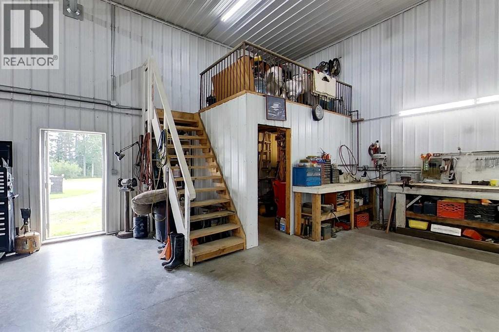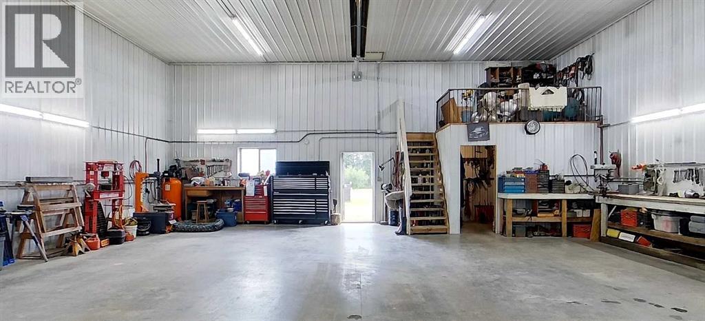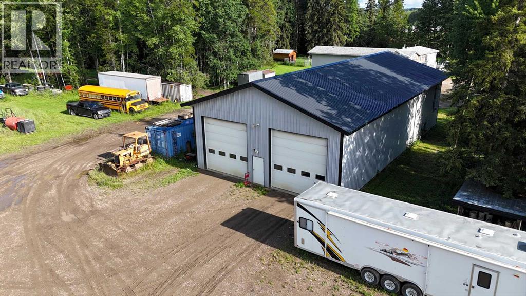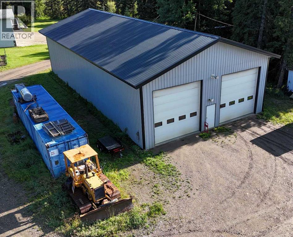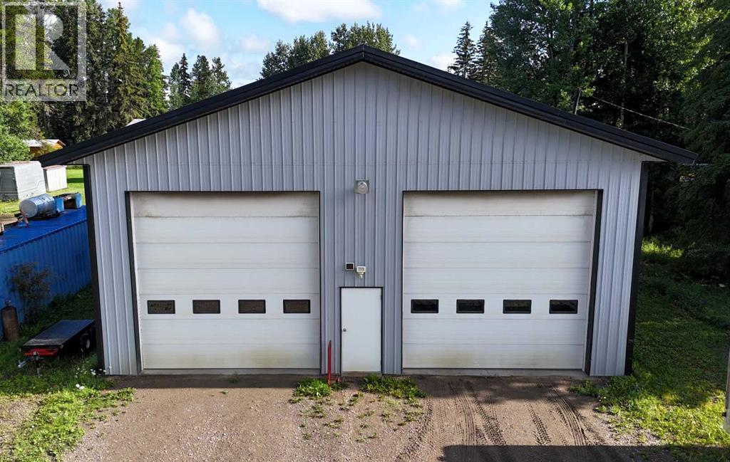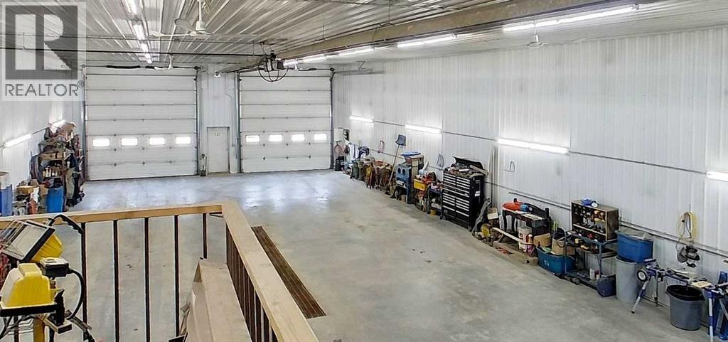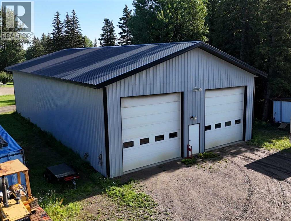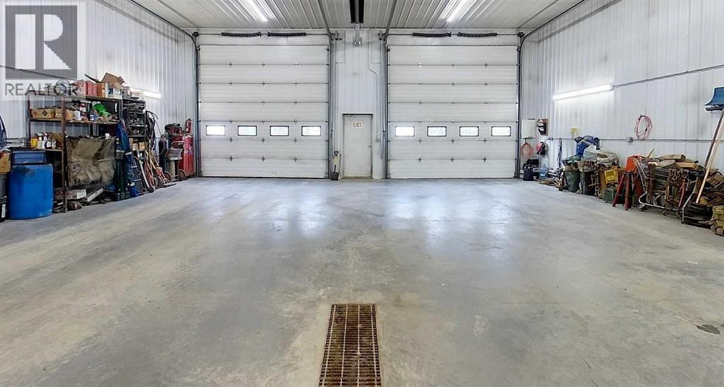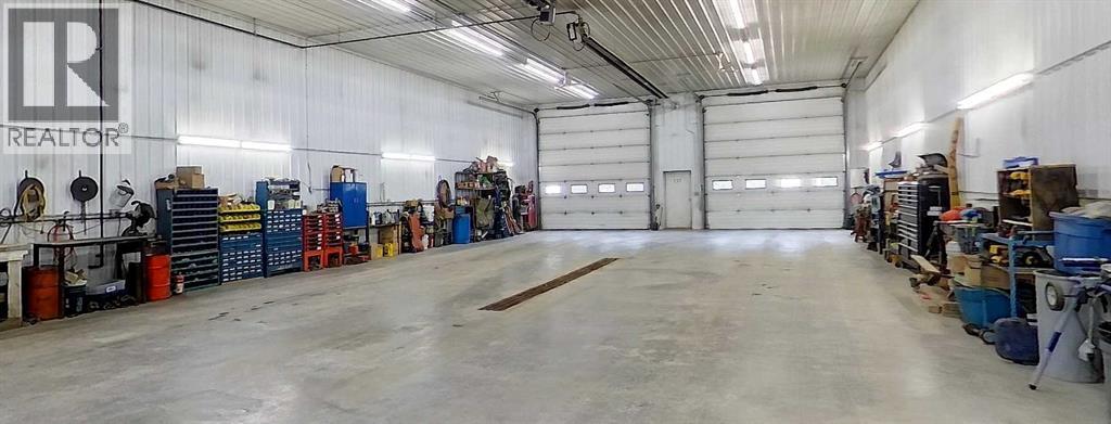 Prime opportunity to own a fully serviced Business Industrial (BI) zoned property offering a wide range of permitted uses including bulk fuel and chemical storage, manufacturing, salvage/recycling, storage facilities, major industry, and office space. The property features a commercial-grade 40' x 80' shop built in 2014 that features 16 ft ceilings and two - 14 ft overhead doors, radiant heat, roughed-in plumbing for a future bathroom, and a mezzanine office—perfect for a variety of industrial or storage operations. Additional improvements include a 25' x 24' heated double detached garage built in 2016 (furnace replaced 3 years ago) and a 16' x 48' RV bay with a 14 ft roll-up overhead door (unheated). The yard is partially perimeter fenced with newly replaced 30 ft and 20 ft rolling gates for secure access. Property has a septic system with open discharge, a 160 ft well, weeping tile drainage (separate tank) and two cold storage buildings with power. Also included is a 1993 - 1,450 sq ft modular office/surveillance suite on a concrete basement with 200-amp service—ideal for modern office use or temporary employee accommodations. Features include in-floor heating in the basement, forced air on the main floor, hot water tank (replaced 6 years ago), and shingles (8–10 years old). Shop and office are on separate utility services. Extras: RV plug, ample yard space, and Business Industrial zoning make this a highly functional and flexible property for expanding businesses. Don't miss this rare industrial/commercial opportunity on 40.04 acres within town limits. (id:63190)