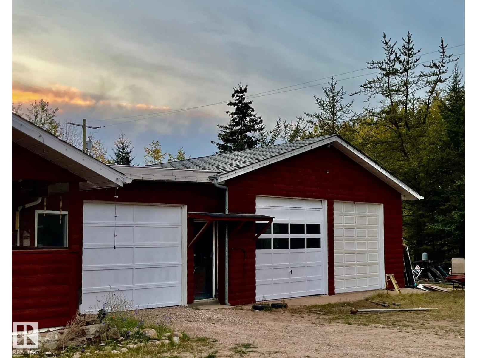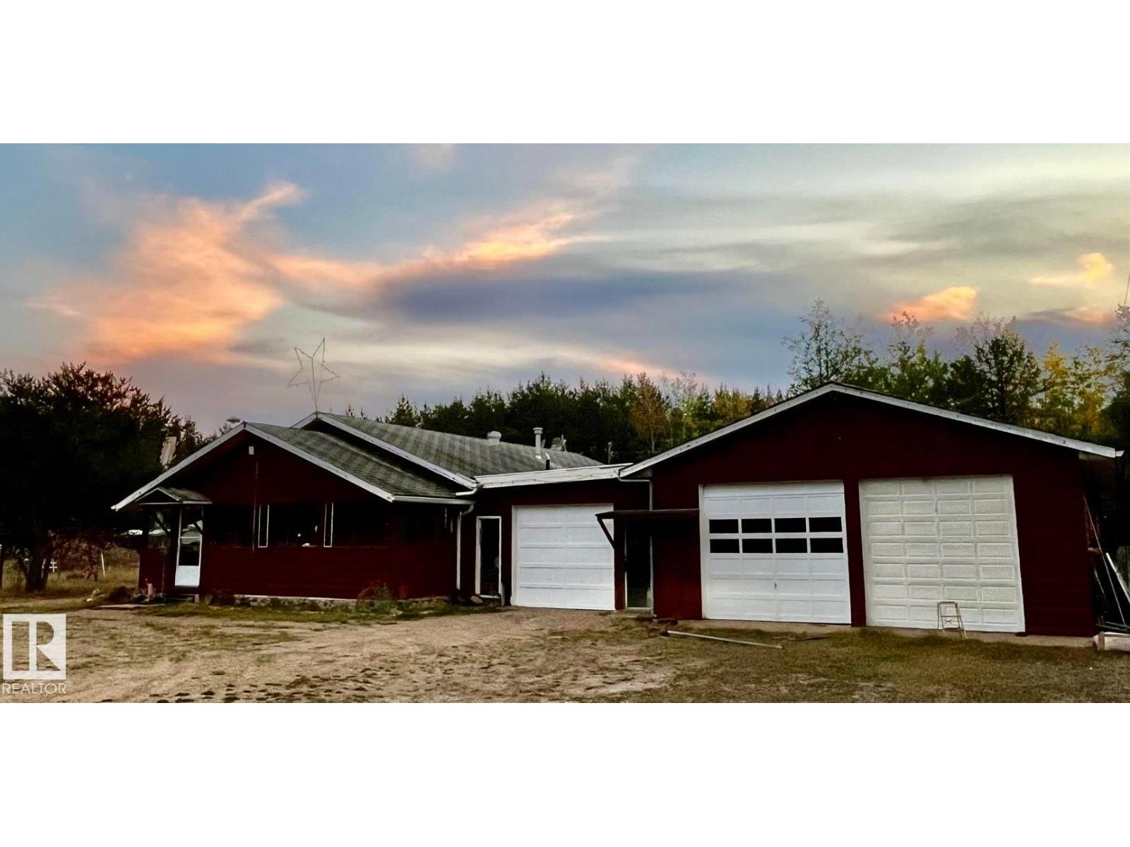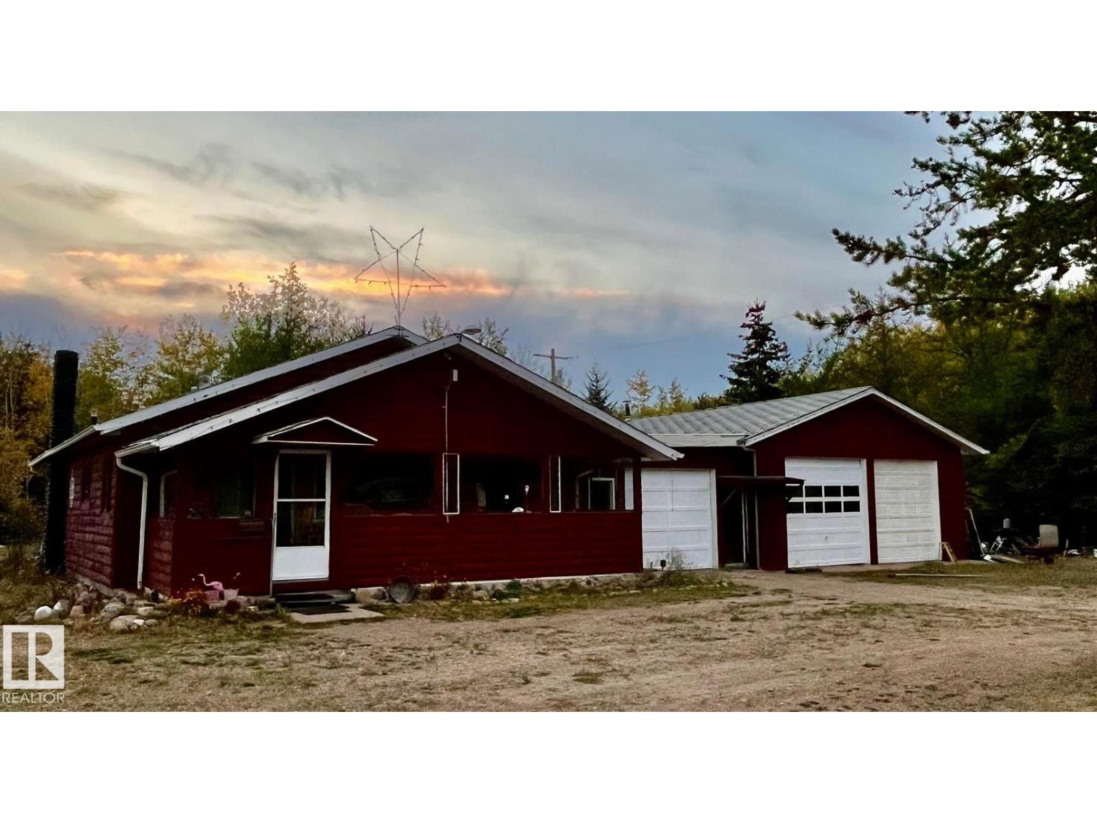 This acreage is surrounded by towering pines - the smell in the air is amazing. Located on the Wolf Lake campsite road and just west of Manatokan Lake, fishing, boating and quadding become a way of life. Enter this 1997 home through the bright and inviting sunroom and into the kitchen and dining area. Down the hall is the living room area with a wood-burning stove and big windows allowing you to enjoy the peaceful outdoor views. A large primary bedroom with 2 piece ensuite, a second bedroom and a 4 piece bathroom finish off the home. A large double oversized garage was added in 2001, completed with a guest suite in the back. Wood siding has just been stained - Sept 2025 (id:63190)