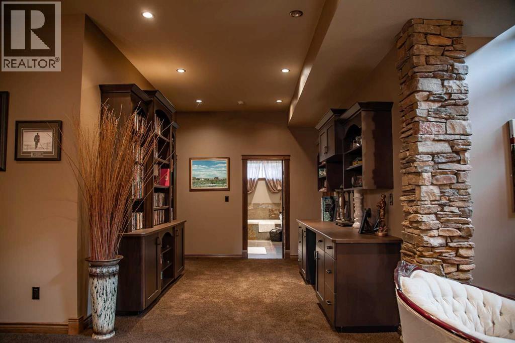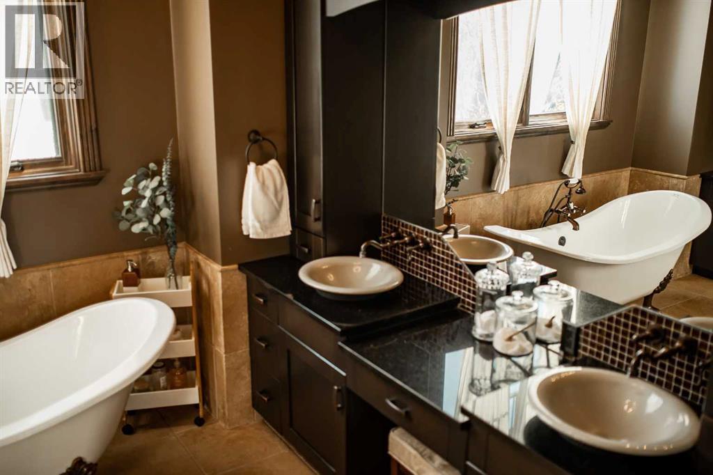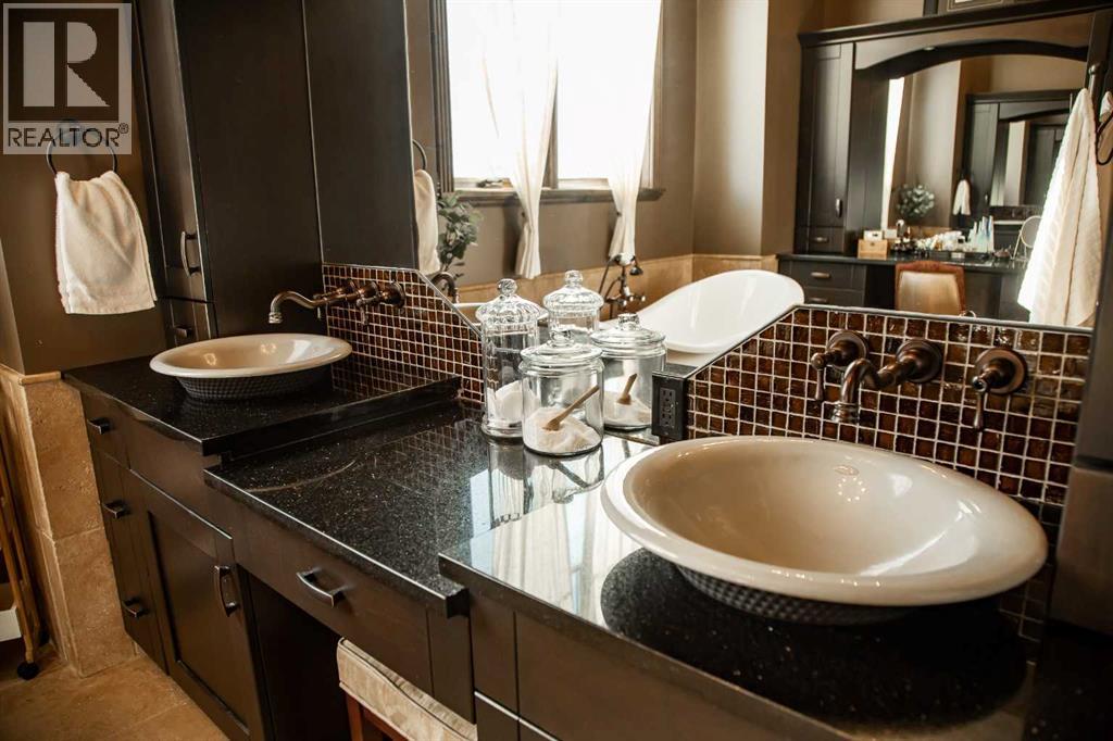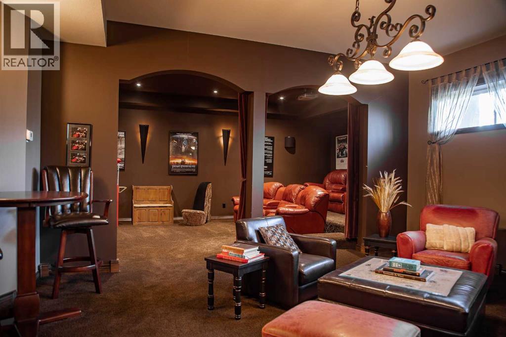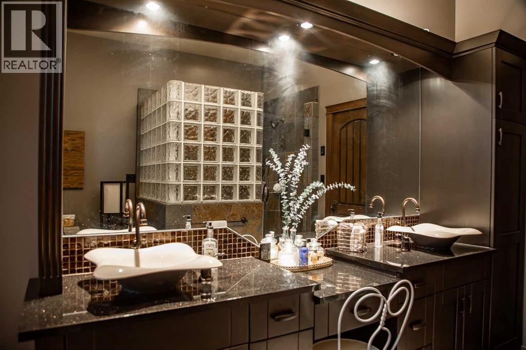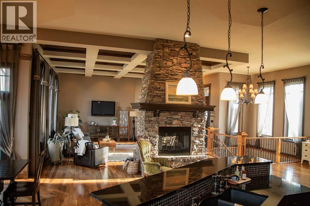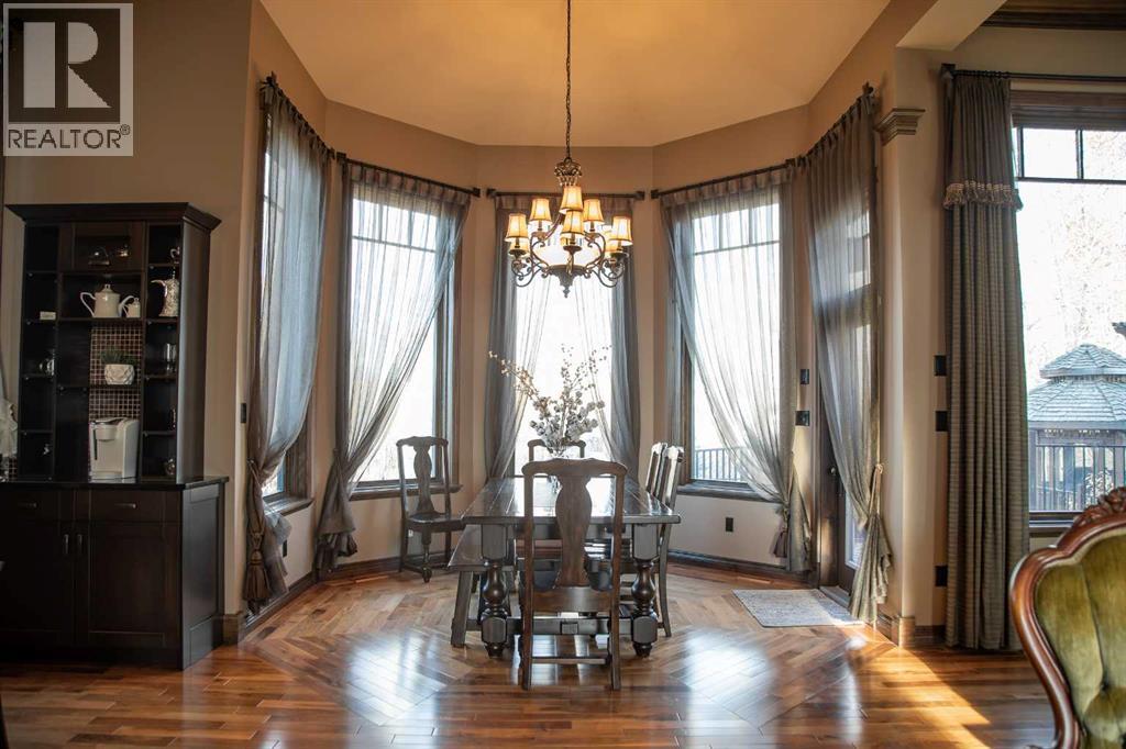 VENDOR MOTIVATED! A beautiful Custom Executive Home, a sprawling resort-like yard with a fabulous tripled garage.This amazing home comes with all the bells-and- whistles that you'd expect from a home of this caliber...welcome to 13 Chinook Drive ,you'll find this picturesque .50 acre parcel of land hosting a one-of-a-kind 4 Bed+Office/Den/3 Bath Custom haven . This unique home boasts lots of oversized picture windows inviting cheerful natural light indoors, executive finishing with hardwood walnut, tumbled marble & natural slate, that effortlessly combines modern & traditional elements, superb extra features, more storage & parking than you will ever need, and incomparable outdoor living space that makes you feel like you are living at a private 5-star resort! A walkway leads to a pillared porch with an over-height ceiling, while a front 8 ft solid fir door welcomes you into the foyer. Hardwood flooring flows into a stunning Great Room with custom coffered ceiling & maple crown moldings where a generous use of glass visually connects the space to your backyard oasis! A handsome floor-to-ceiling two-sided quarry rock wood fireplace...a great focal point for the room that is ready and waiting to bring warmth and ambiance to your evenings of relaxation & entertaining.The inspiring Chef's Kitchen is a culinary lover's dream-come-true with its abundance of wood cabinetry, sumptuous granite countertops, handmade copper wrapped brick and glass tile backsplash, a large island with an extended breakfast bar, a frosted glass door that opens to a walk-in Pantry, & quality stainless steel appliances including a double wall oven. From the Dining Room, a garden door opens to allow your gatherings to spill out to a massive 3 tiered deck with custom iron railing leading to the pergola & gazebo while enjoying soft music through the surround sound. This very private retreat offers sun-sational exposure, lovely maintenance free water features & gardens.Stepping back inside you' ll find a peaceful Primary Bedroom wing sporting a large walk-in closet with built-ins, and a luxurious 5 pc spa ensuite with dual- cast iron vessel sinks , a stand-alone cast iron clawfoot tub, & a huge glass custom steam shower . From the foyer, french doors open to a delightful Den/Office, while quietly tucked away at the opposite end of the home is a Bedroom & a Bath with a custom slate shower...your pampered guest will enjoy so much privacy & comfort. The handcrafted spiral walnut staircase leads to every entertainers dream! 10 ft ceilings with open-concept complete with a bar & a Theatre Room to watch the latest movie or game on the 103” big screen.Breathtaking quarry rock pillars & stunning maple built-in library, while tucked away at the opposite end is a fabulous Guest Wing complete with 2 generously-sized Bedrooms,walk-in closets & a 4 pc Bath with custom slate shower, soaker tub and double cast-iron sinks.This home & it’s exquisiteness ,elegance and luxurious is awaiting your admiration. (id:63190)