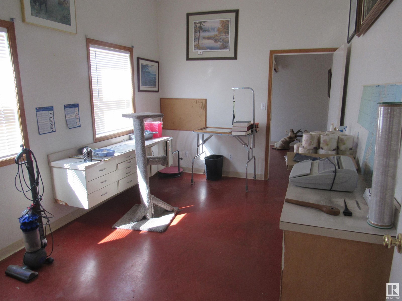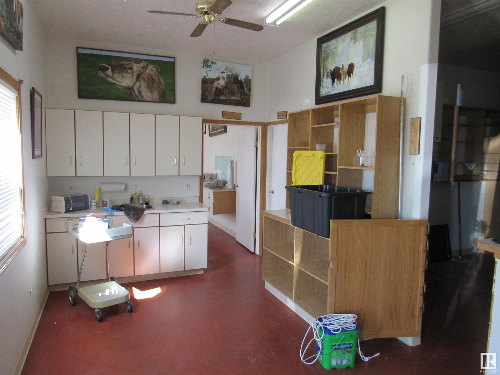 A great start for any business that requires a shop and especially for a business caring for animals. A former veterinary clinic built in 1998 this building is in great condition and has a lot to offer. It measures 40ft. x 86ft. and has 10ft. walls with 3 overhead doors. Currently there are many rooms inside but if need be they could all be removed and you would be left wit one big open space. Outside the entire 25.5 acre parcel is fenced for large animals except for the yard site. The services are in place to have a modular home on the yard site as well. Let your imagination take hold! (id:63190)