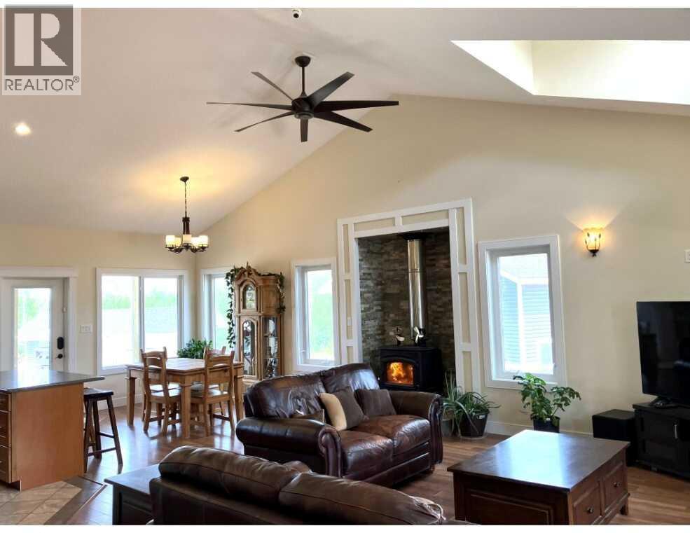 Welcome to your dream acreage, perfectly situated between Peace River and Grimshaw, offering the tranquility of country living with an easy commute. This stunning 2014-built, 1,610 sq. ft. home boasts 4 bedrooms and 3 full bathrooms, meticulously designed for comfort and style. Step inside and be captivated by the open-concept layout, featuring a large kitchen and dining area—the heart of the home, perfect for family gatherings and entertaining. The kitchen is a chef's delight, with beautiful maple cupboards and ample counter space. Overlooking the great room, the charming dormer windows fill the space with natural light, creating a bright and airy atmosphere and adding to the country feel is the large wood burning free standing stove. The master bedroom is a true sanctuary, featuring luxurious in-floor heating, large walk in closet and a full 4 piece bathroom for privacy and relaxation. Every detail has been considered, with extra insulation throughout the home, including approx R 80-100 insulation in the ceiling and additional insulation in the walls, ensuring energy efficiency and year-round coziness. The fully finished basement includes a majestic bedroom, another recreation/games room that encompasses the majority of the lower level. a 4 piece bathroom and a meticulously maintained mechanical room housing the HE furnace, hot water on demand, storage and the water equipment for the well. The property's outdoor features are just as impressive. A large deck with new railings and stairs offers the perfect spot to relax and take in the fantastic views. The large, recently built 32' x 28' shop is a standout feature, complete with two overhead doors, a 12-foot ceiling, and water supplied from its own dedicated well. The 13-foot ceiling garage is a hobbyist's dream, featuring radiant tube heating and extra concrete on the perimeter slab,An additional 16' x 32' out building with a concrete pad provides excellent cold storage for all your lawn and garden needs. W ith only half a mile of gravel road, access to this property is a breeze. Don't miss this opportunity to own a piece of paradise, combining modern amenities with pleasant walking trails and breathtaking scenery. (id:63190)