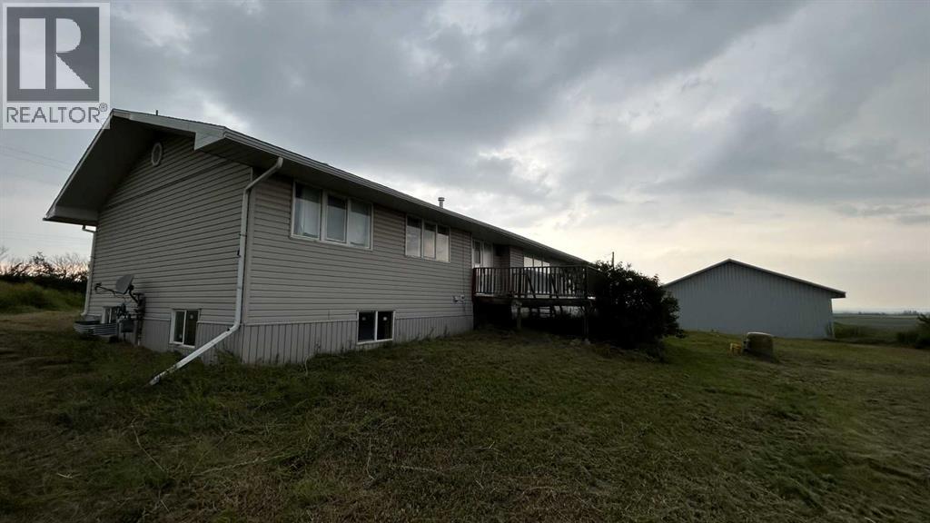 Here’s your chance to own a beautiful 4-acre parcel in the countryside—just under 55 minutes from Calgary! Nestled beside a scenic coulee with a small pond, this spacious 1,500+ sq. ft. bungalow offers the perfect blend of rural charm and practical potential.The home features three bedrooms and 1.5 bathrooms, with a framed basement ready for development—just waiting for your personal touch. Finish it off and complete a few remaining renovations on the main floor to instantly add value and equity.Additional highlights include:Two insulated barns/workshops 36mX18m– both built in 2022Attached garage/workshopTwo decks, including a massive 24’ x 14’ west-facing deck for ultimate privacyNew hot water tankHighly insulated foundationAbundant electrical powerWell + municipal water for reliable supplySecond driveway access – ideal for future development, additional buildings, or a large workshopThis home offers incredible potential for a renovation project, flip, or a dream home with built-in equity. With this much land and infrastructure at such an affordable price, it's a rare find in today’s market. (id:63190)