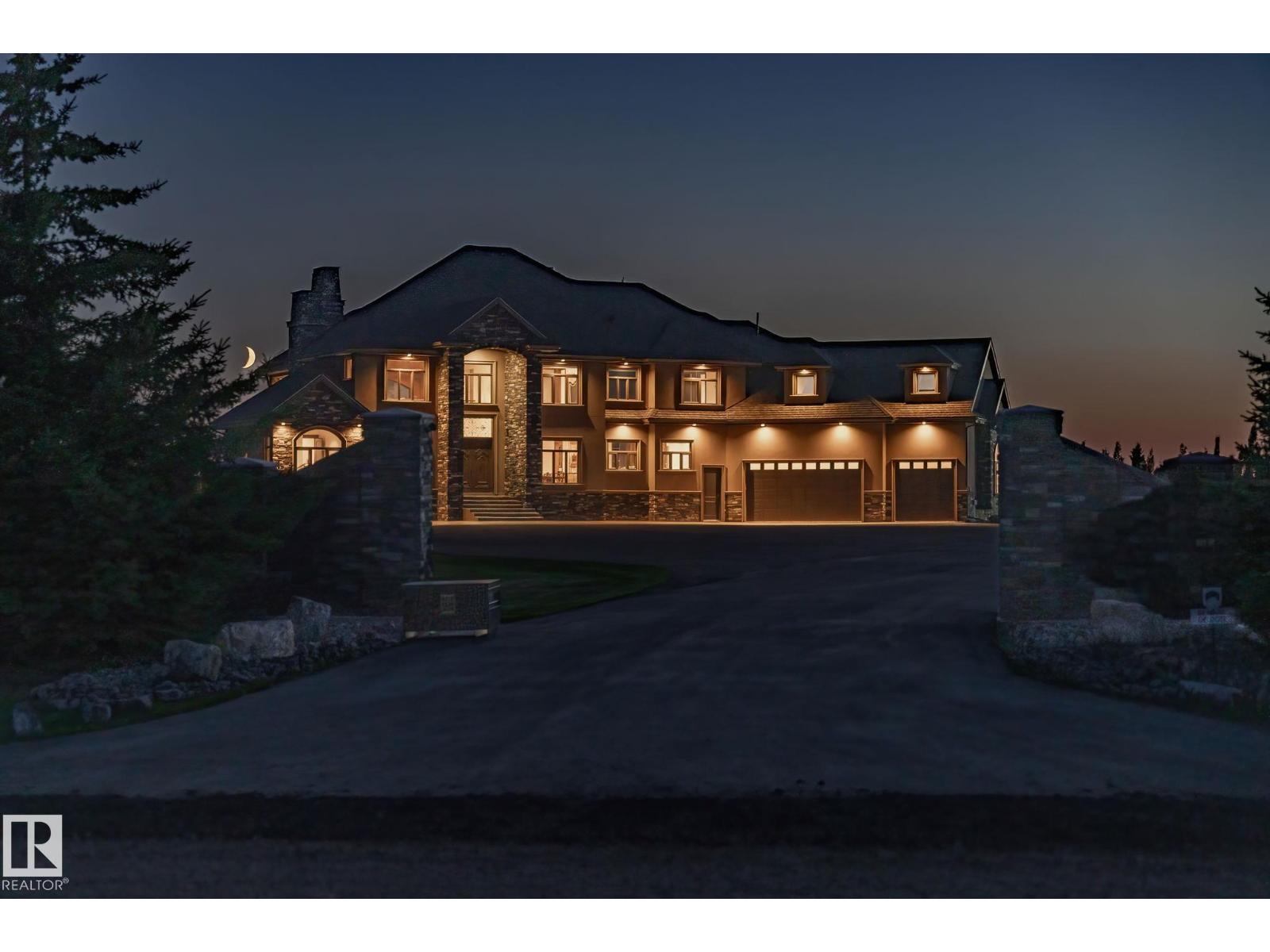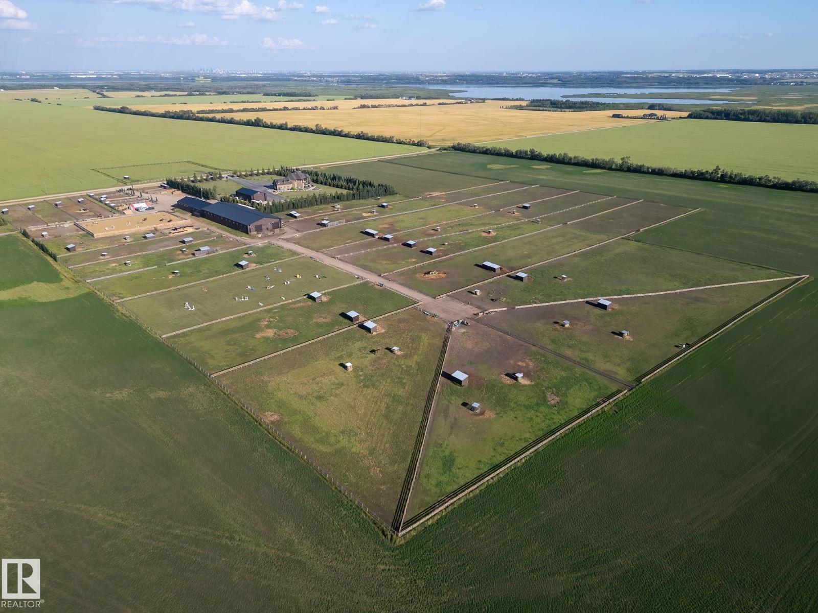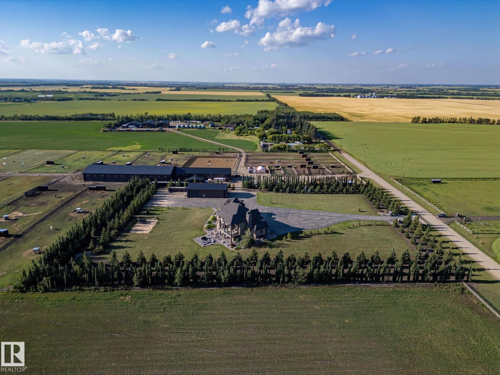 This is a rare opportunity to own a property that truly has it all. Situated on 146 beautifully rolling acres, this estate blends luxury living with premier equestrian amenities, just minutes from St. Albert and Edmonton. The custom-built 5680 sqft home wows you from the second you drive up. Soaring ceilings, expansive windows and breathtaking views from every angle. The gourmet kitchen, grand living areas and multiple fireplaces create an inviting atmosphere for both everyday living as well as entertainment. The walkout basement offers additional living space, a games room and direct access to your stunning yard. Equestrian enthusiasts will be impressed with the world-famous Golden Oaks horse barn, indoor riding arena, and multiple corrals. Whether you're training, boarding, or simply enjoying your passion for horses, it doesn't get better than this. The land features a blend of pasture, treed areas, and open spaces, offering endless possibilities for recreation, agriculture, or future development. (id:63190)
